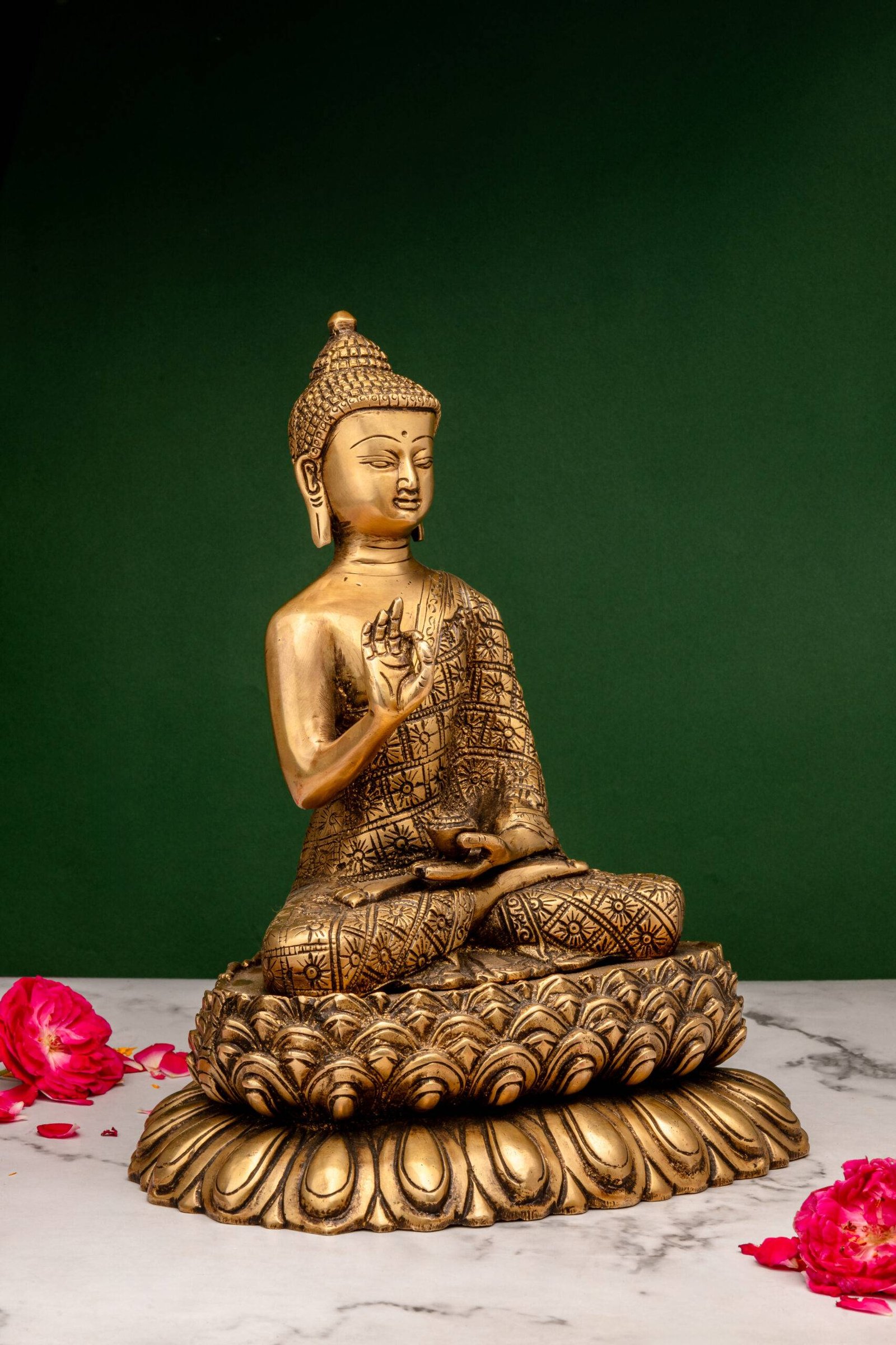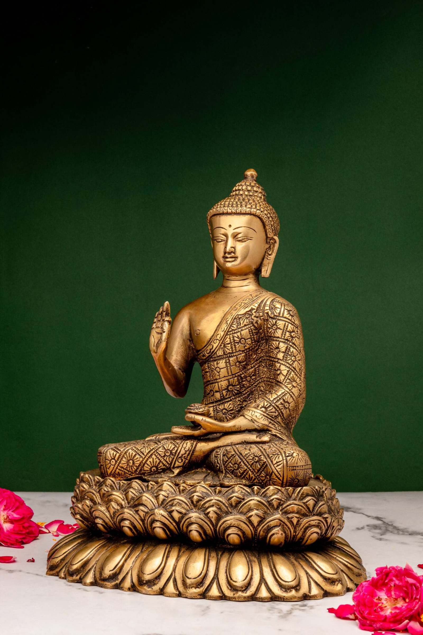 Brass Superfine Buddha Idol - Abhaya Mudra - Detailed Carving - 10.5 Inch Original price was: ₹22,500.00.Current price is: ₹15,500.00.