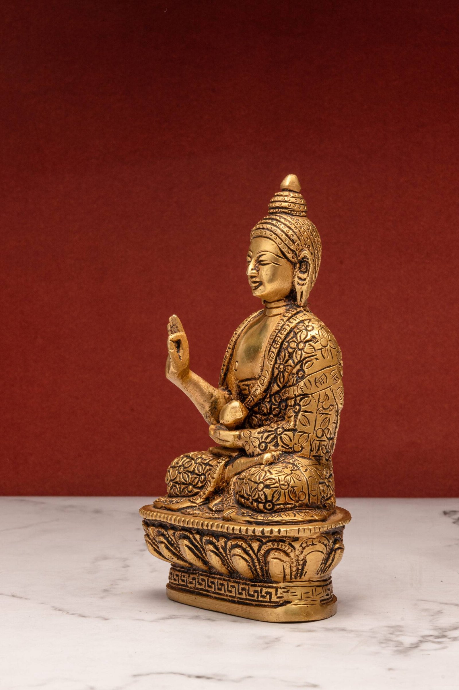 Placement Tip: Position the Buddha in Abhaya Mudra at eye level in a clean, uncluttered space facing the main entrance to invite protective energy and positivity into the area.