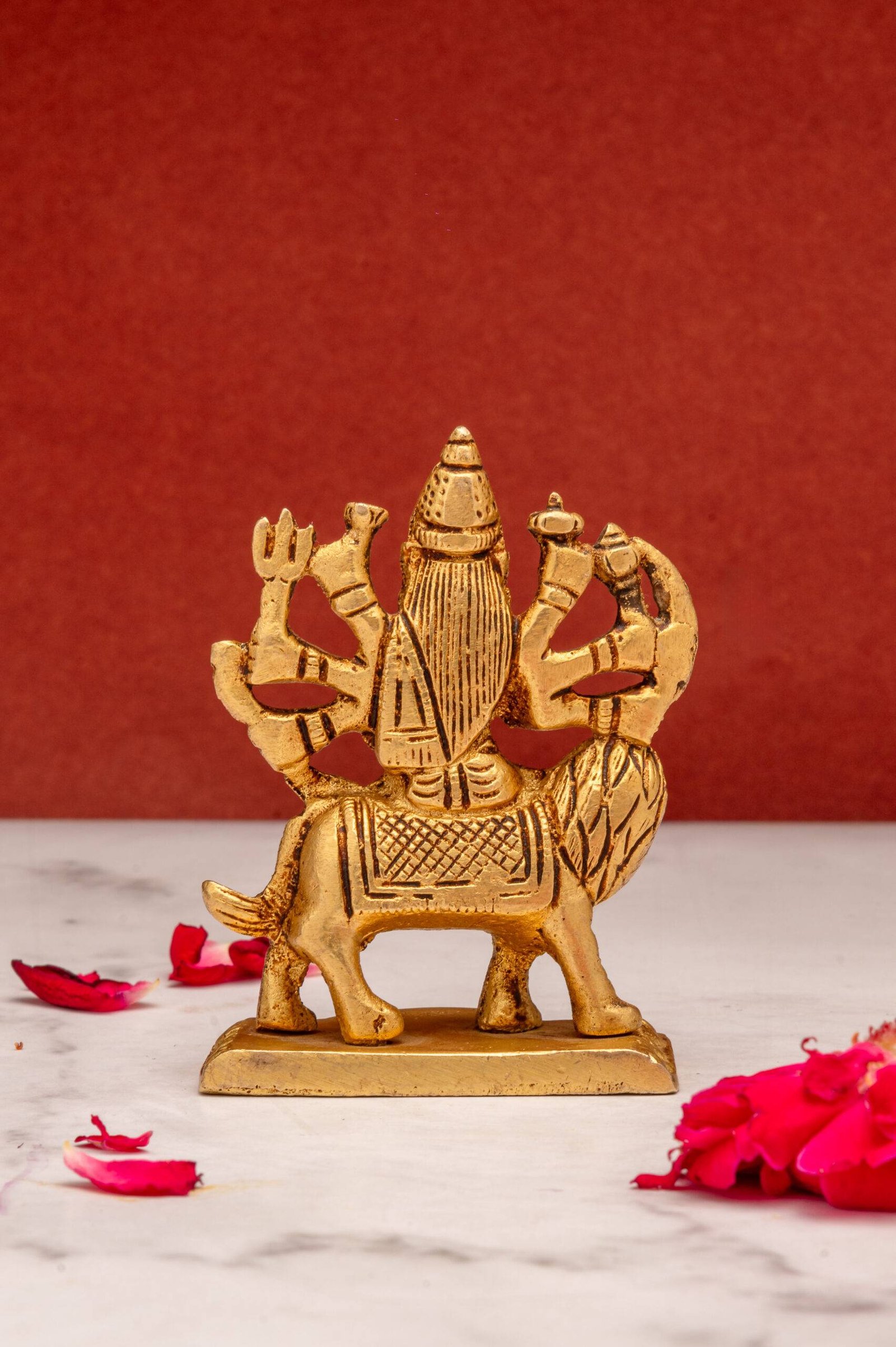 Having an idol or image of Durga Maa at home or in the office can create a spiritually uplifting atmosphere, inviting divine protection, strength, and blessings into your life.