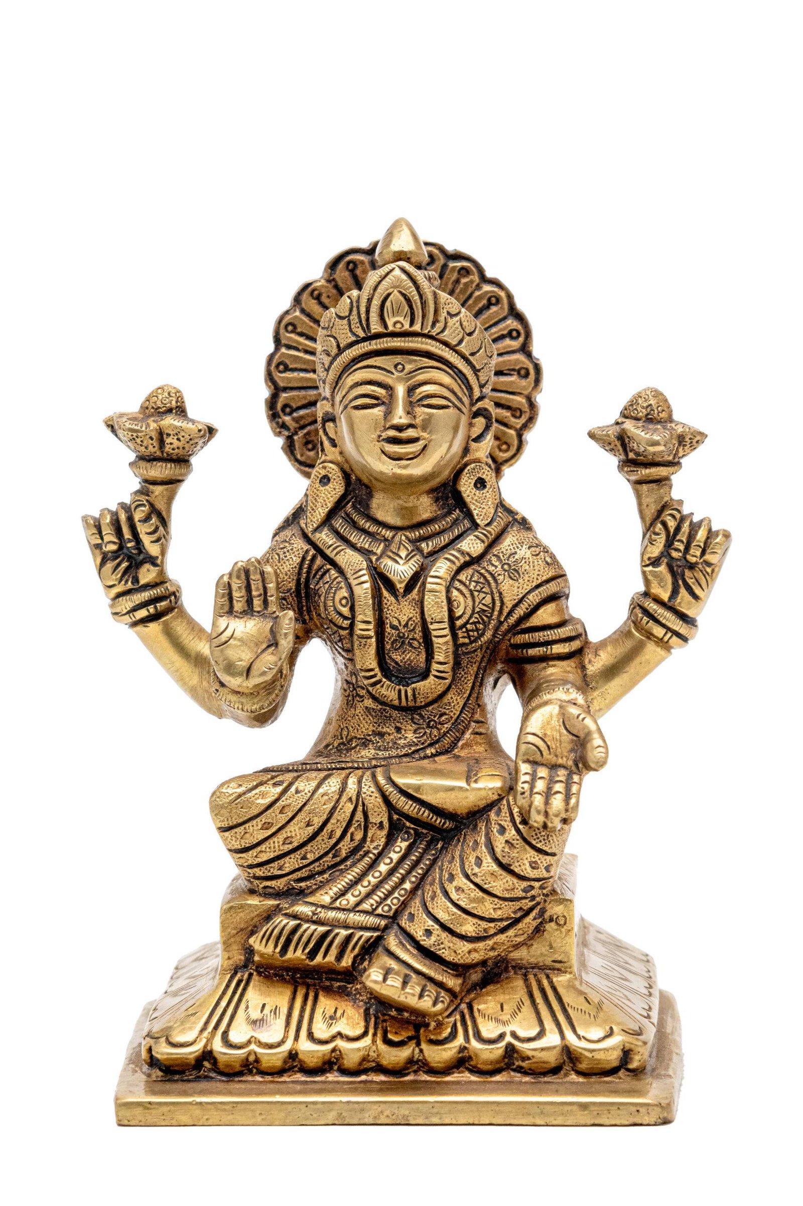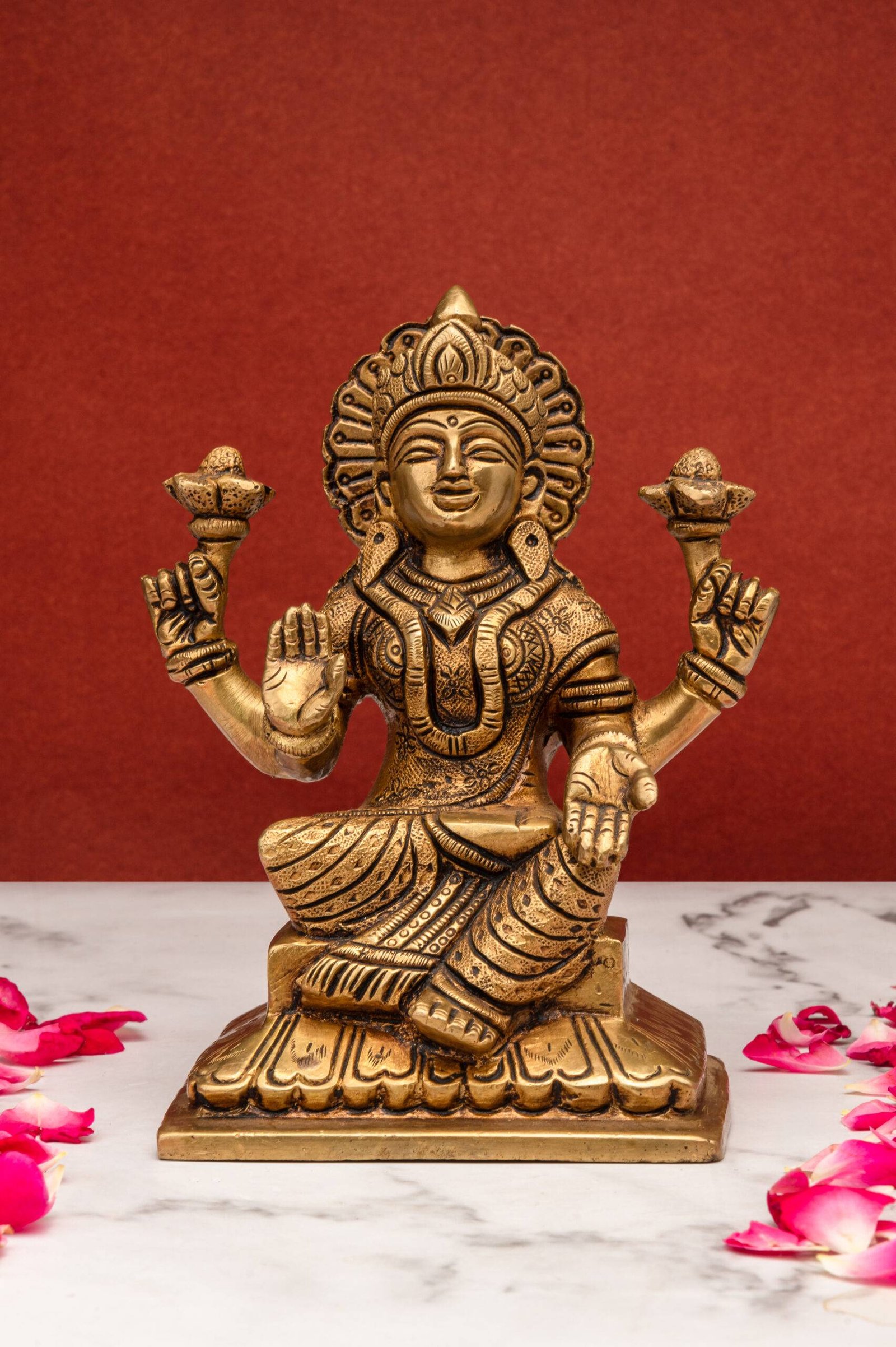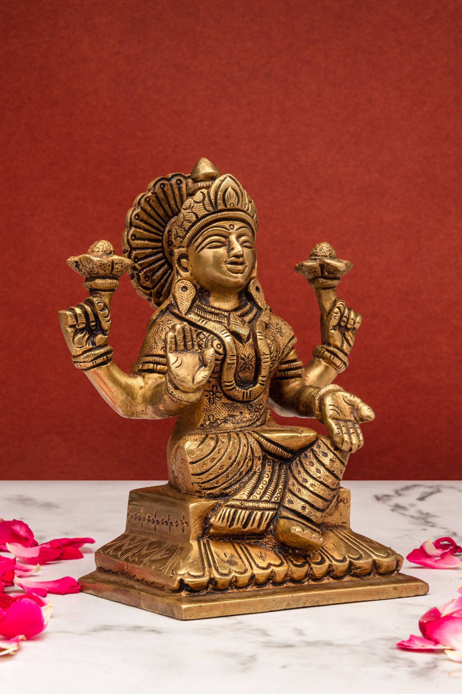 Brass Laxmi Mata Idol – Antique Finished – 5.75 Inch