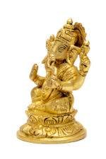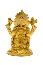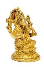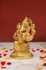 Lord Brass Ganesha Idol seated on Lotus Flower – 4.5 Inch
