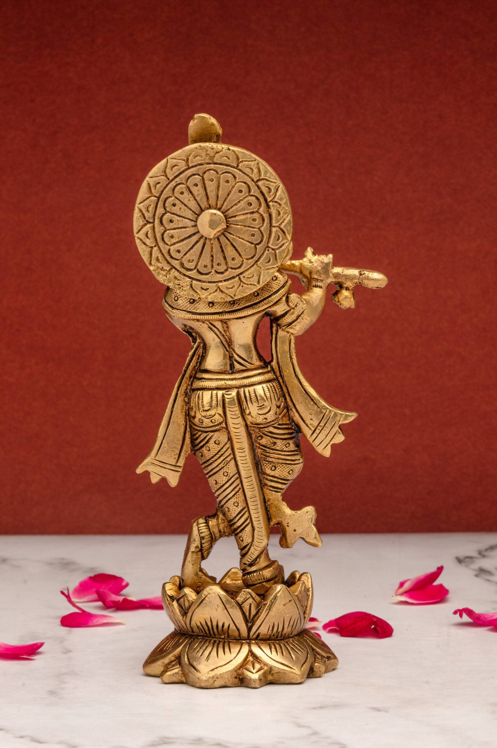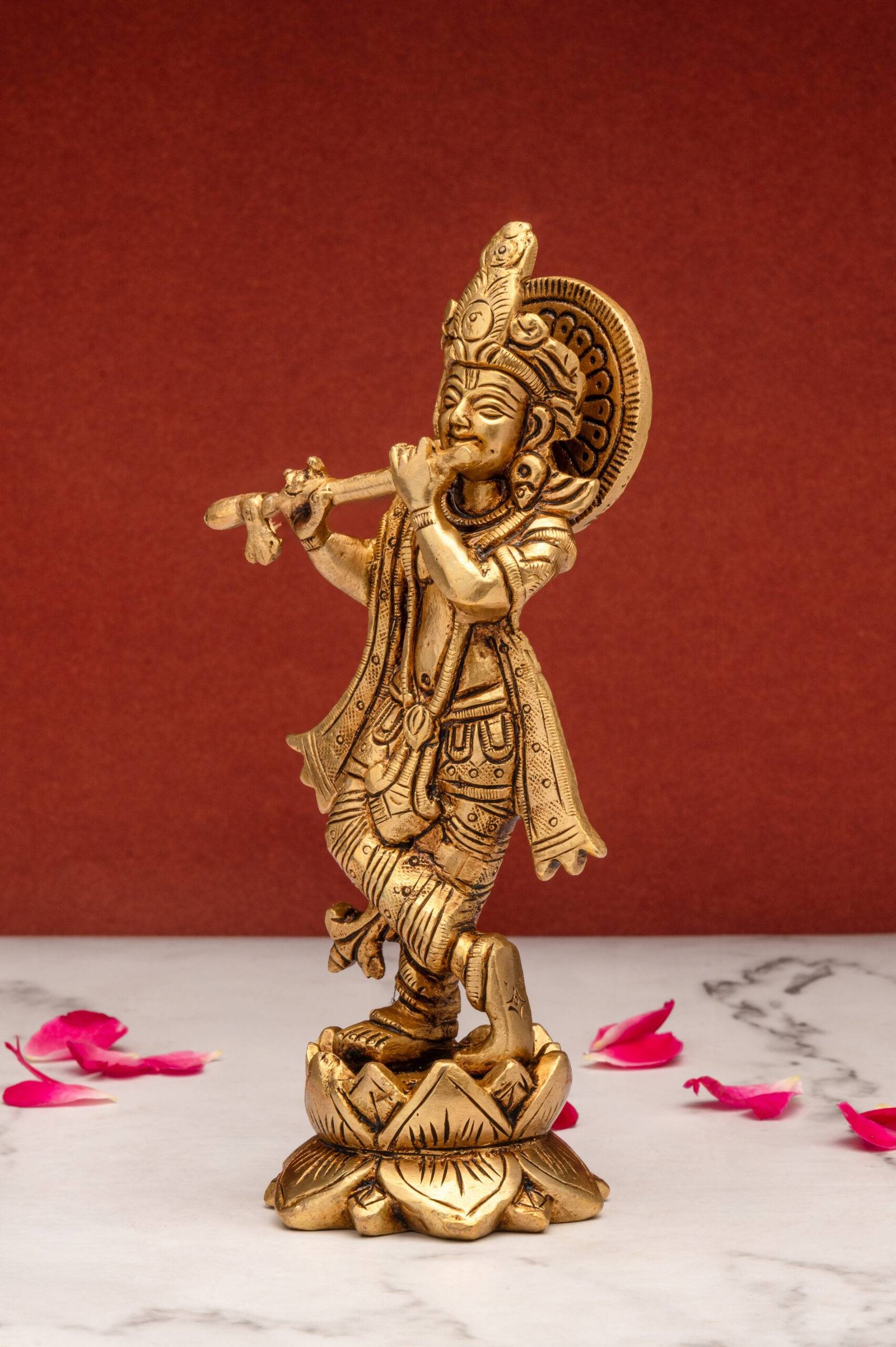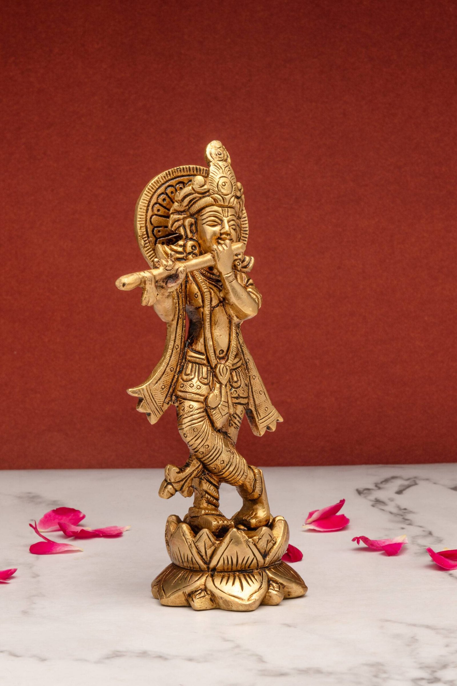 1. Spiritual Serenity: The presence of Lord Krishna’s idol playing the flute can infuse your space with divine tranquility, helping to create a serene and peaceful environment.