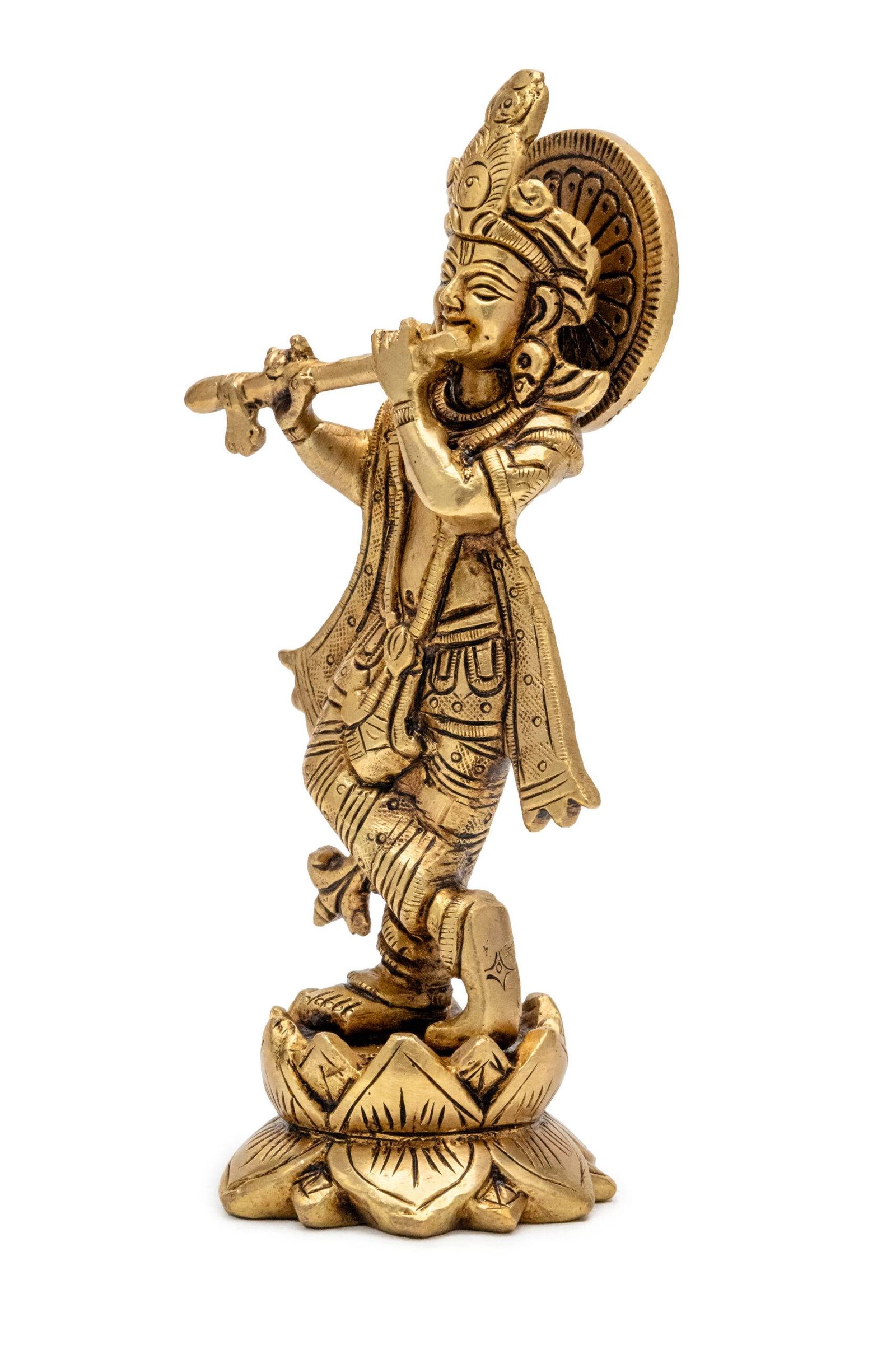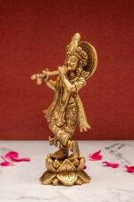 Brass Krishna Idol Playing Flute – 6.8 Inch