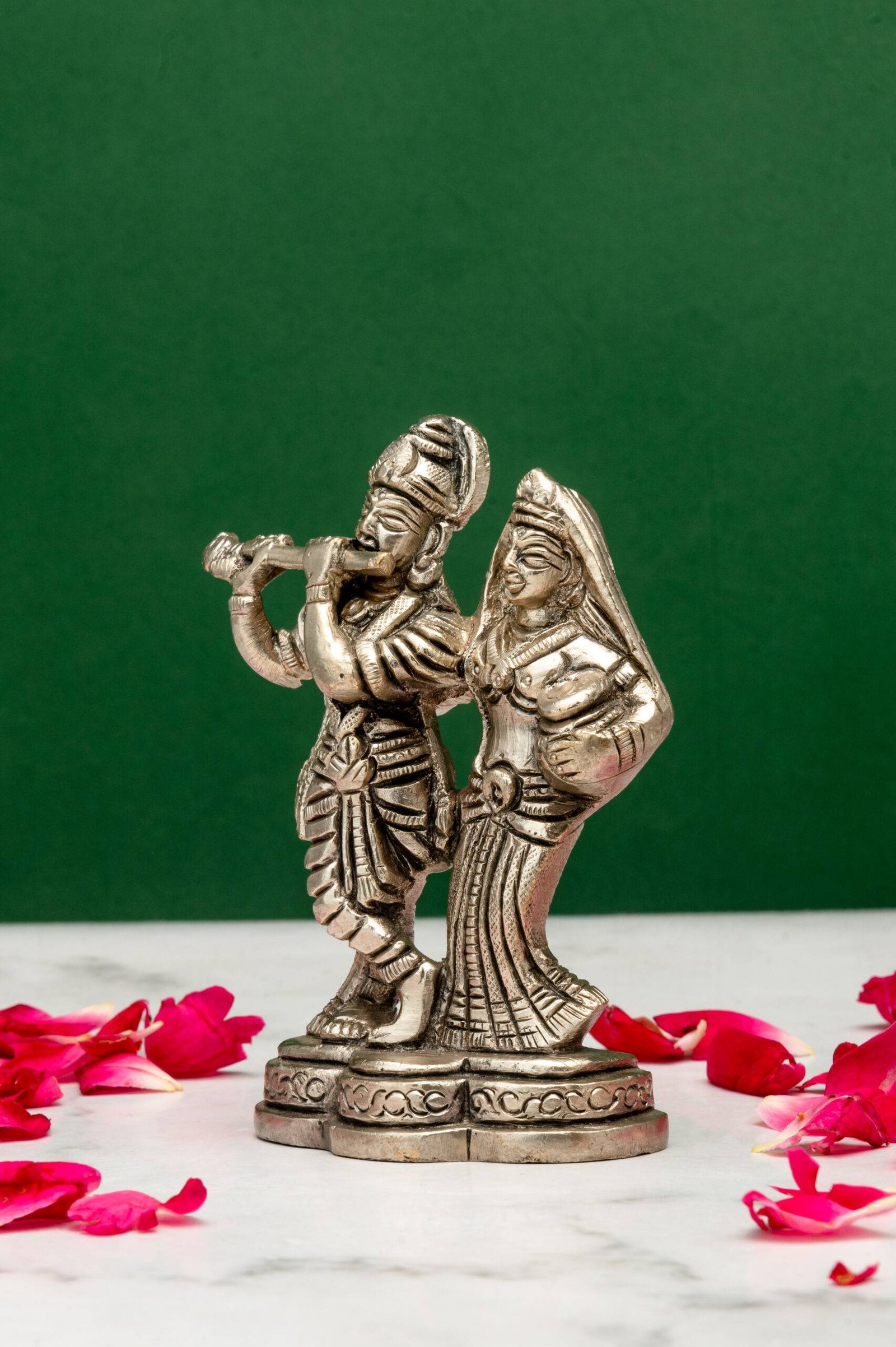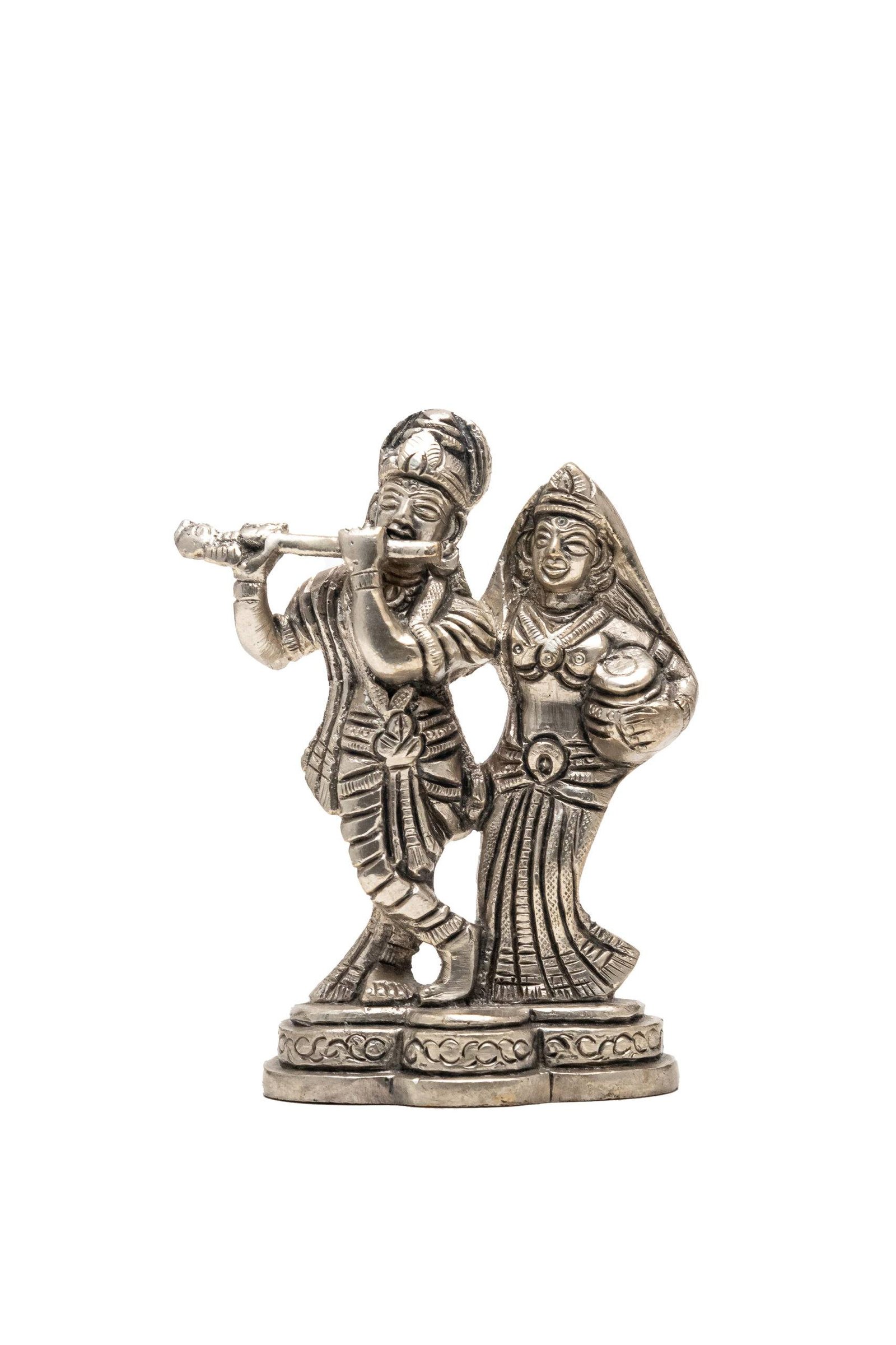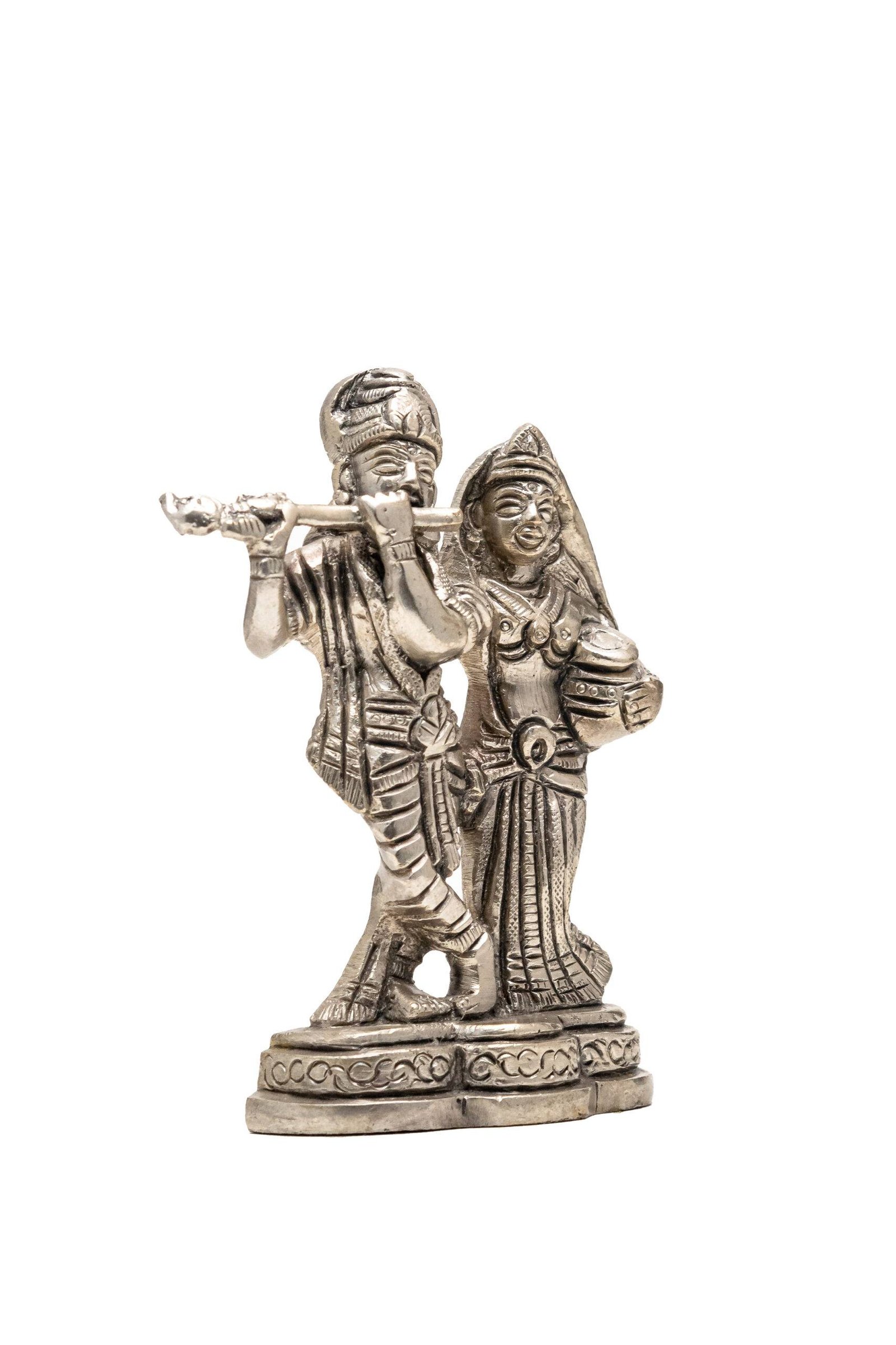 Be the first to review “Brass Silver-Coated Radha Krishna Idol – 4.35 Inch”