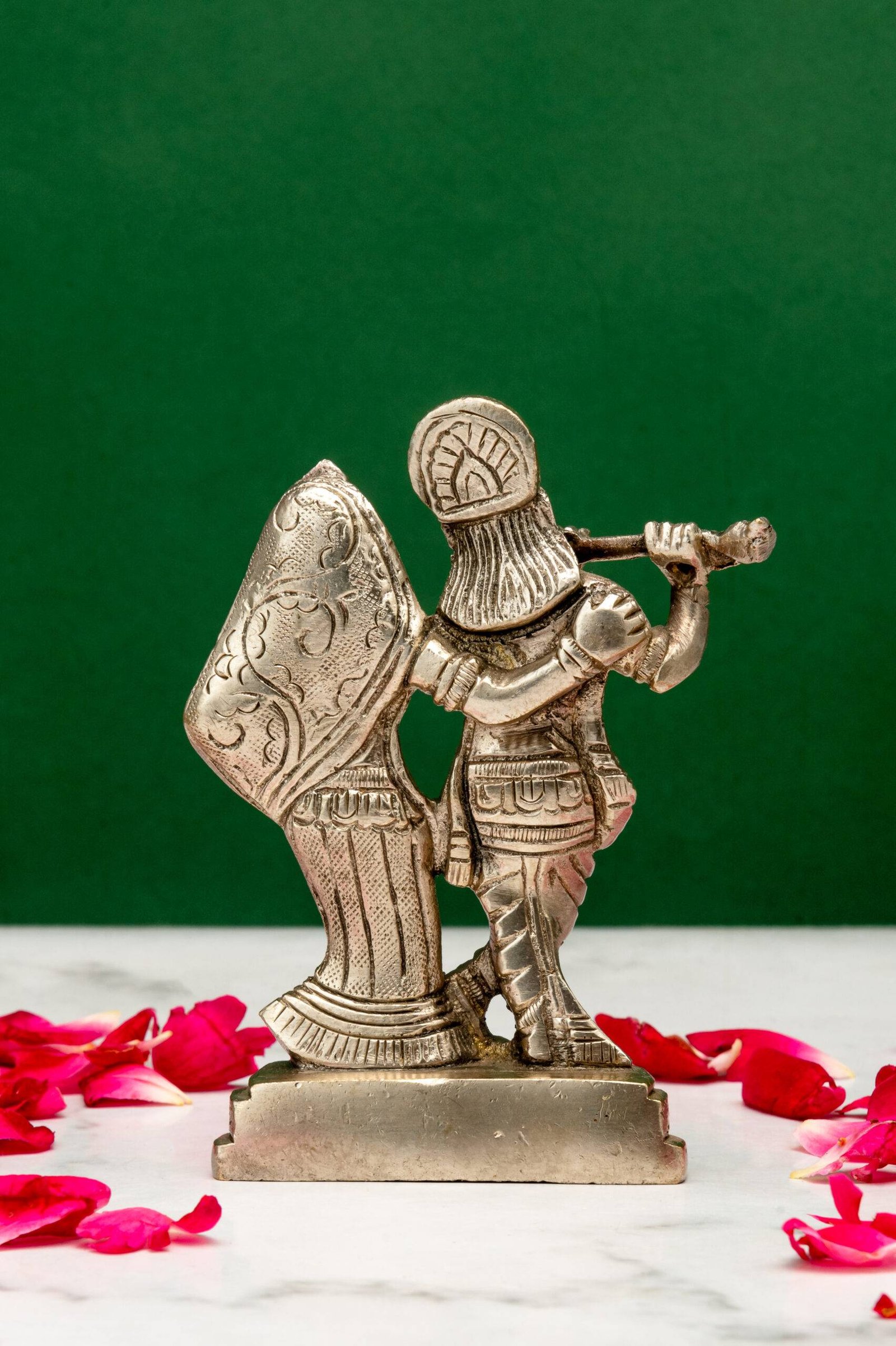 3. Symbol of Joy and Creativity: Lord Krishna’s flute-playing is a metaphor for spreading joy and invoking creativity. Placing this idol can inspire innovative ideas and bring happiness to your surroundings.