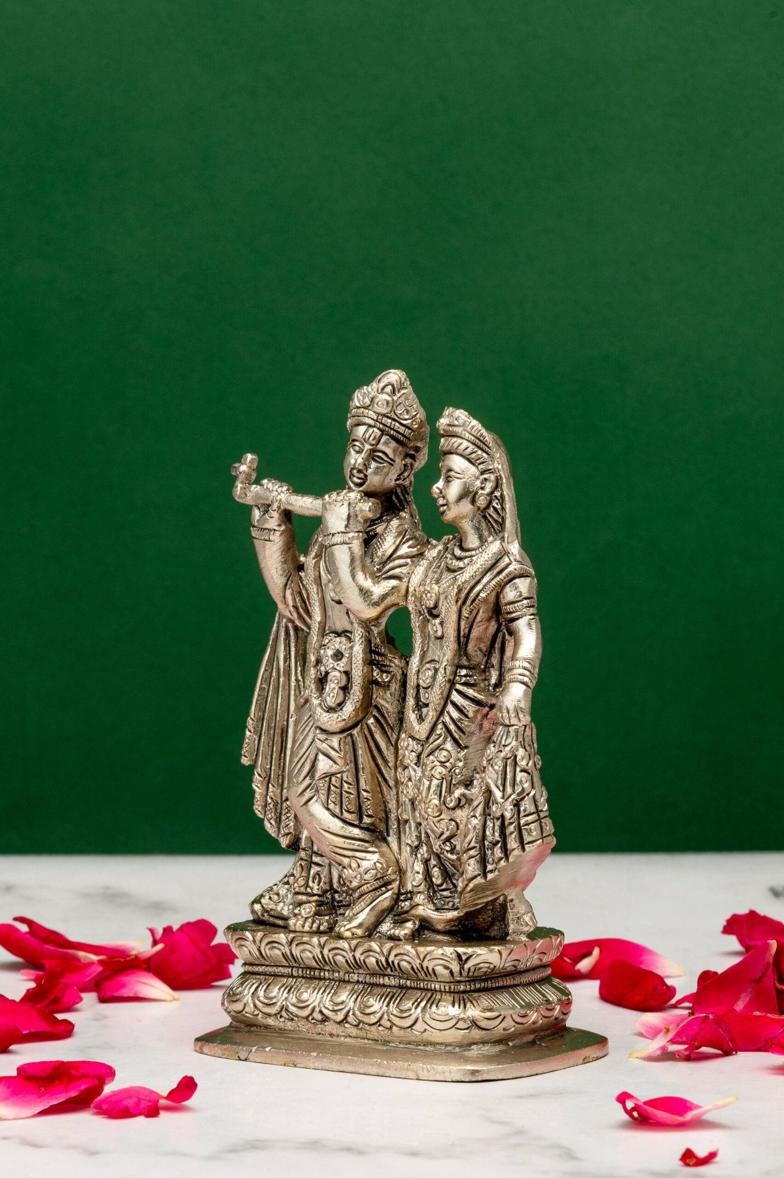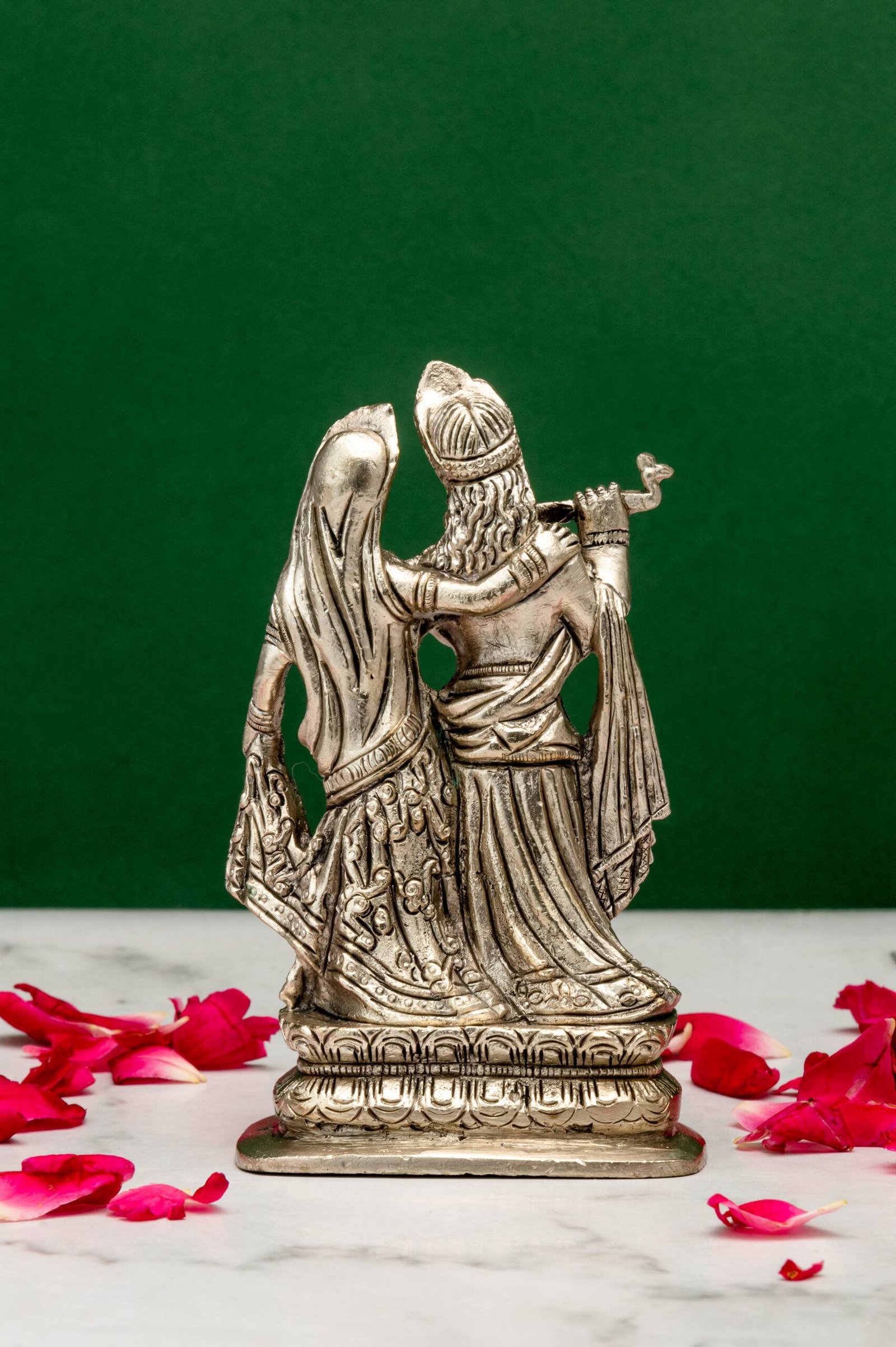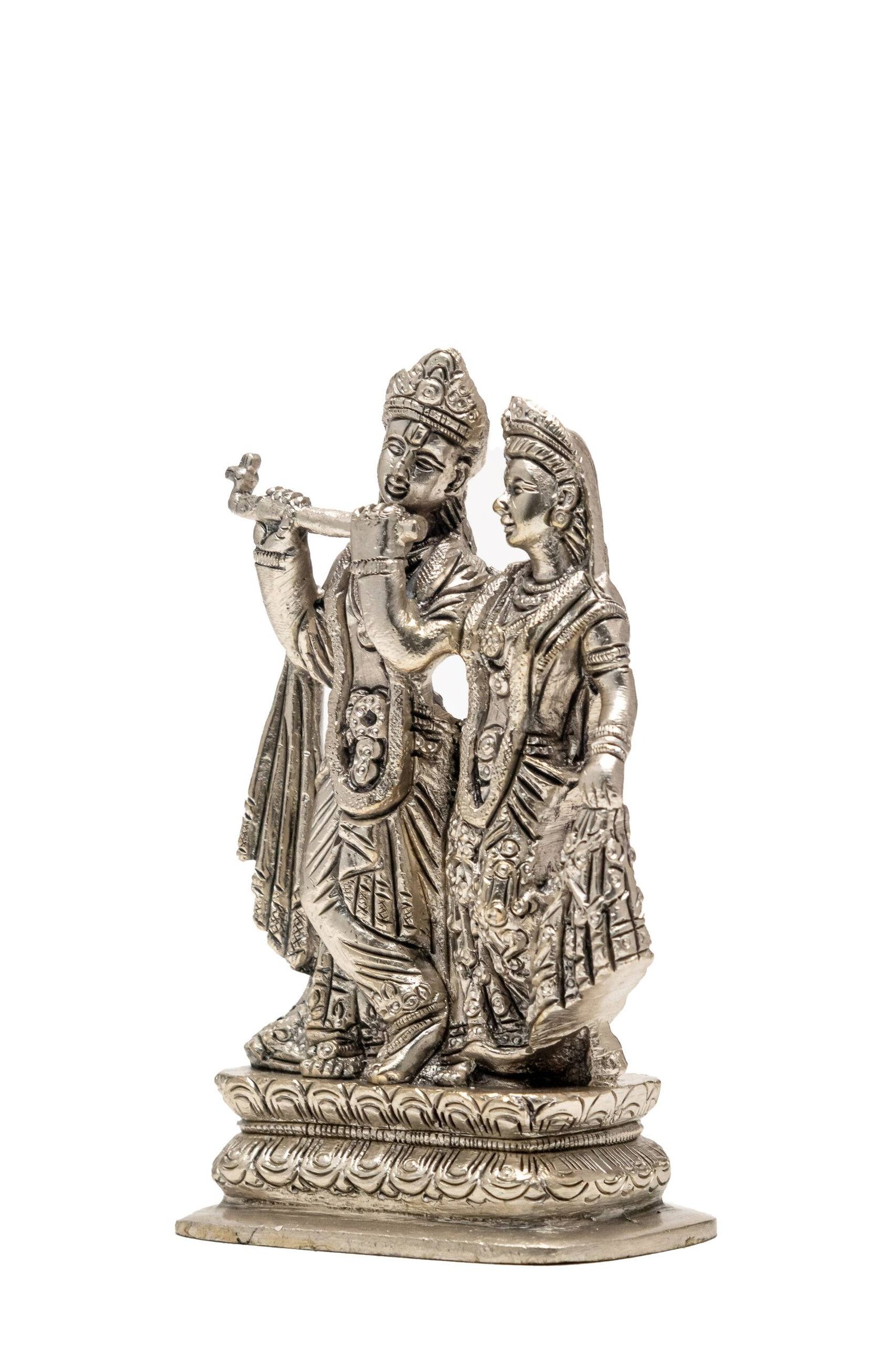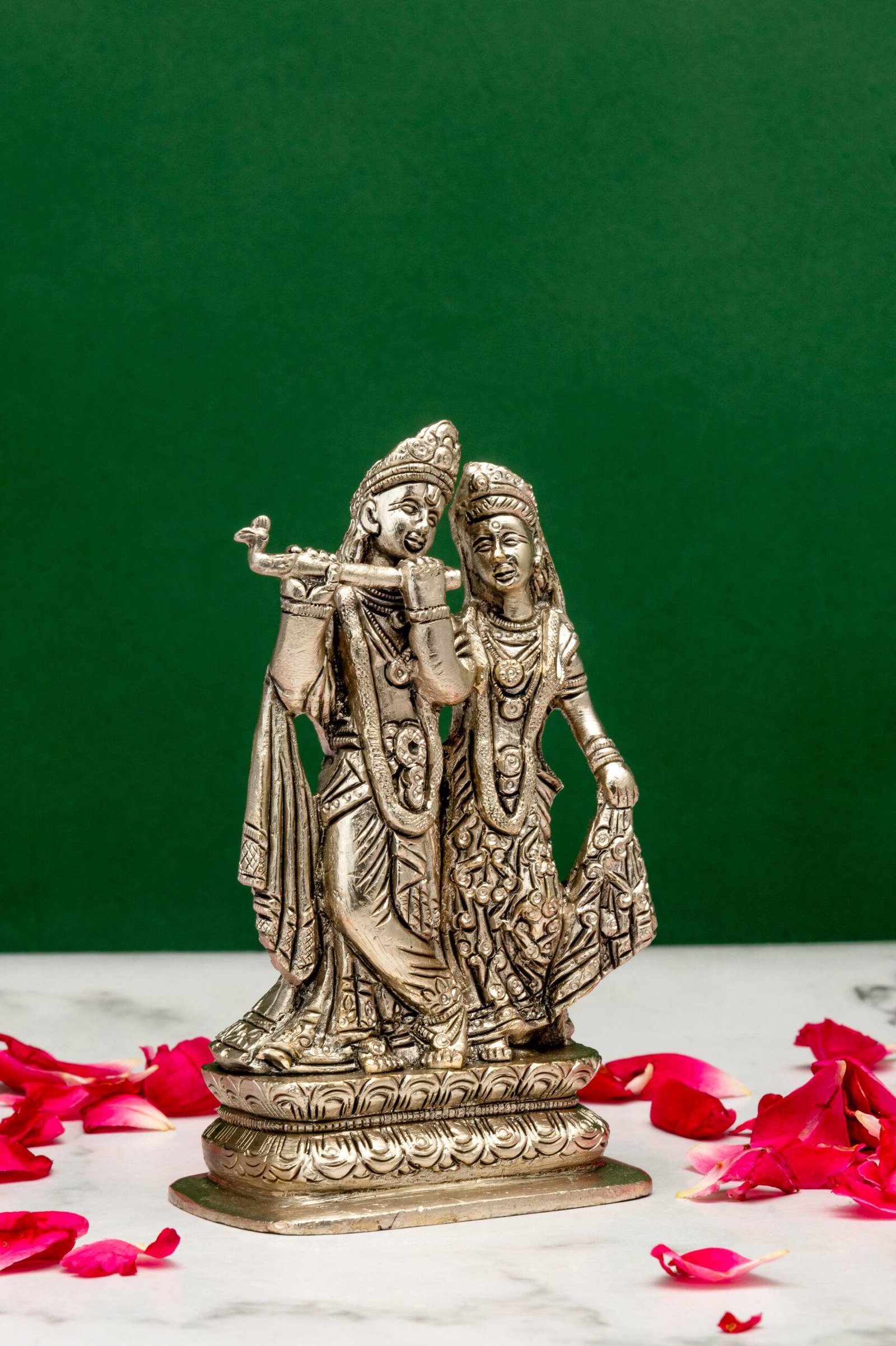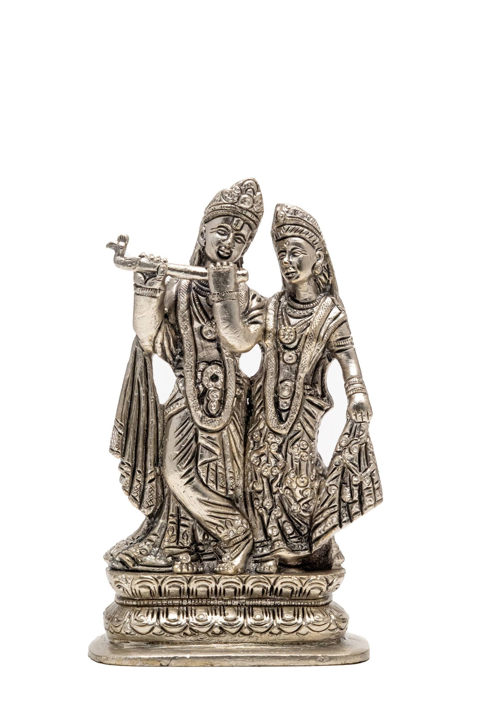Be the first to review “Brass Silver-Coated Radha Krishna Idol – 5.15 Inch”