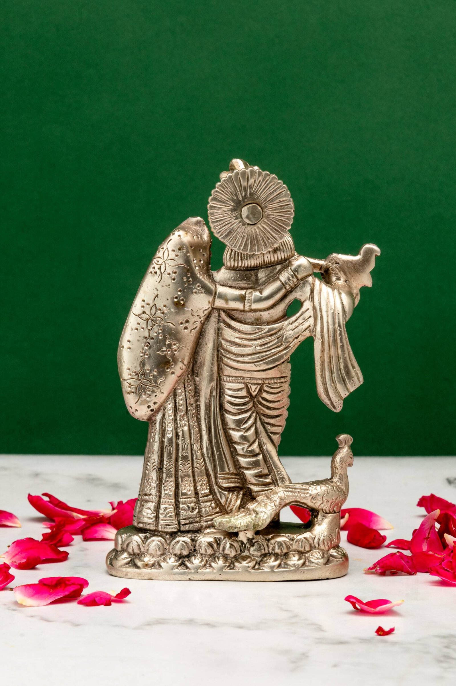 3. Symbol of Joy and Creativity: Lord Krishna’s flute-playing is a metaphor for spreading joy and invoking creativity. Placing this idol can inspire innovative ideas and bring happiness to your surroundings.