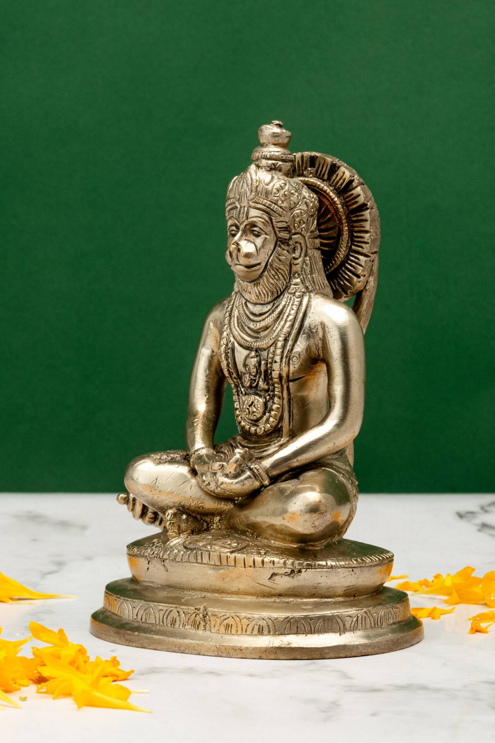 - Courage and Confidence: Bajrang Bali’s meditative posture reminds us of his immense courage, which comes from self-awareness and faith. It inspires resilience and determination in facing life’s challenges.