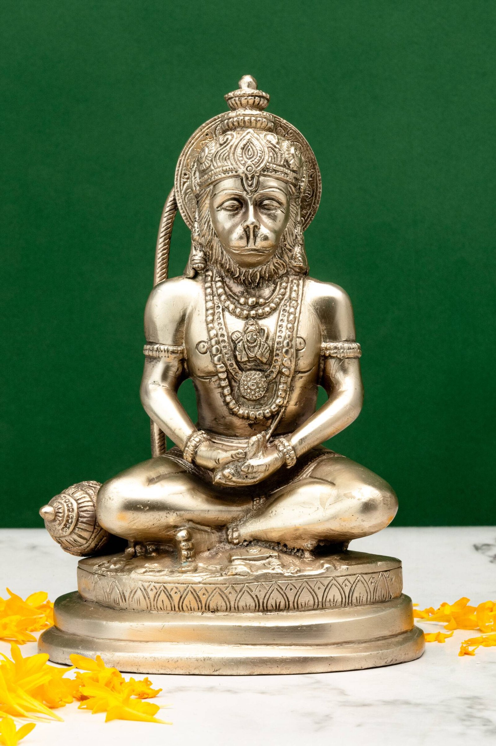 - Courage and Confidence: Bajrang Bali’s meditative posture reminds us of his immense courage, which comes from self-awareness and faith. It inspires resilience and determination in facing life’s challenges.
