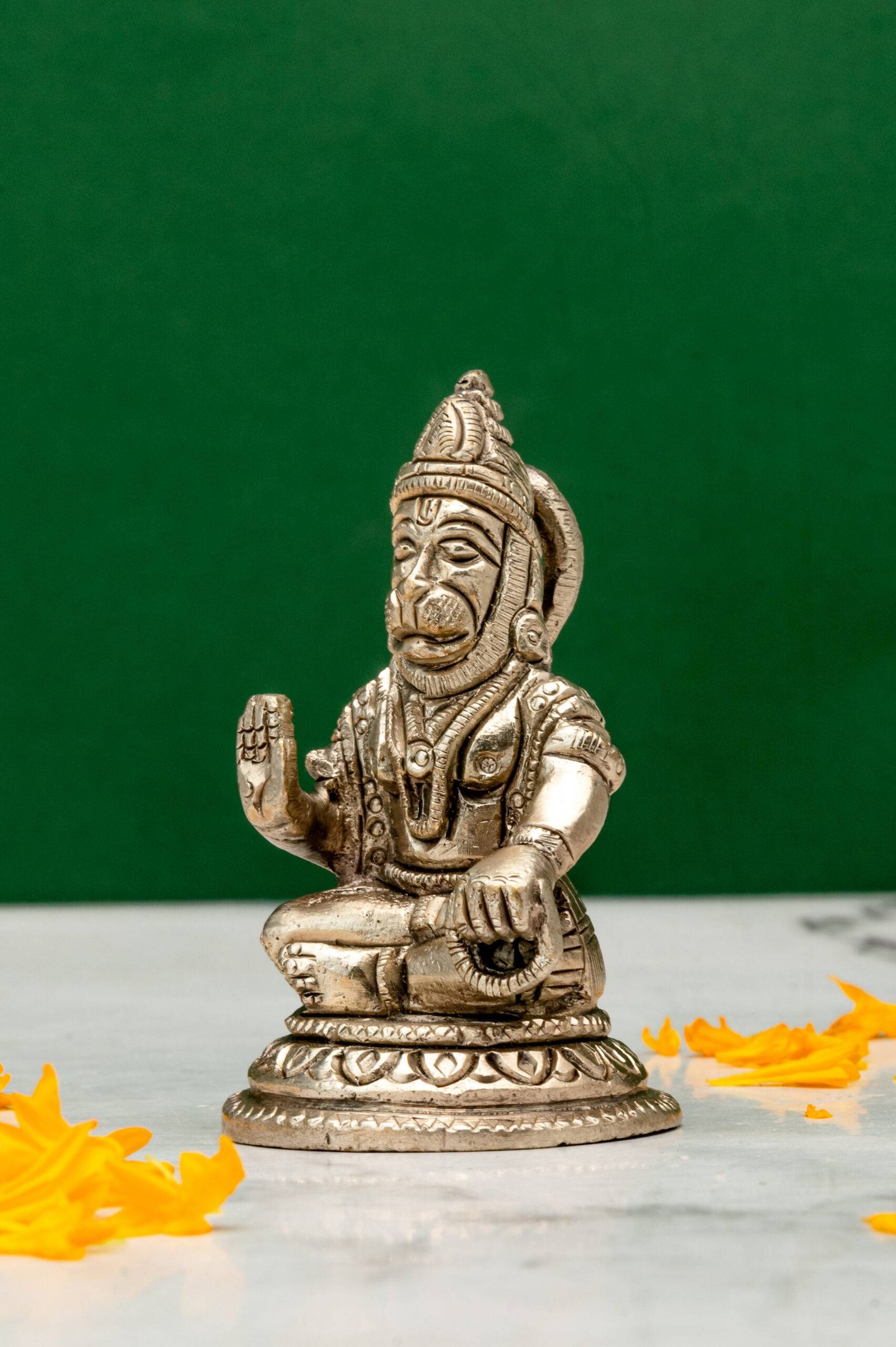 1. Protection and Courage: Lord Hanuman is revered as the remover of fears and negativity. Keeping his idol in this pose brings protection against evil influences and instills confidence in one’s endeavors.