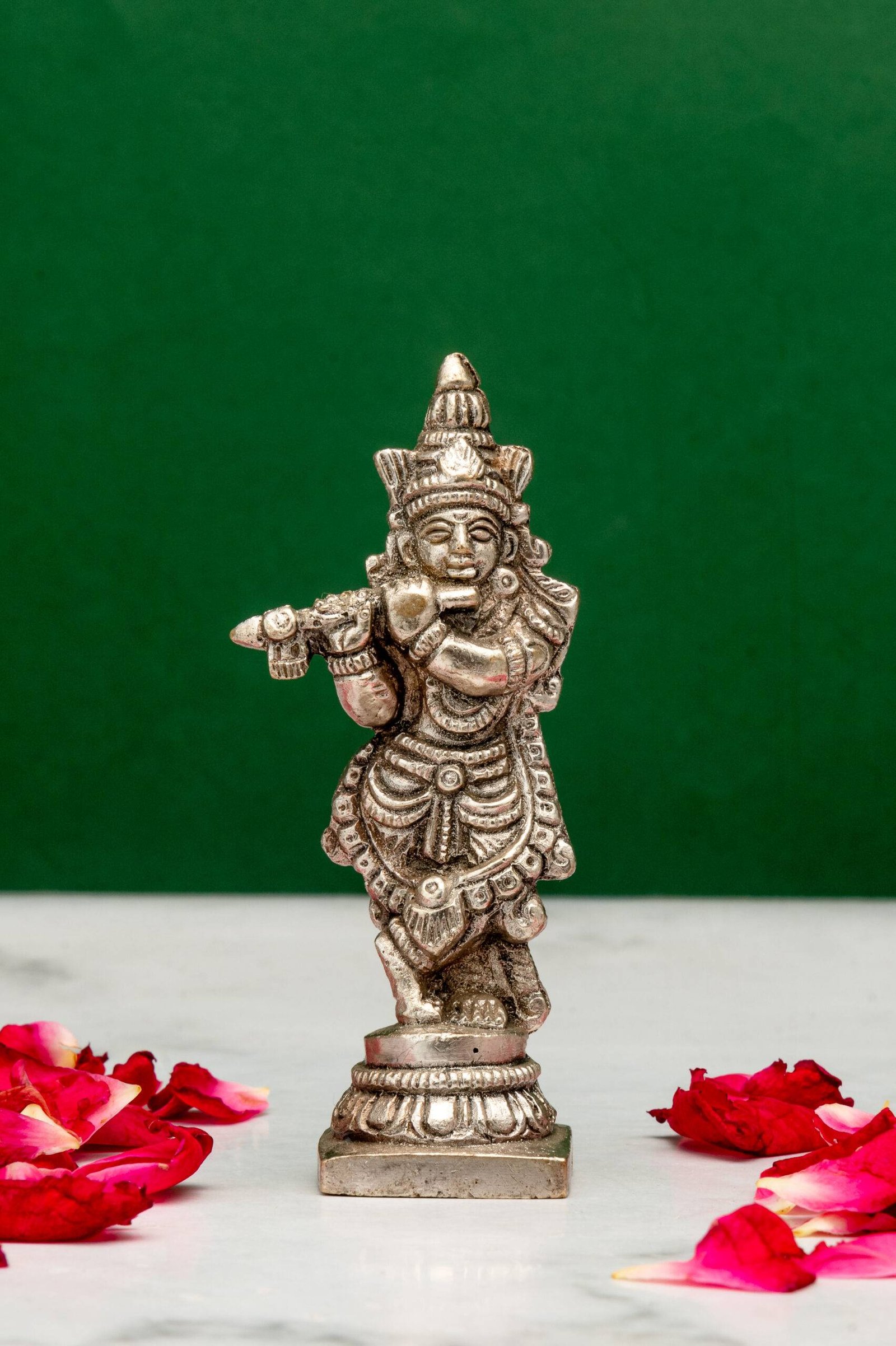 Be the first to review “Brass Silver-Coated Superfine Lord Krishna Idol Playing Flute – Detailed Carving – 3.5 Inch”