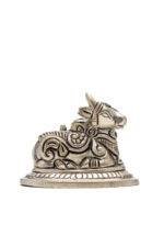 Brass Silver-Coated Superfine Nandi Idol – Beautifully Carved – 2.5 Inches