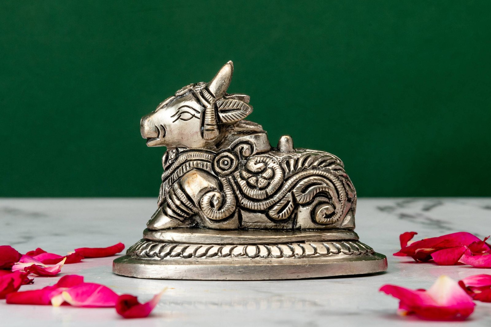 Brass Silver-Coated Superfine Nandi Idol - Beautifully Carved - 5.20 Inches Original price was: ₹10,750.00.Current price is: ₹8,450.00.