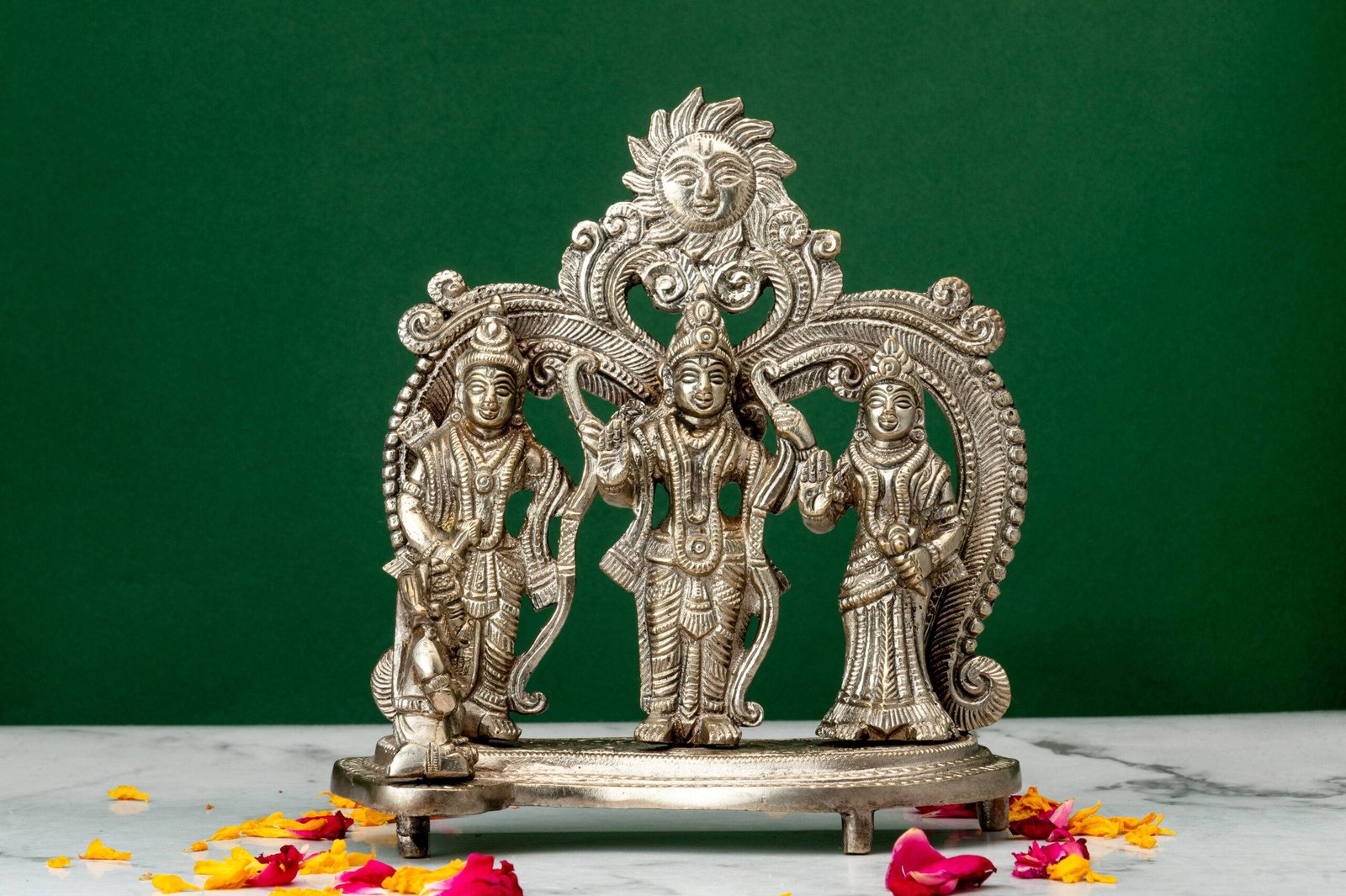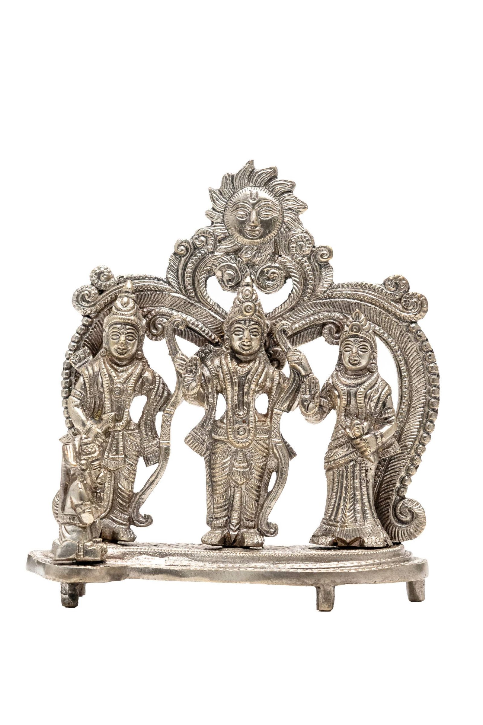 Keeping the Brass Superfine Silver Coated Ram Darbar Idol in your home or office invokes divine protection, inspires righteousness, and brings prosperity. It serves as a constant reminder of devotion, courage, and the power of dharma, making it an essential addition to any space that seeks peace, harmony, and success.