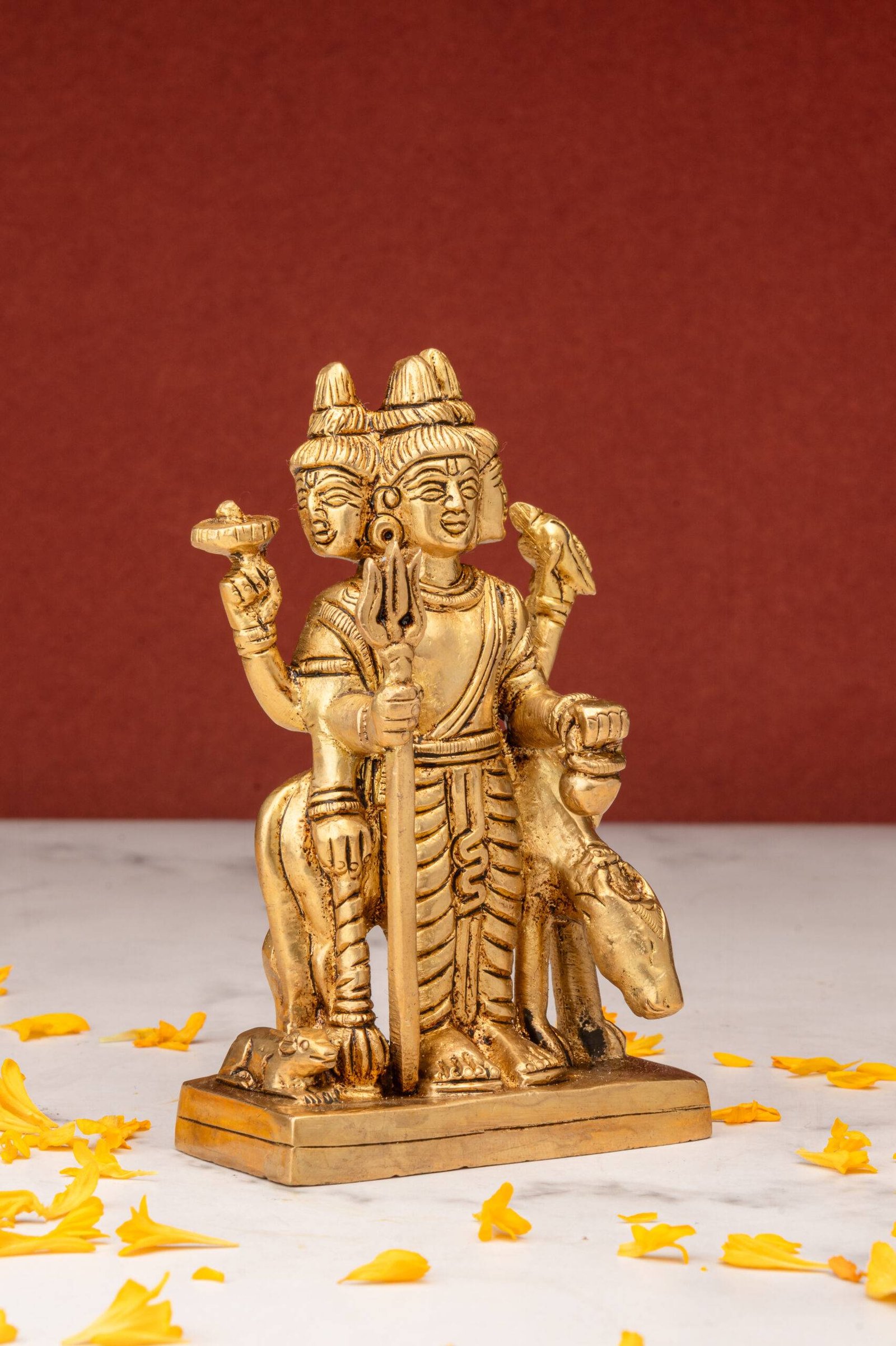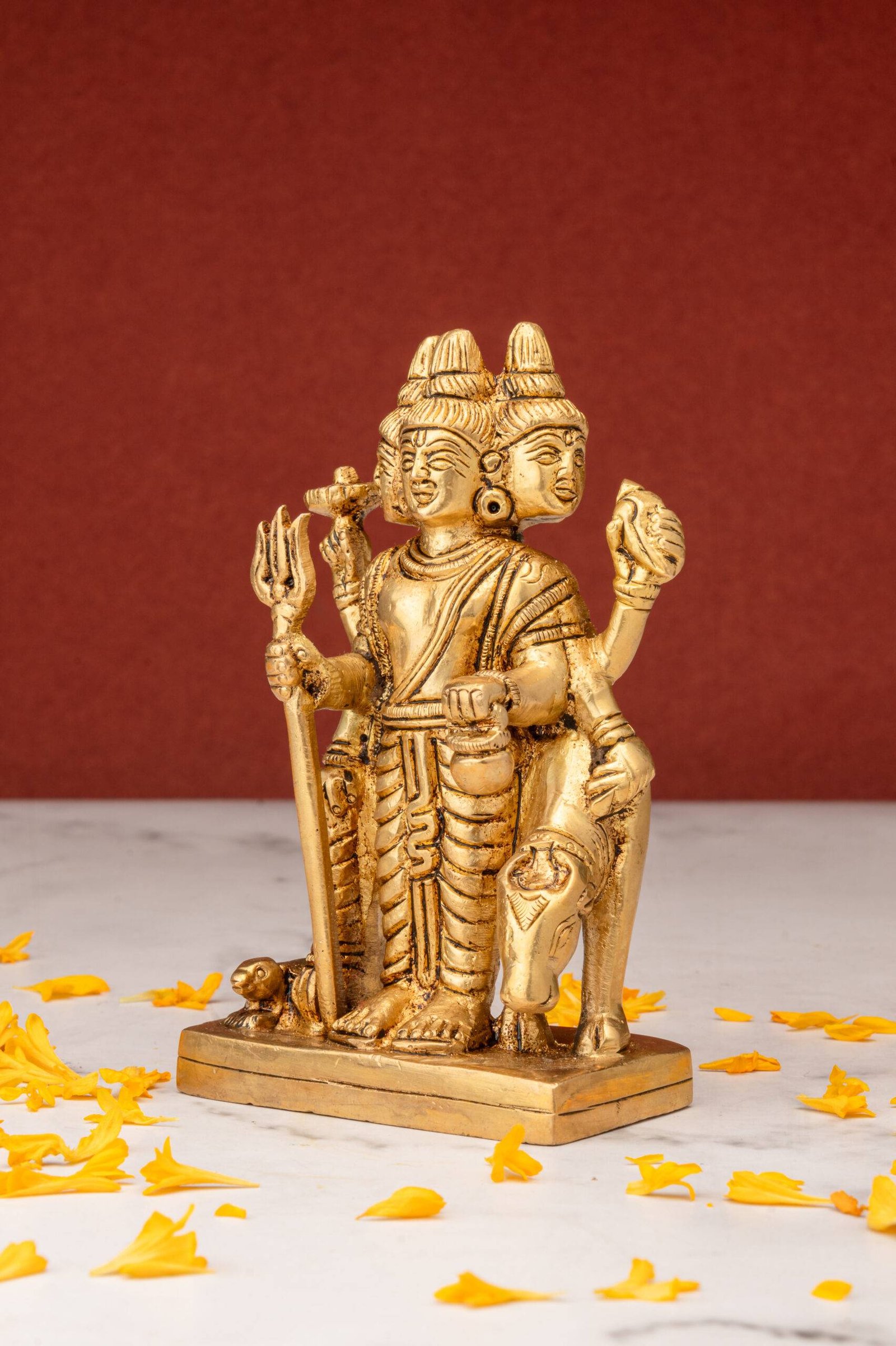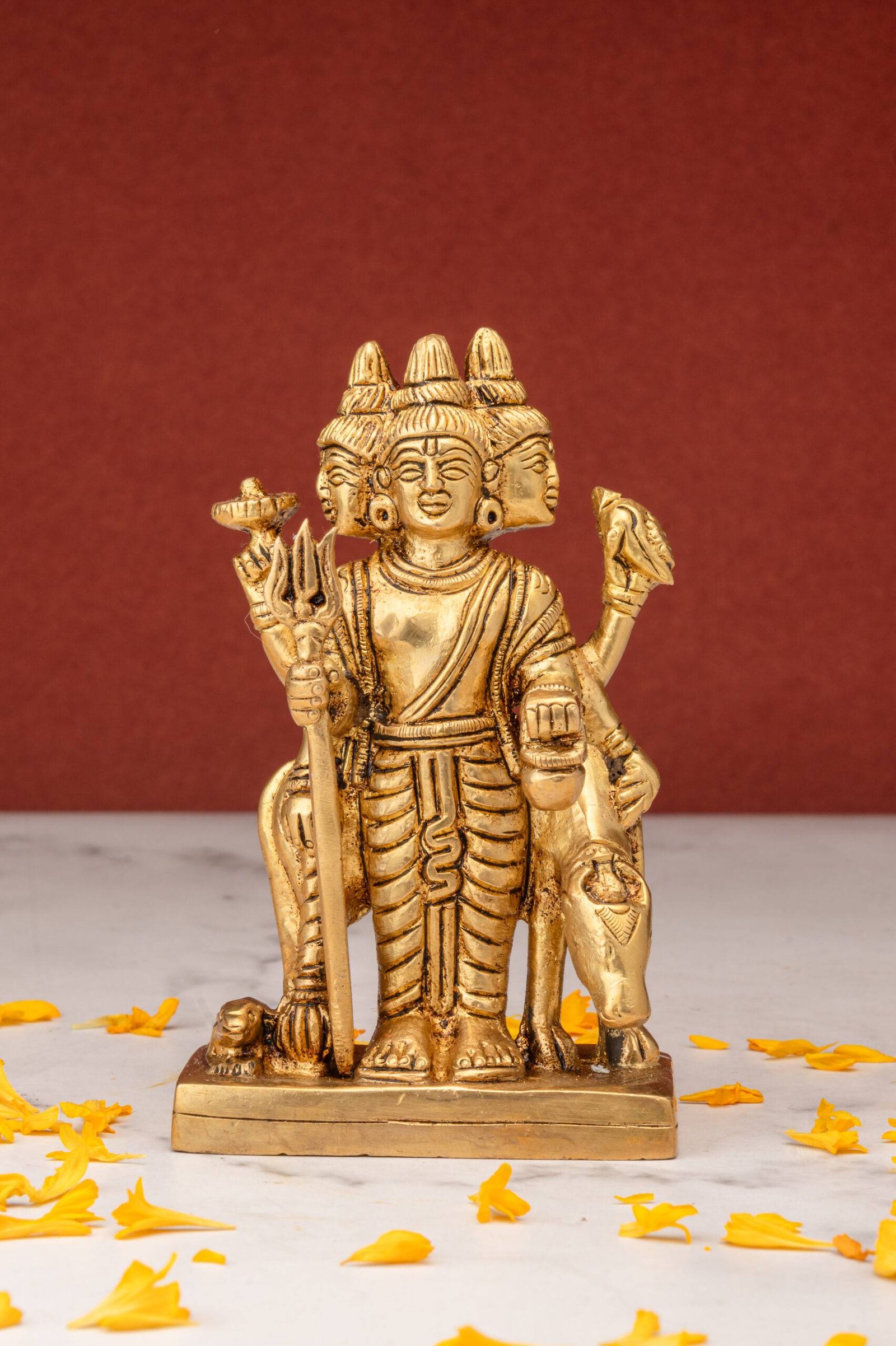 Standing Brass Dattatreya Idol – the Divine Unity – 4.5 Inch