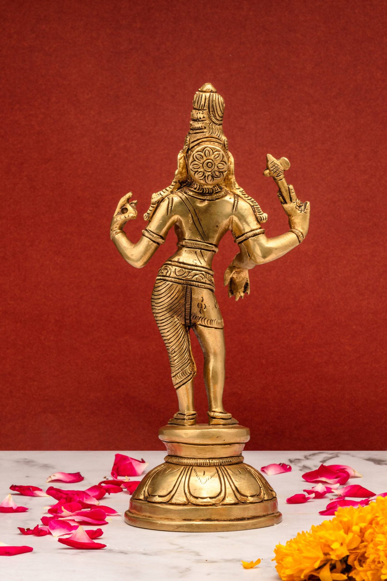 The Brass Superfine Ardhanarishvara Idol is a timeless representation of cosmic unity and divine balance. Place it in your home or office to invite harmony, spiritual growth, and the blessings of Lord Shiva and Goddess Parvati in their most magnificent form.