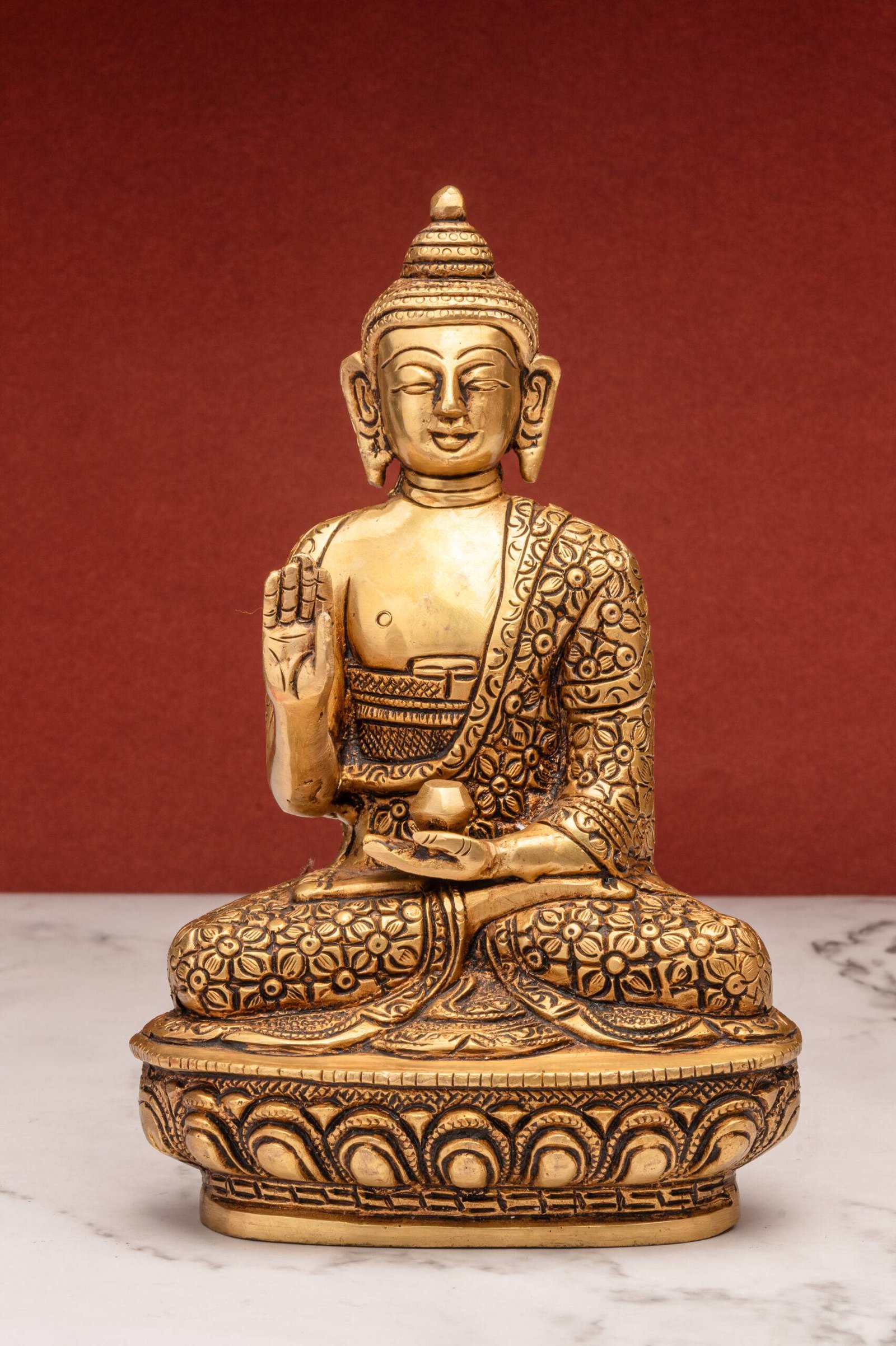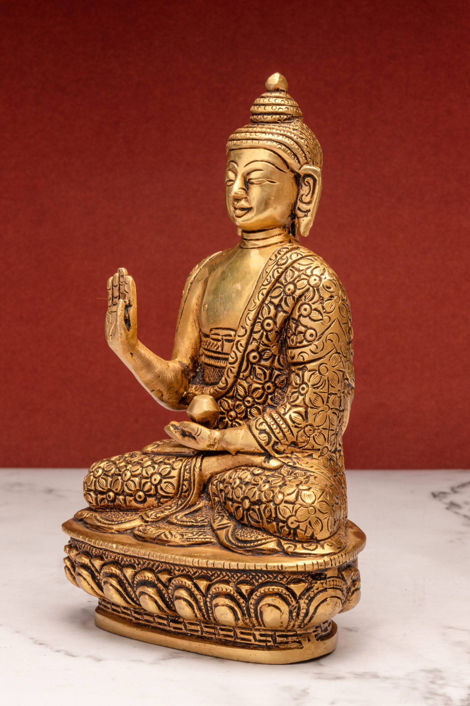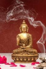 Placement Tip: Position the Buddha in Abhaya Mudra at eye level in a clean, uncluttered space facing the main entrance to invite protective energy and positivity into the area.