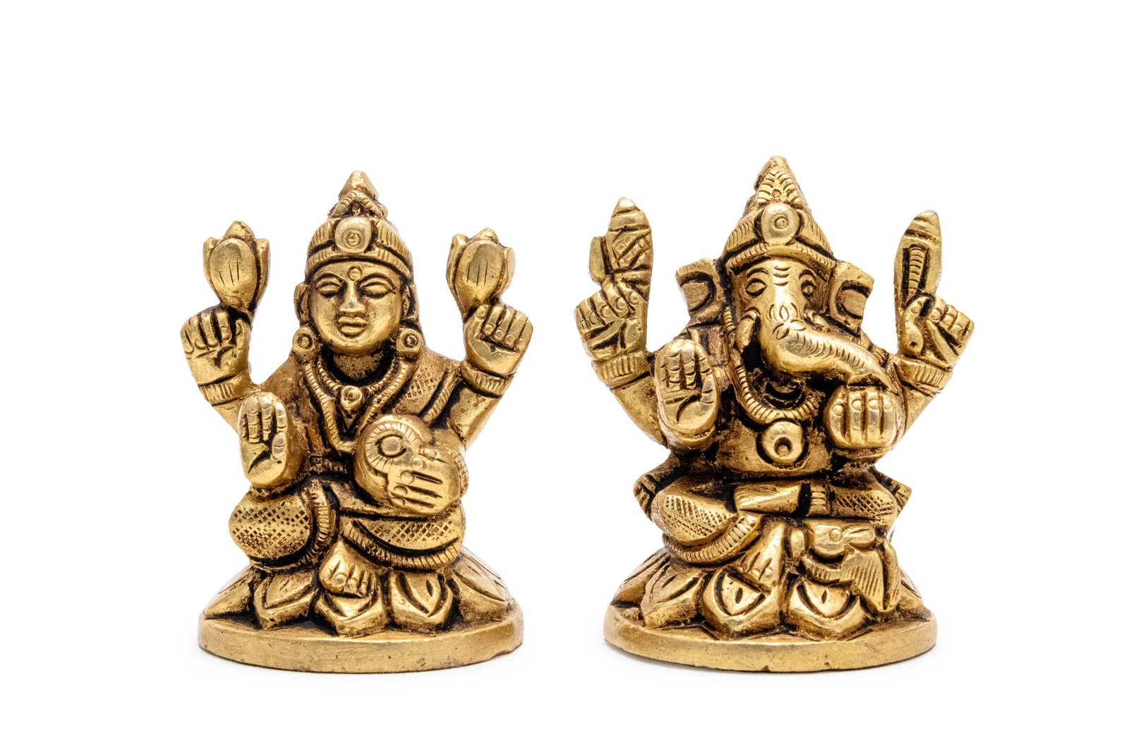 Lord Ganesha and Goddess Laxmi are worshiped as symbols of prosperity, wisdom, and success. Lord Ganesha, the remover of obstacles and the deity of intellect and beginnings, complements Goddess Laxmi, the goddess of wealth, fortune, and abundance. Together, they embody a harmonious blend of material and spiritual prosperity, ensuring a balanced and fulfilling life.