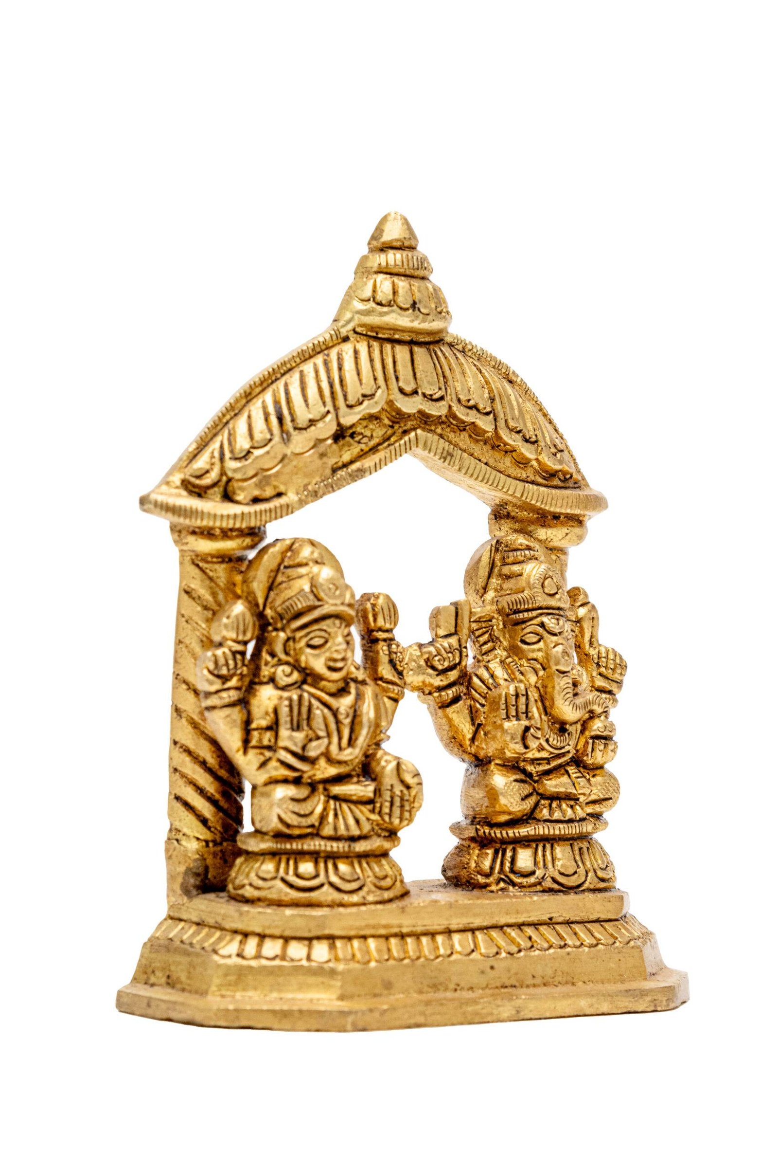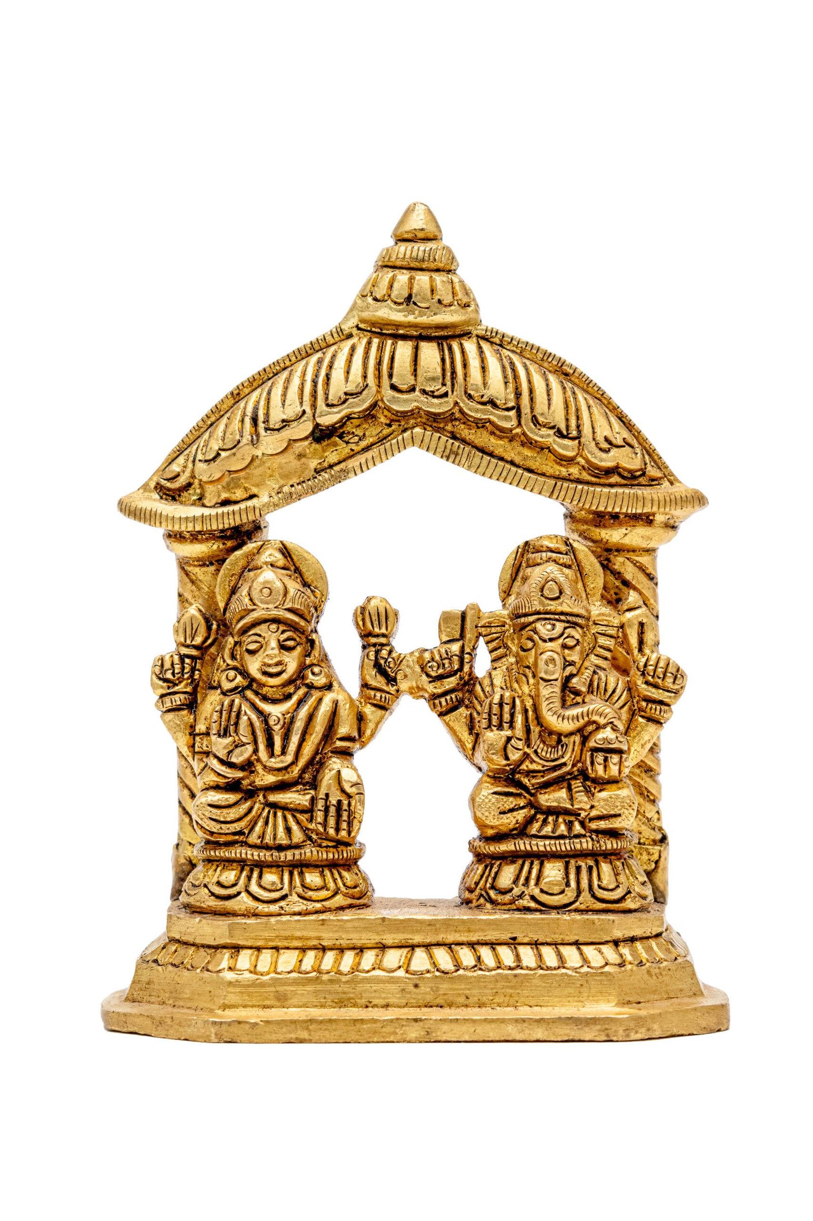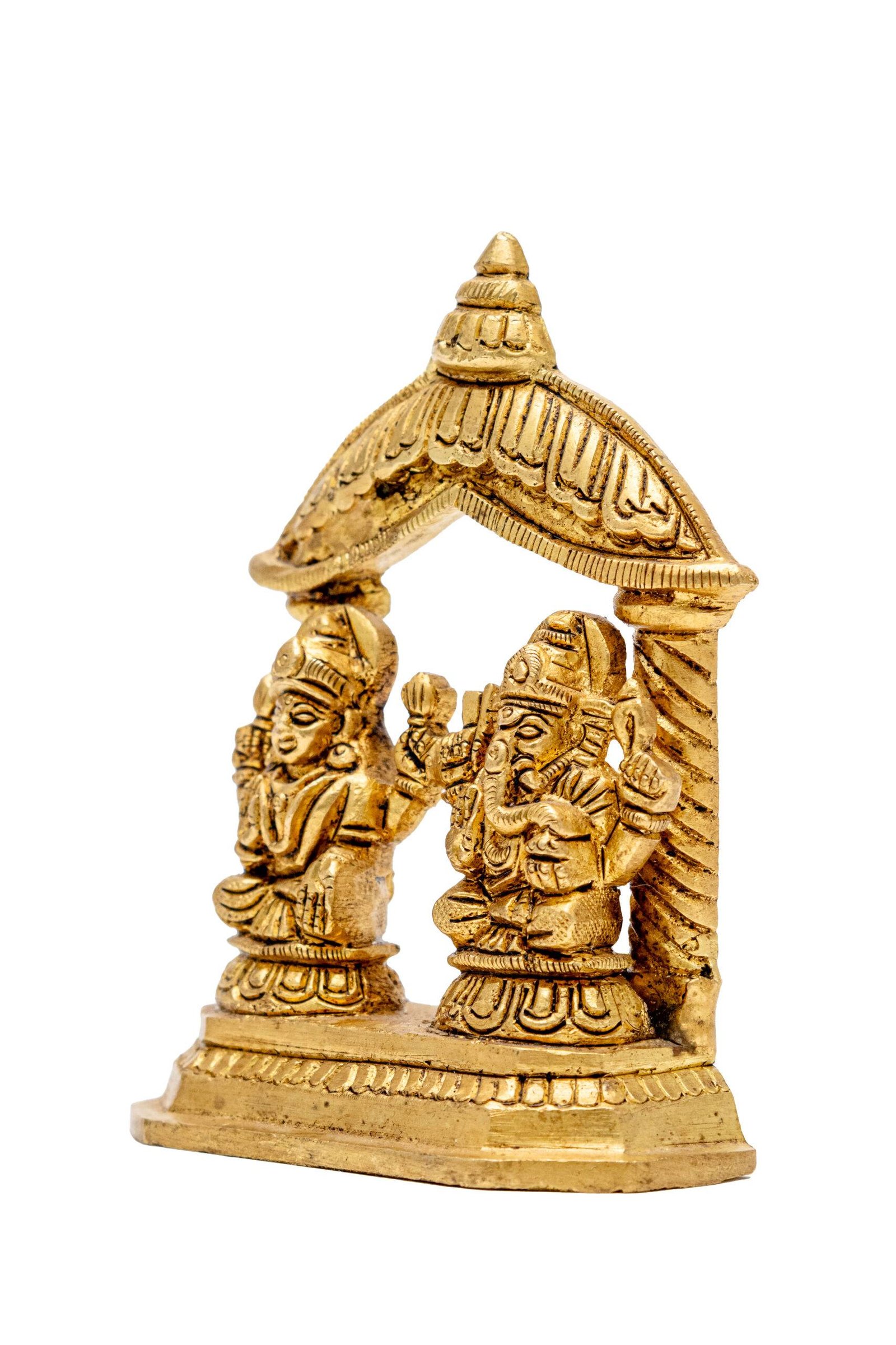 Brass Superfine Ganesh Laxmi Idol – With Frame – 4.25 Inch