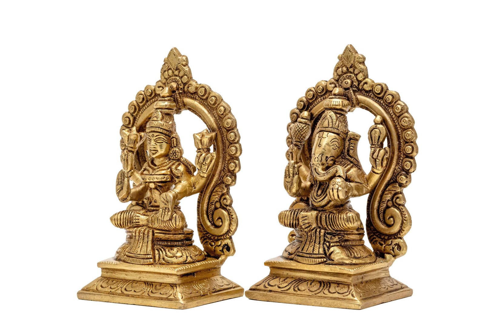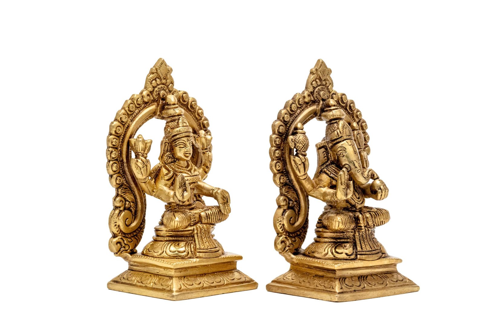 Brass Superfine Ganesh Laxmi Idol – With Frame – 5.5 Inch