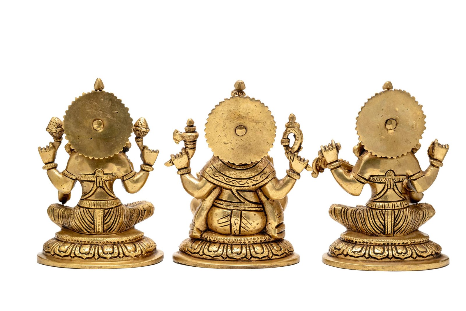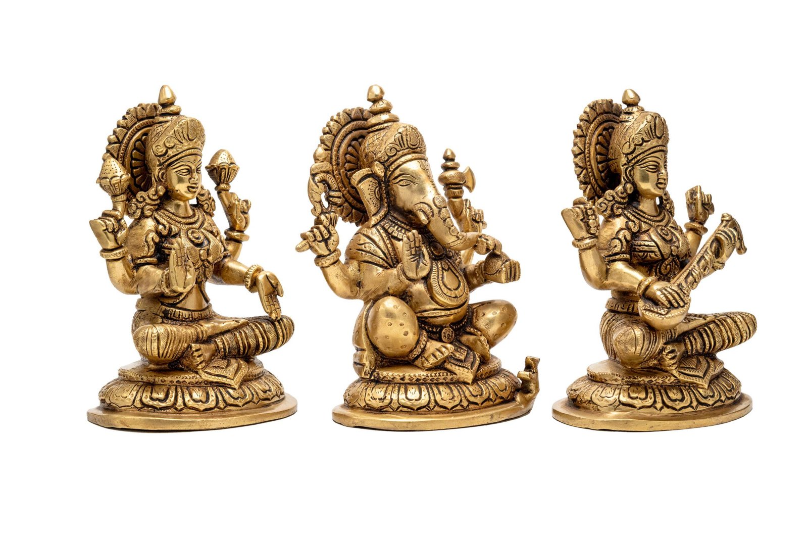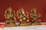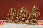 Brass Superfine Ganesh Laxmi Saraswati Idols – Detailed Carving – 7.5 Inch