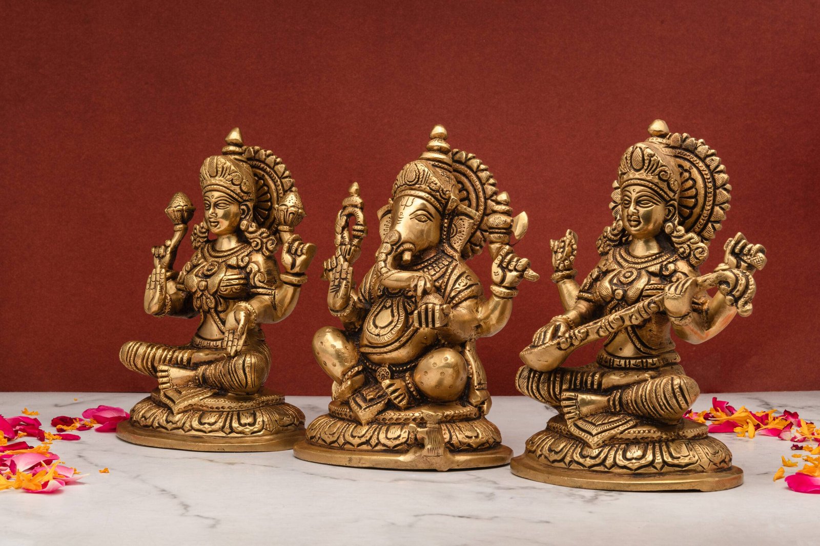 Significance of Keeping Brass Superfine Ganesh, Laxmi, and Saraswati Idols