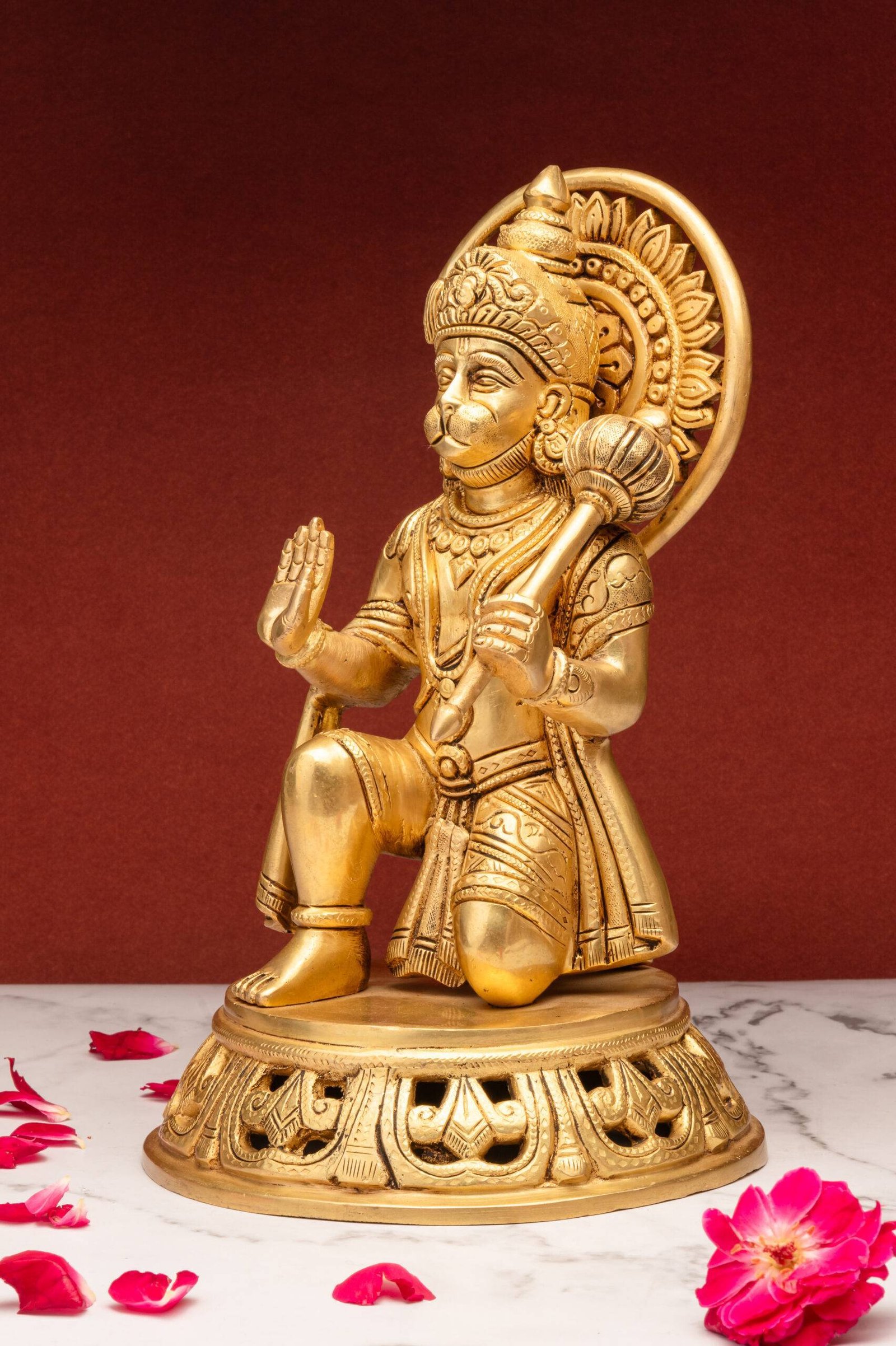 3. Compassion and Guidance: Hanuman Ji’s raised hand in blessing reflects his compassion and willingness to guide and support devotees in their spiritual and worldly endeavors. It encourages family members to seek his guidance and blessings in times of need.
