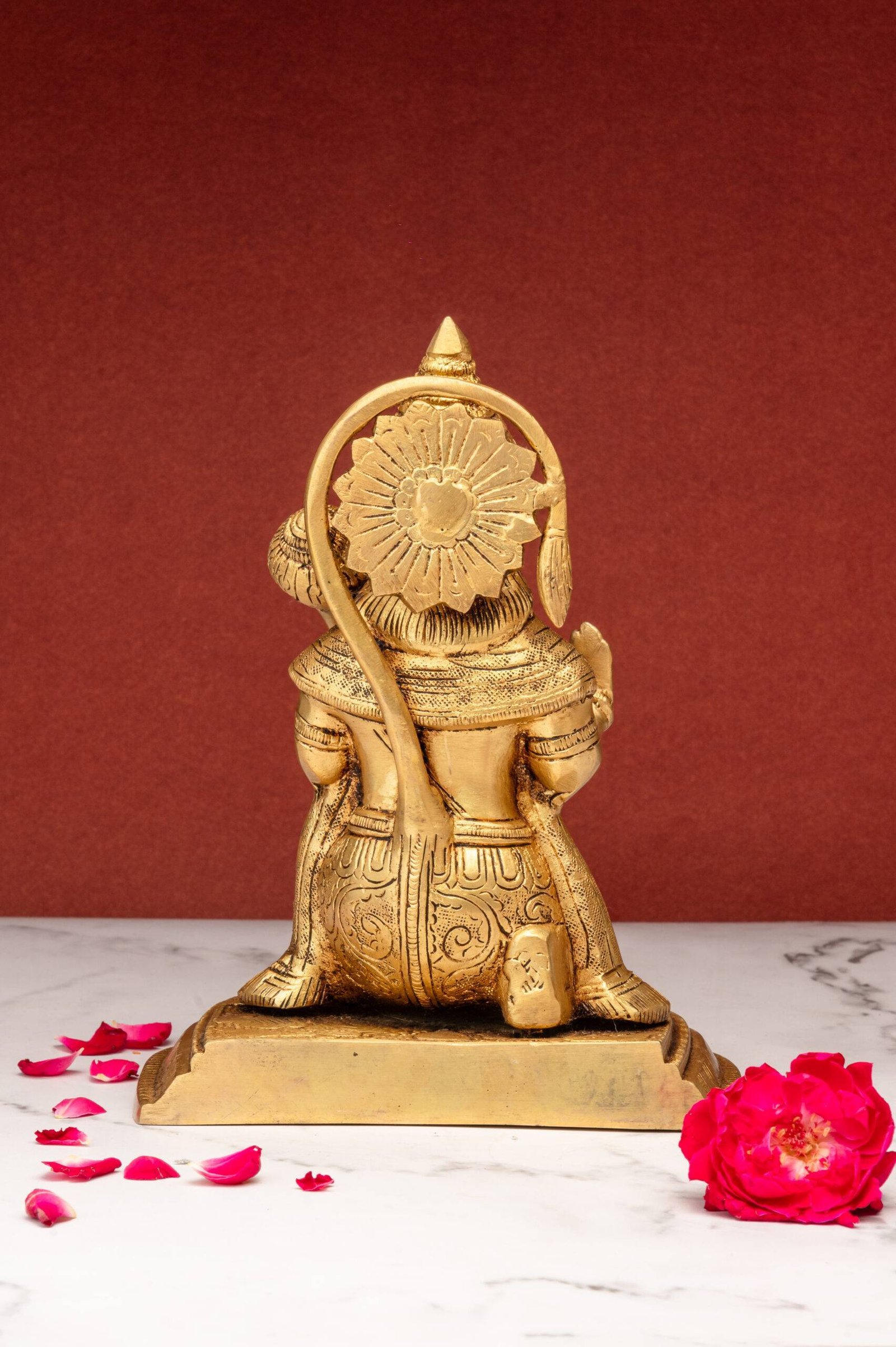 3. Compassion and Guidance: Hanuman Ji’s raised hand in blessing reflects his compassion and willingness to guide and support devotees in their spiritual and worldly endeavors. It encourages family members to seek his guidance and blessings in times of need.