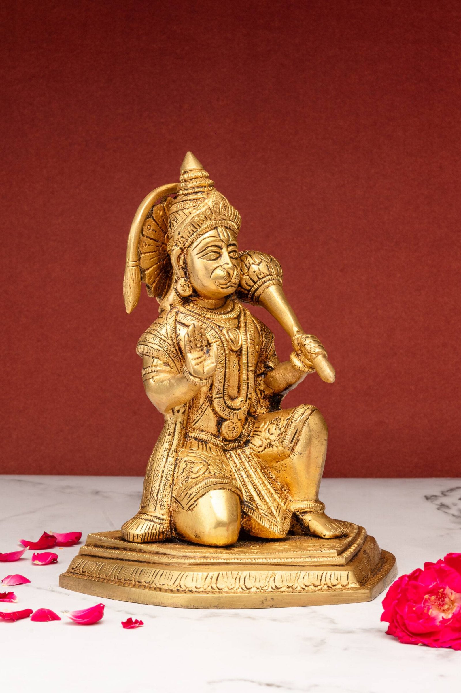 Superfine Brass Hanuman Idol – Ashirwad Mudra – Kneeling – 5.5 Inch