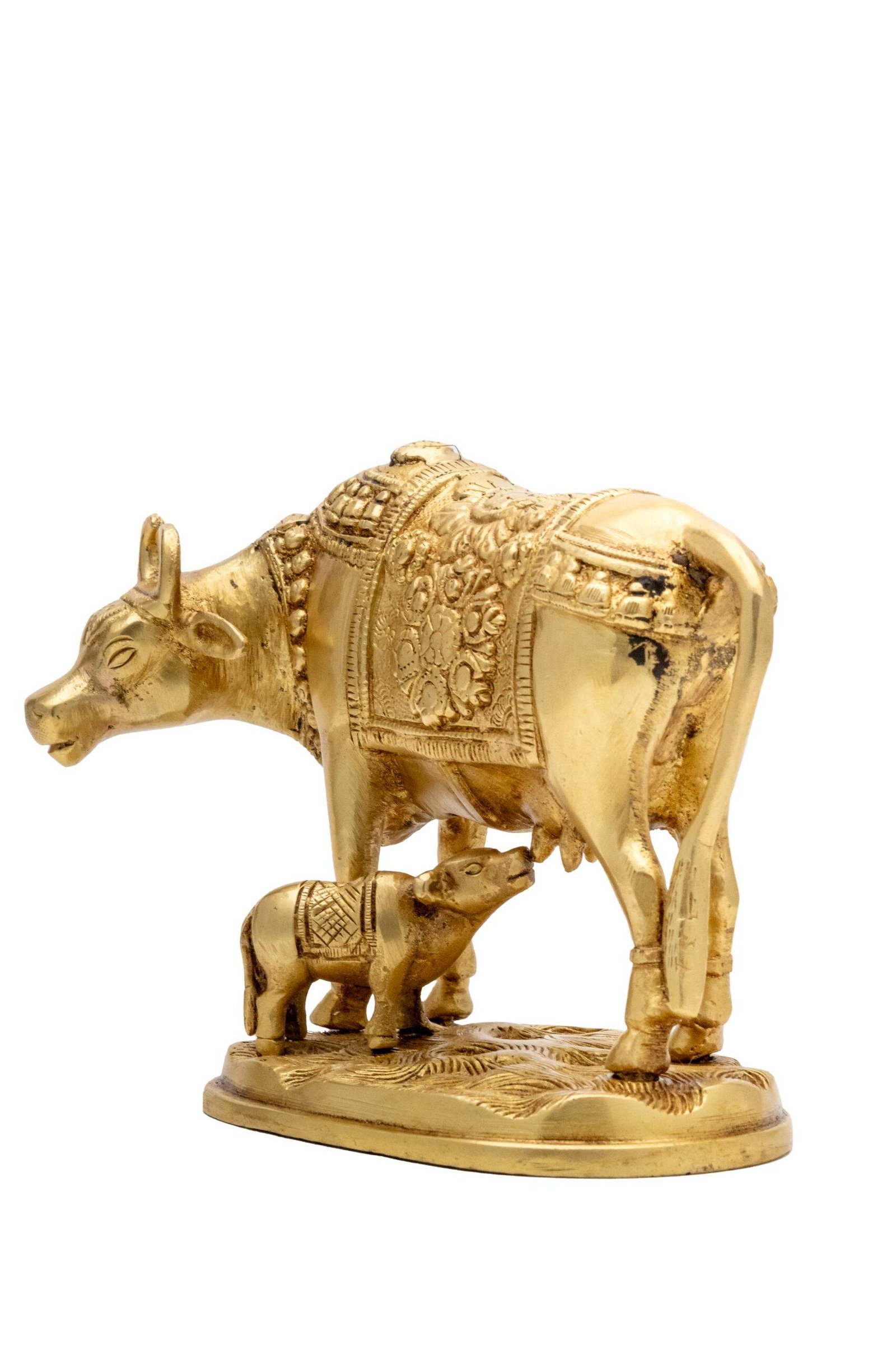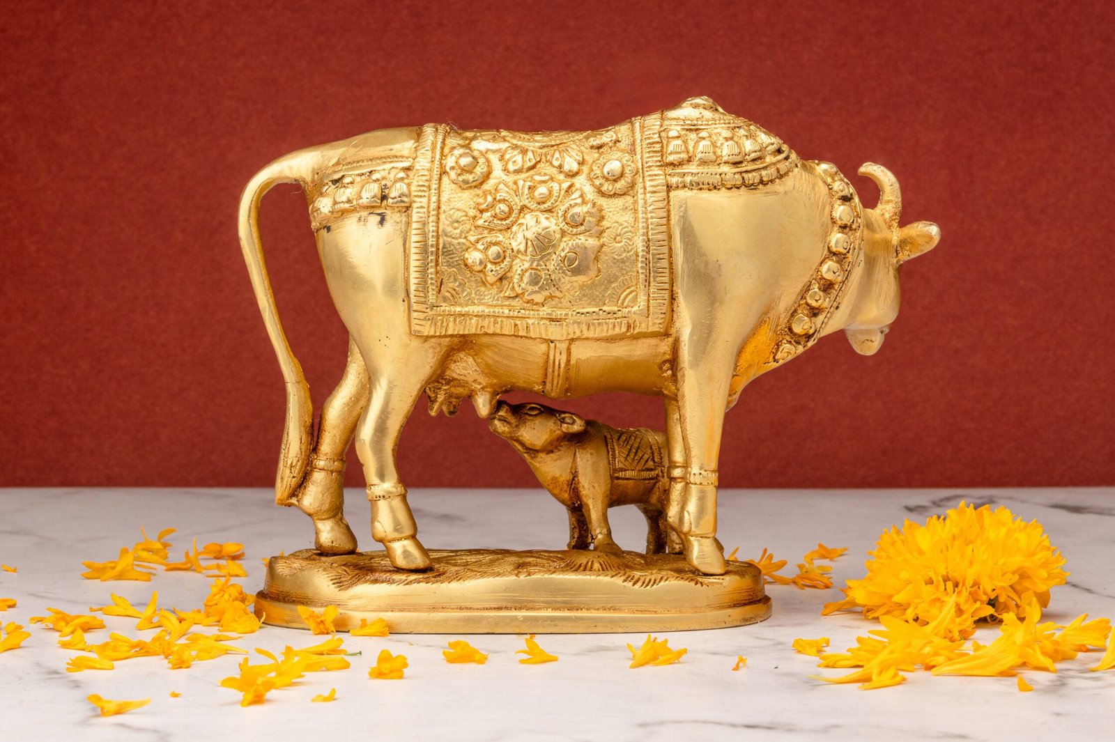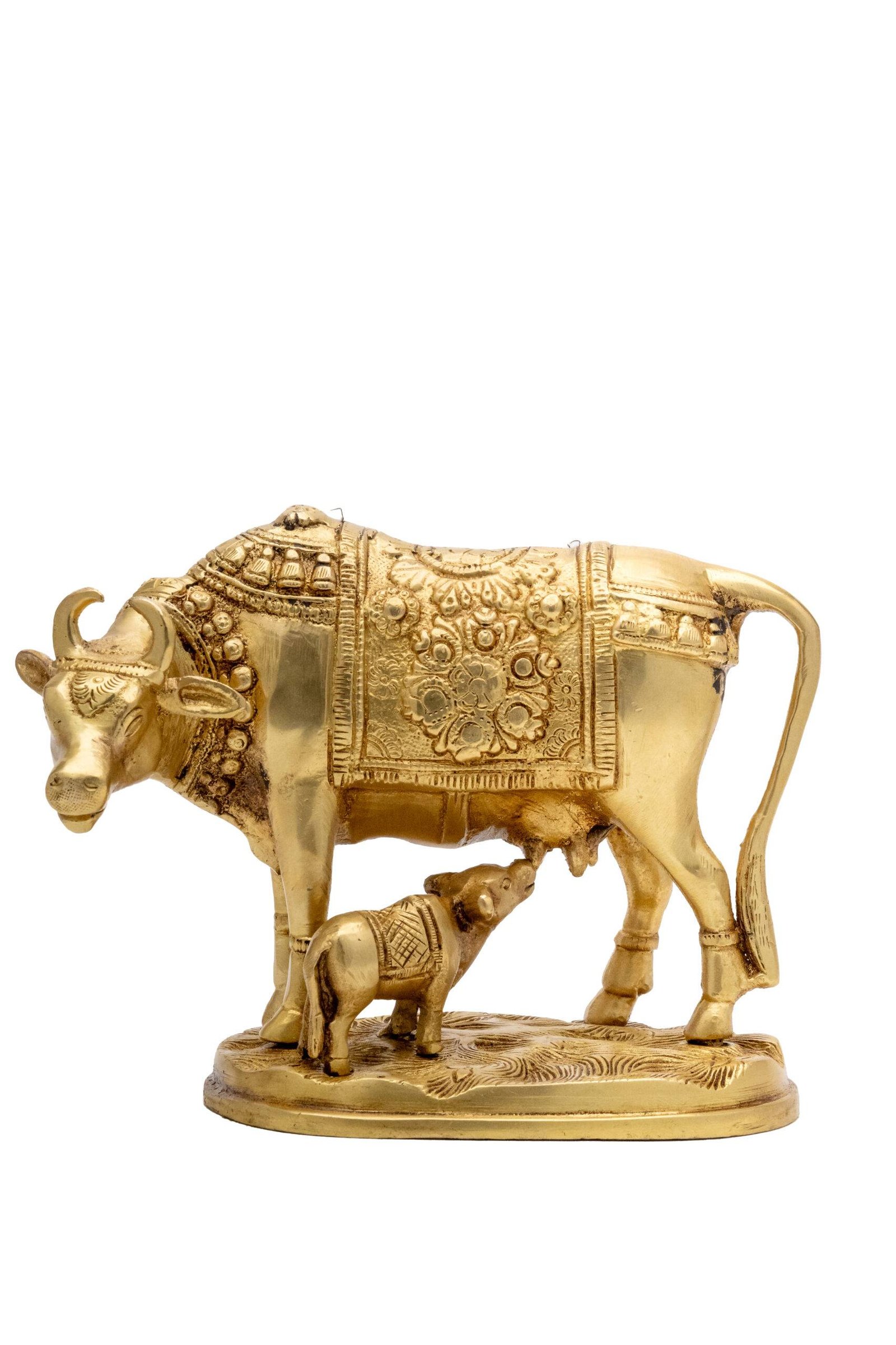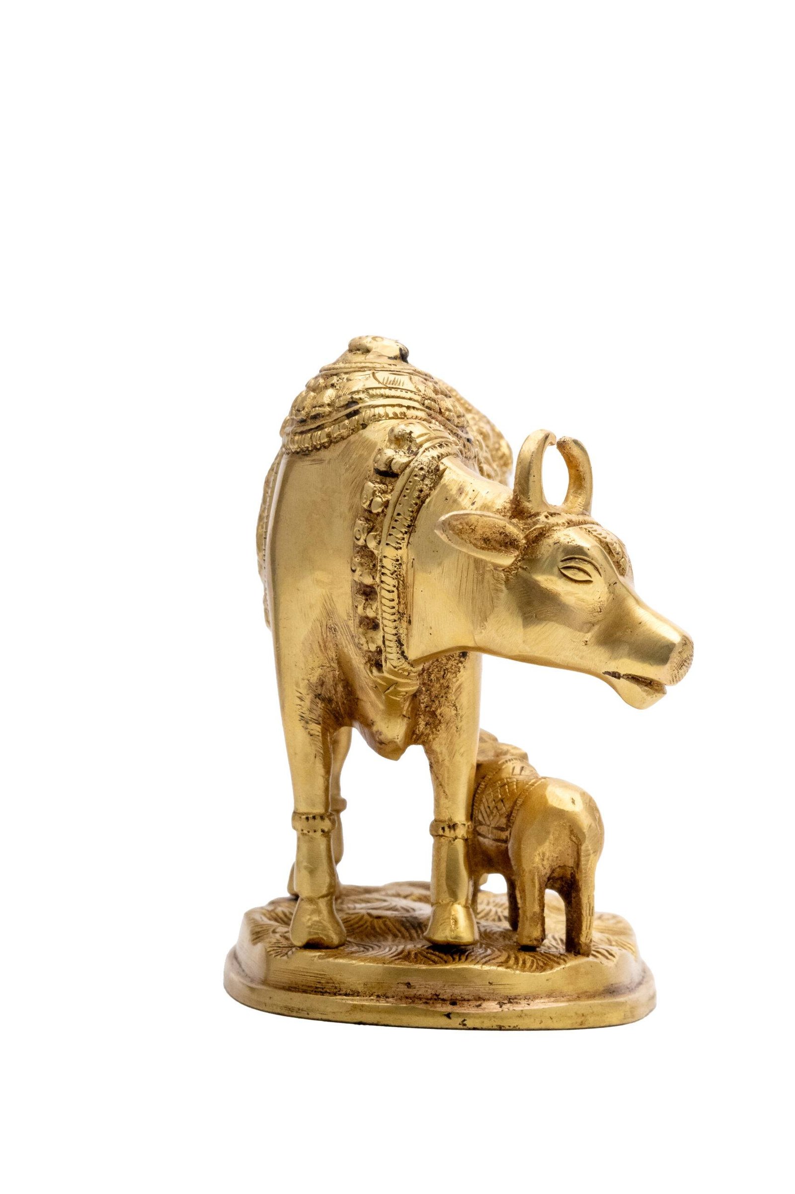 Displaying an idol of the holy cow with a calf in your home serves as a constant reminder of divine abundance, maternal care, and spiritual purity, enriching the environment with positive and nurturing energy.
