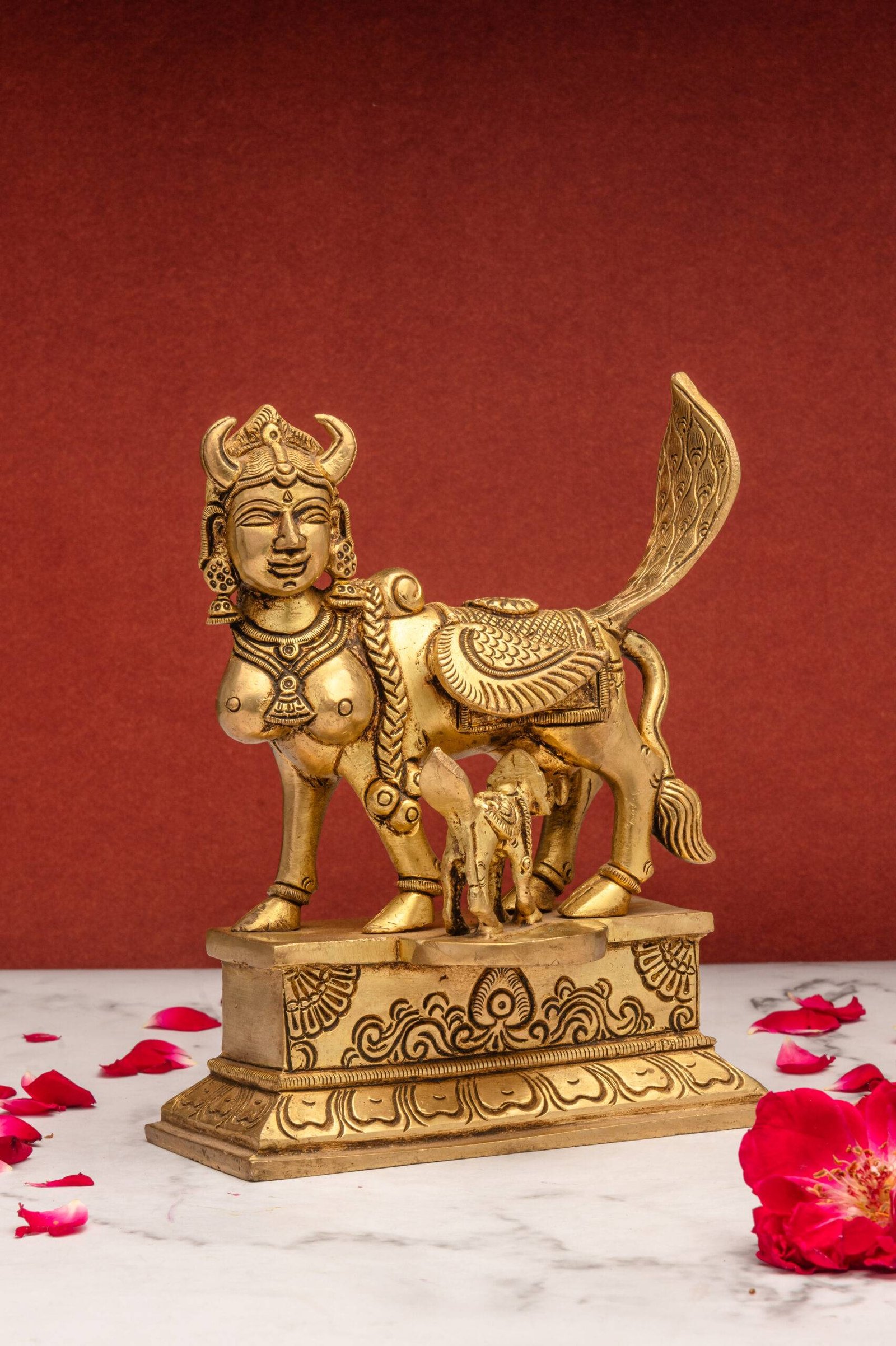 • Good Health: The cow is considered a symbol of purity and nourishment. Keeping her idol is believed to promote good health and well-being.