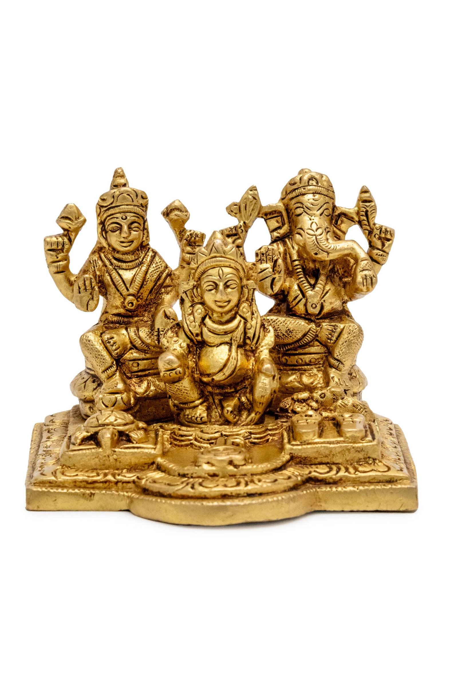 This unique and auspicious idol is a powerful combination of several revered deities and symbols in Hinduism, each representing wealth, prosperity, wisdom, and stability. The idol typically features: