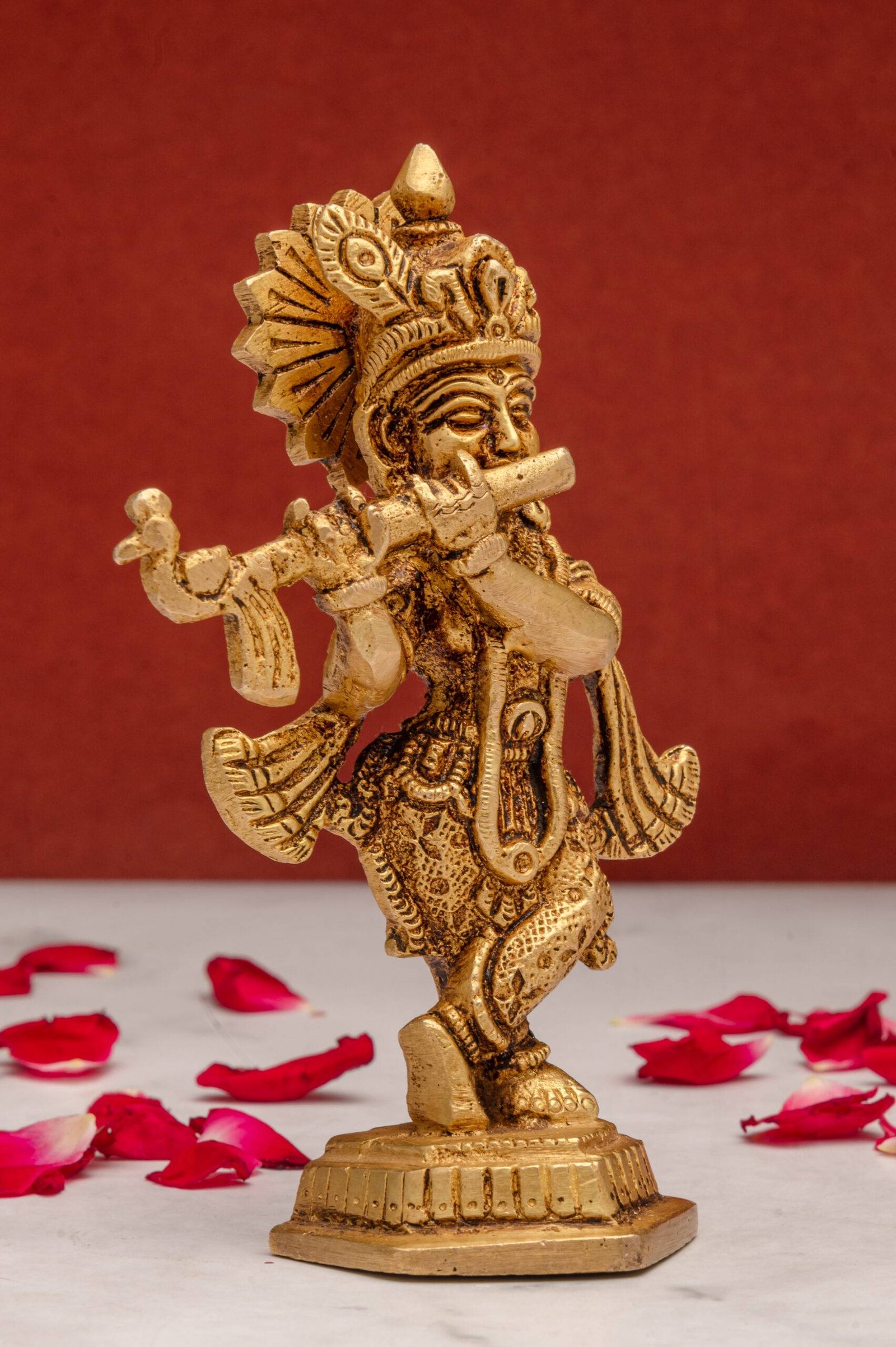 Superfine Brass Krishna Idol Playing Flute – 5 Inch