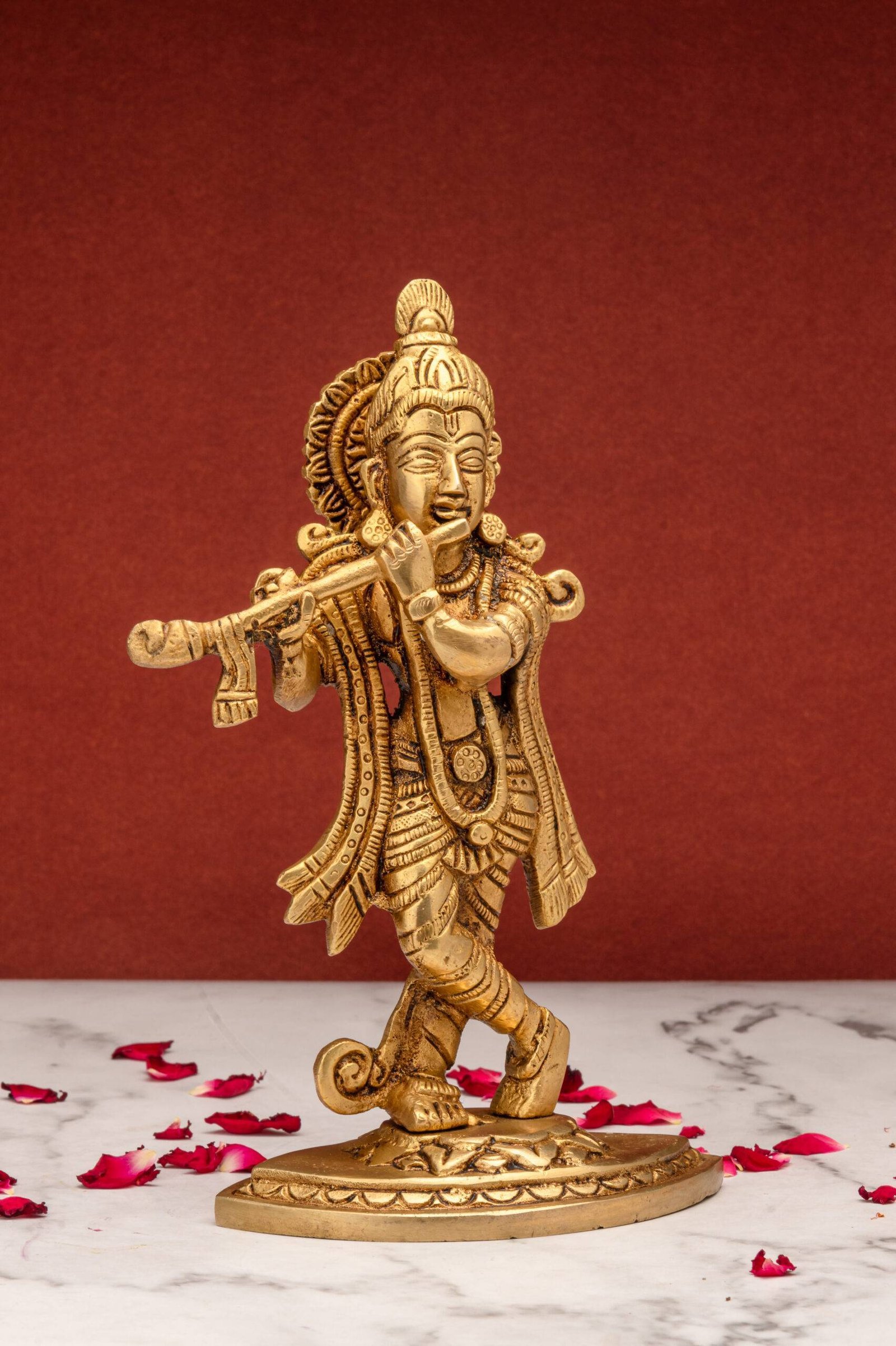 1. Spiritual Serenity: The presence of Lord Krishna’s idol playing the flute can infuse your space with divine tranquility, helping to create a serene and peaceful environment.
