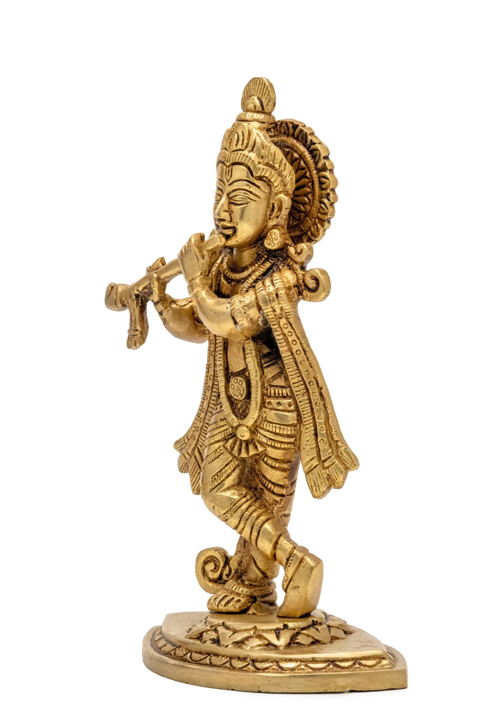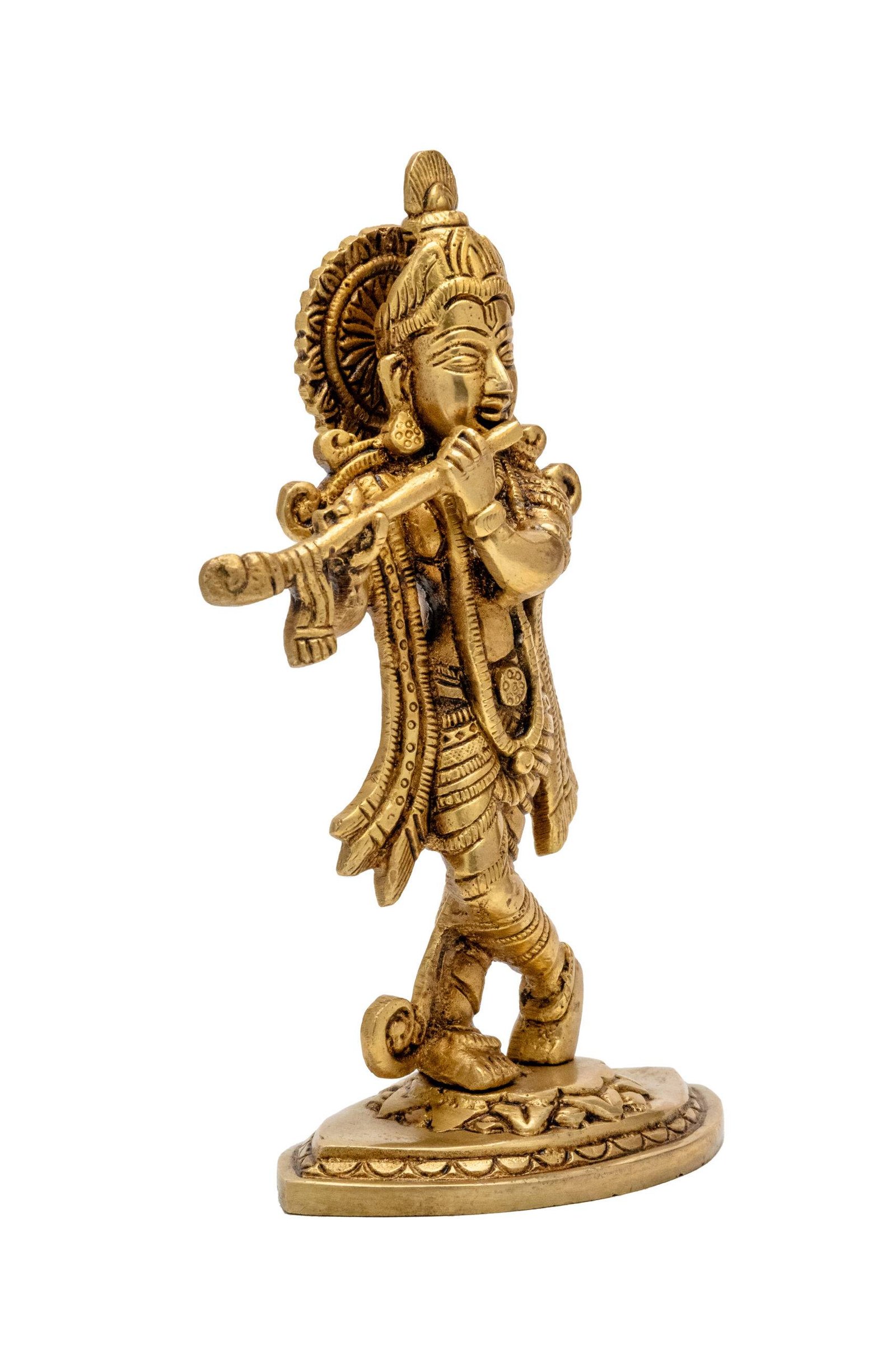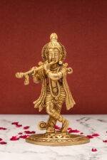 Superfine Brass KrishnaIdol Playing Flute – 7.5 Inch