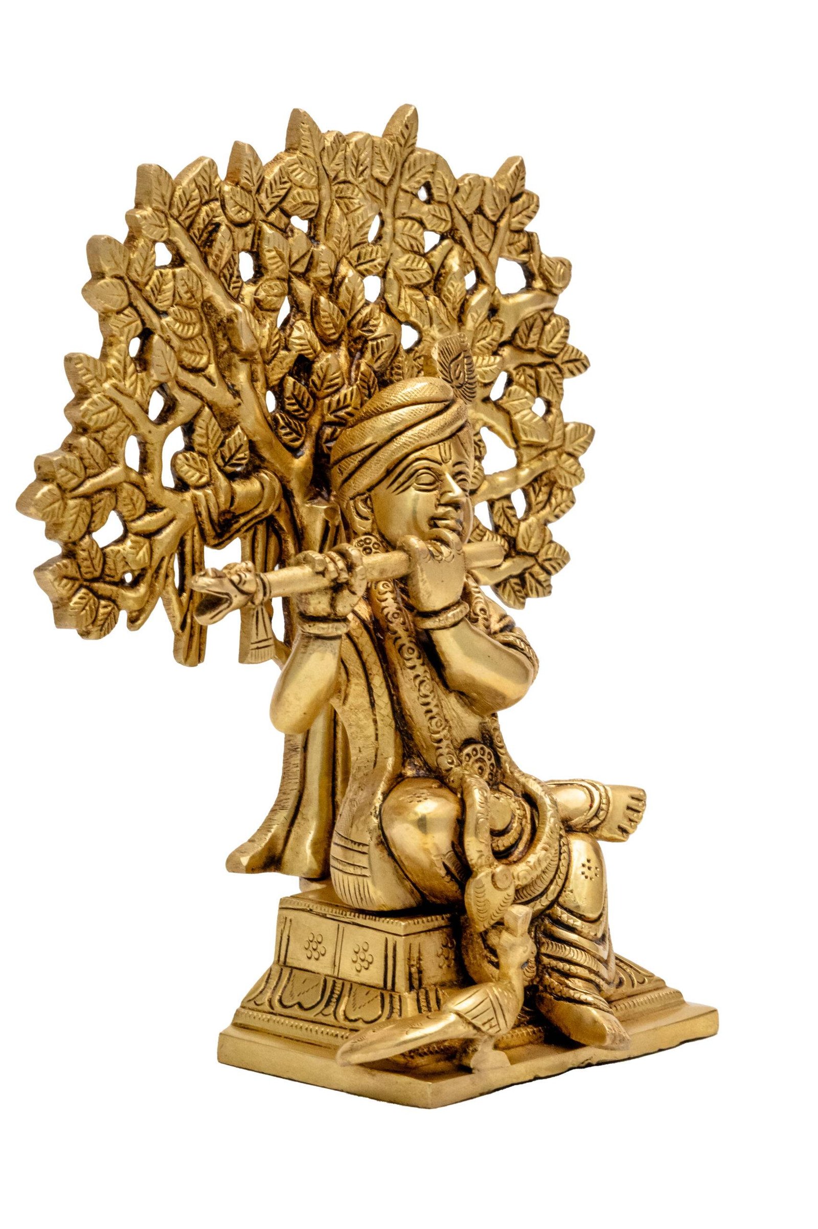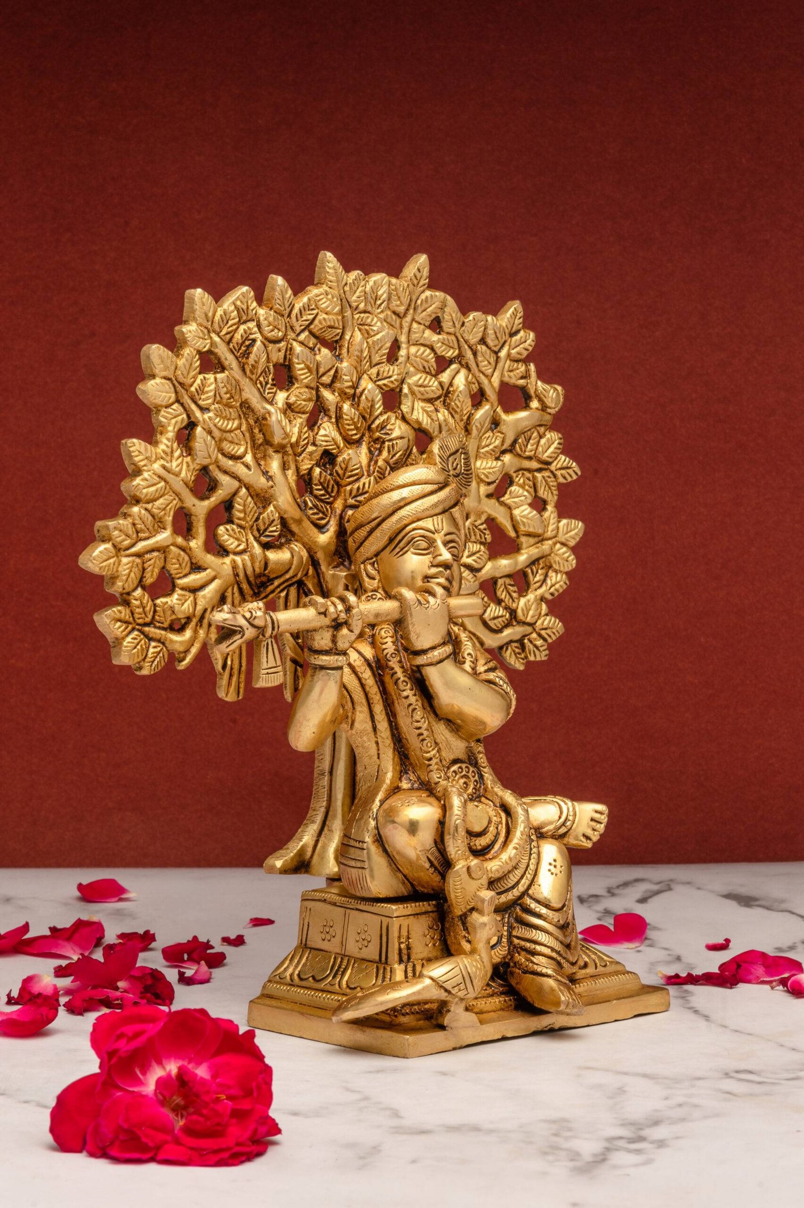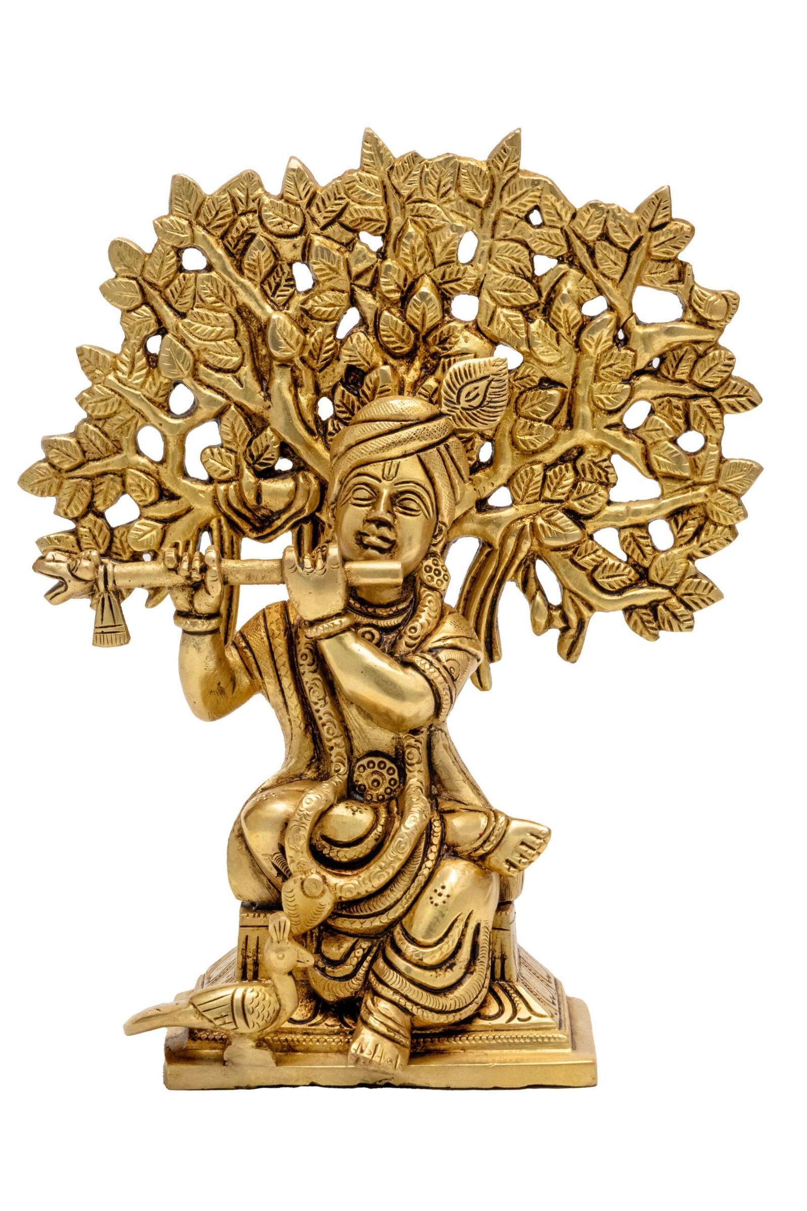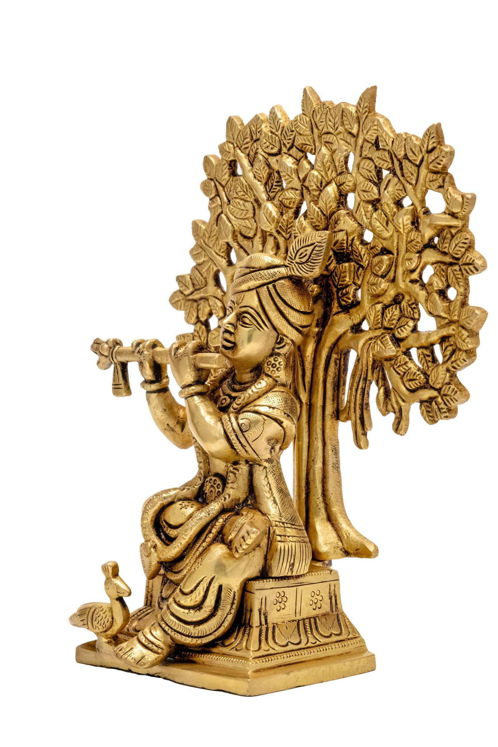 Bring the Brass Superfine Lord Krishna Idol Playing Flute Under Sacred Tree into your home or office to invite divine blessings, tranquility, and a harmonious energy that nurtures success, happiness, and spiritual well-being.
