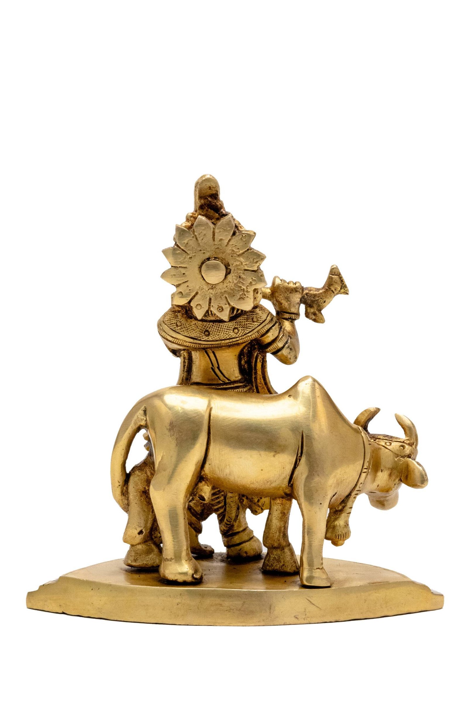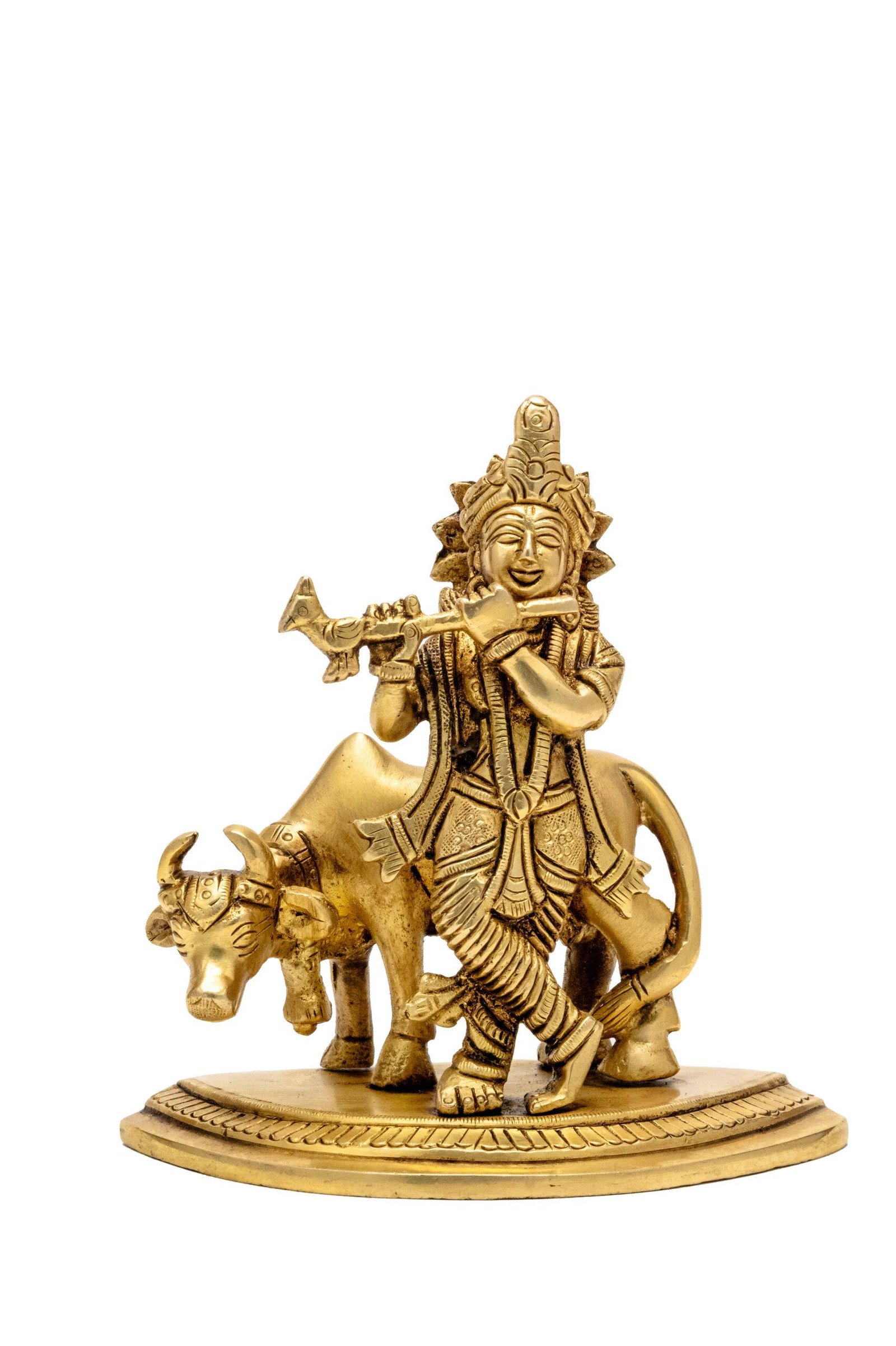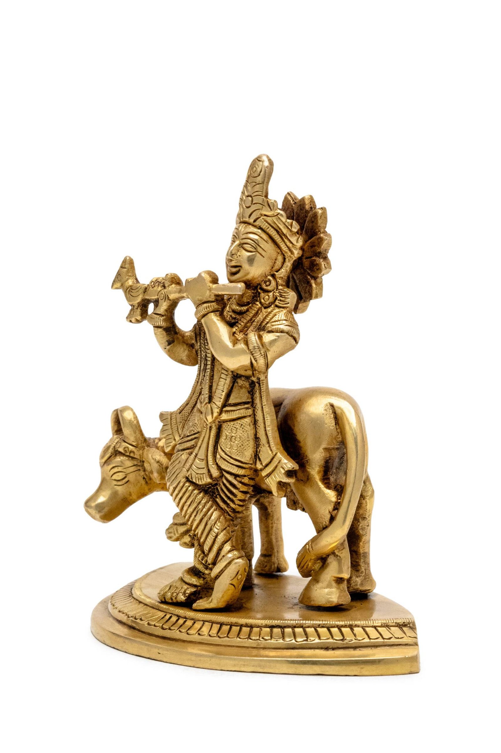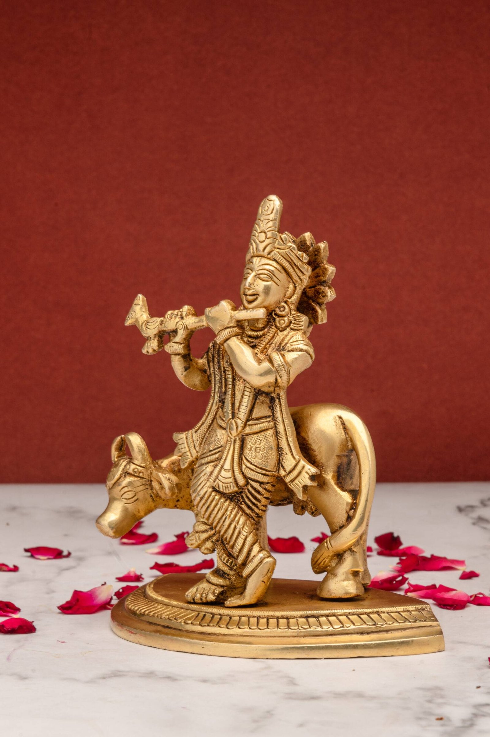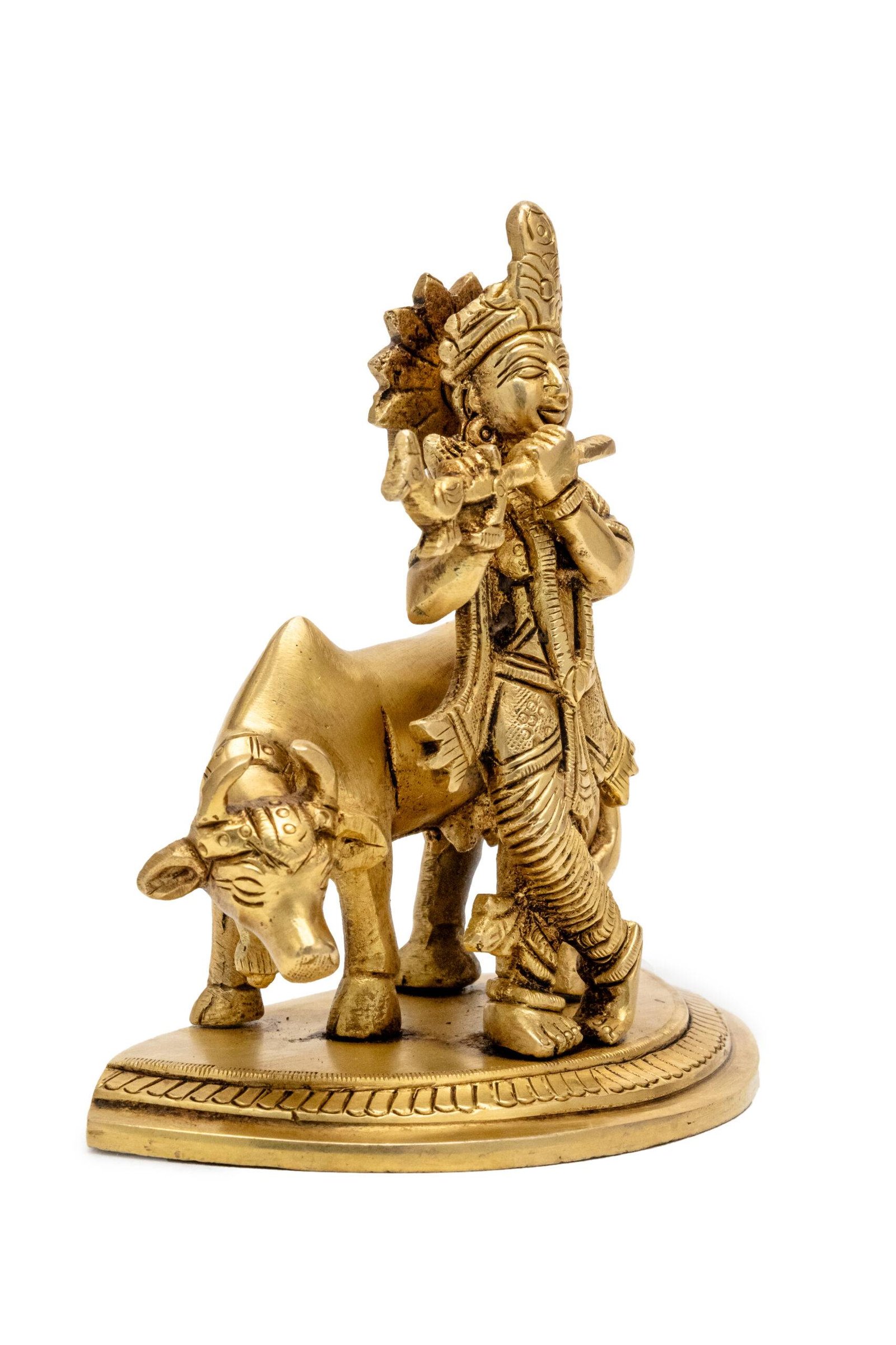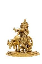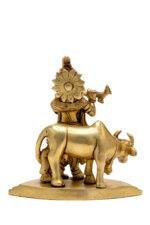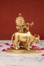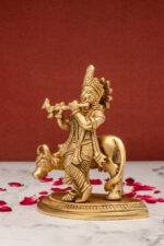 Superfine Brass Krishna Idol with Cow Playing Flute – 5.5 Inch