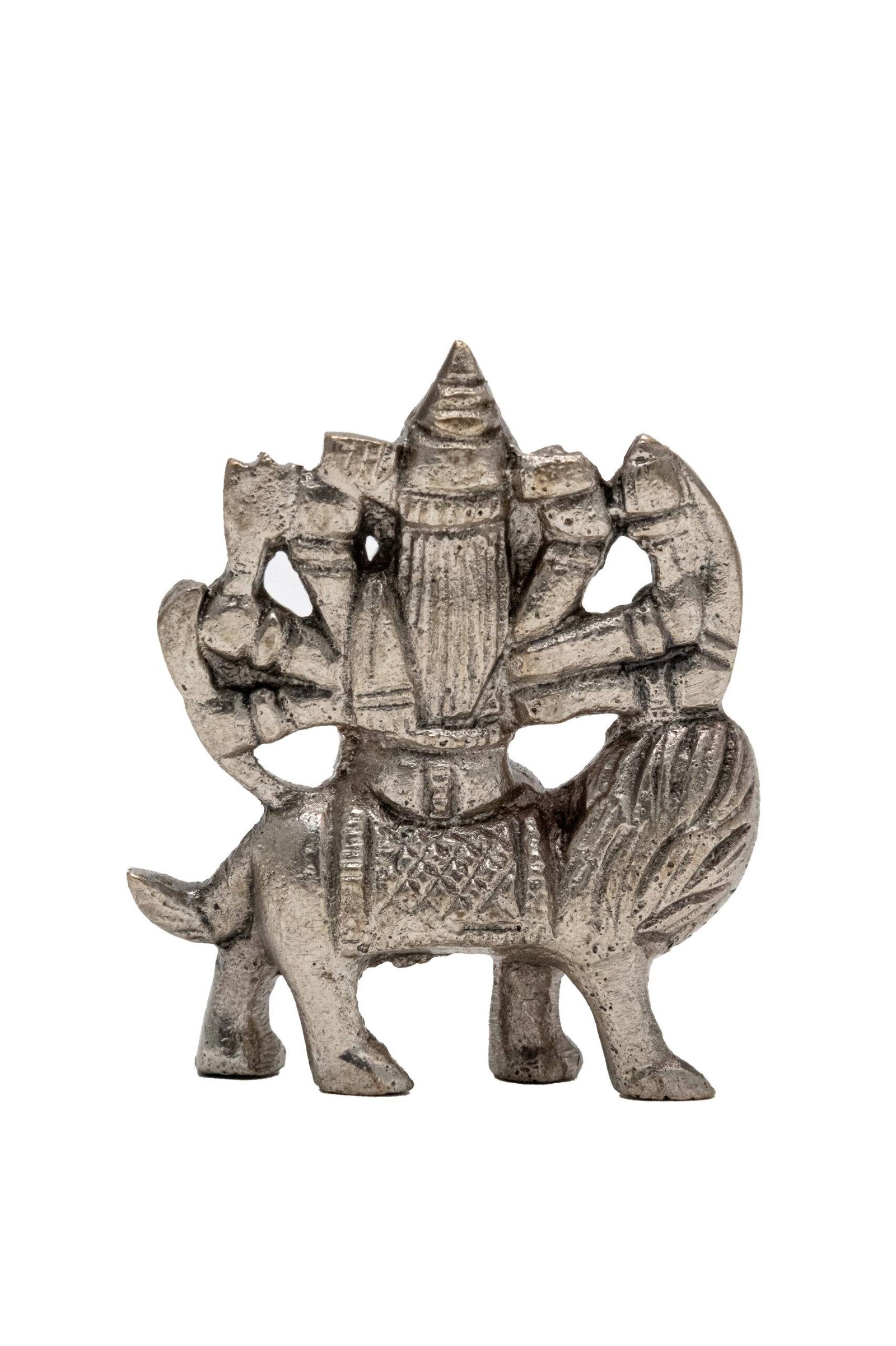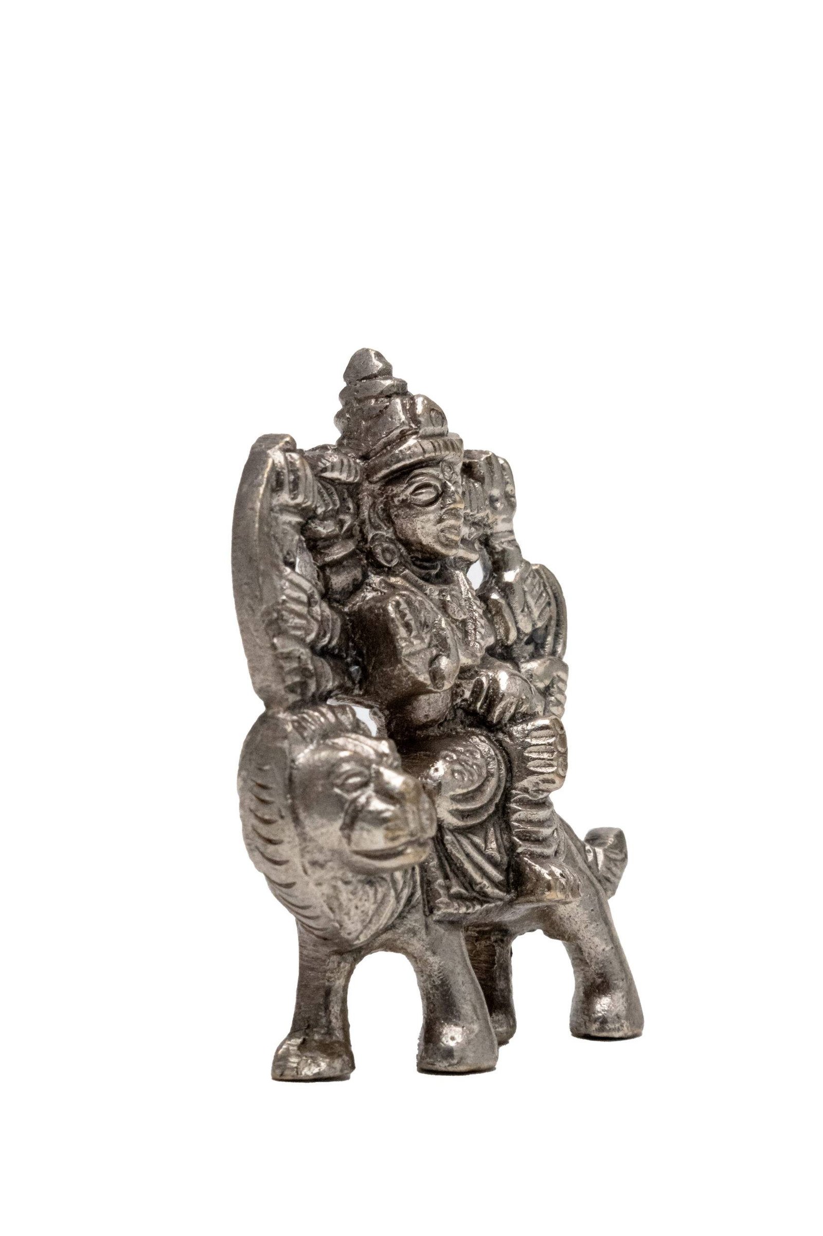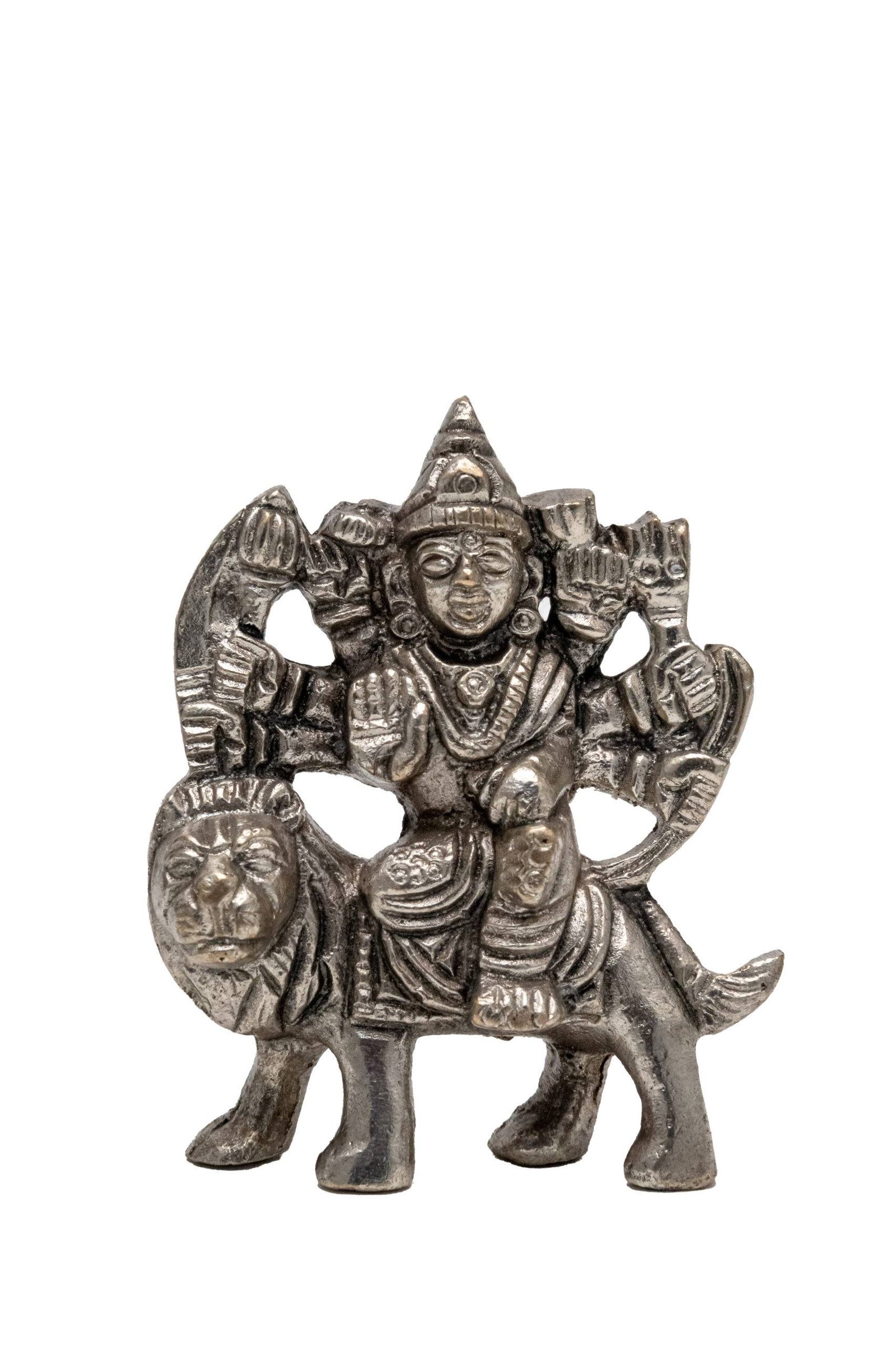 Brass Superfine Ma Durga Idol on Lion – Ashtabhuja – Silver Coated – 2.5 Inch