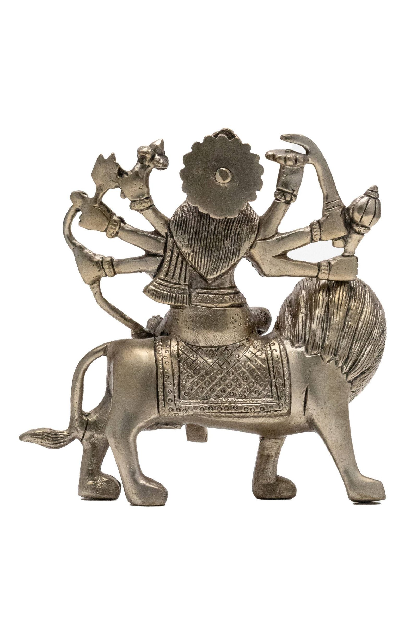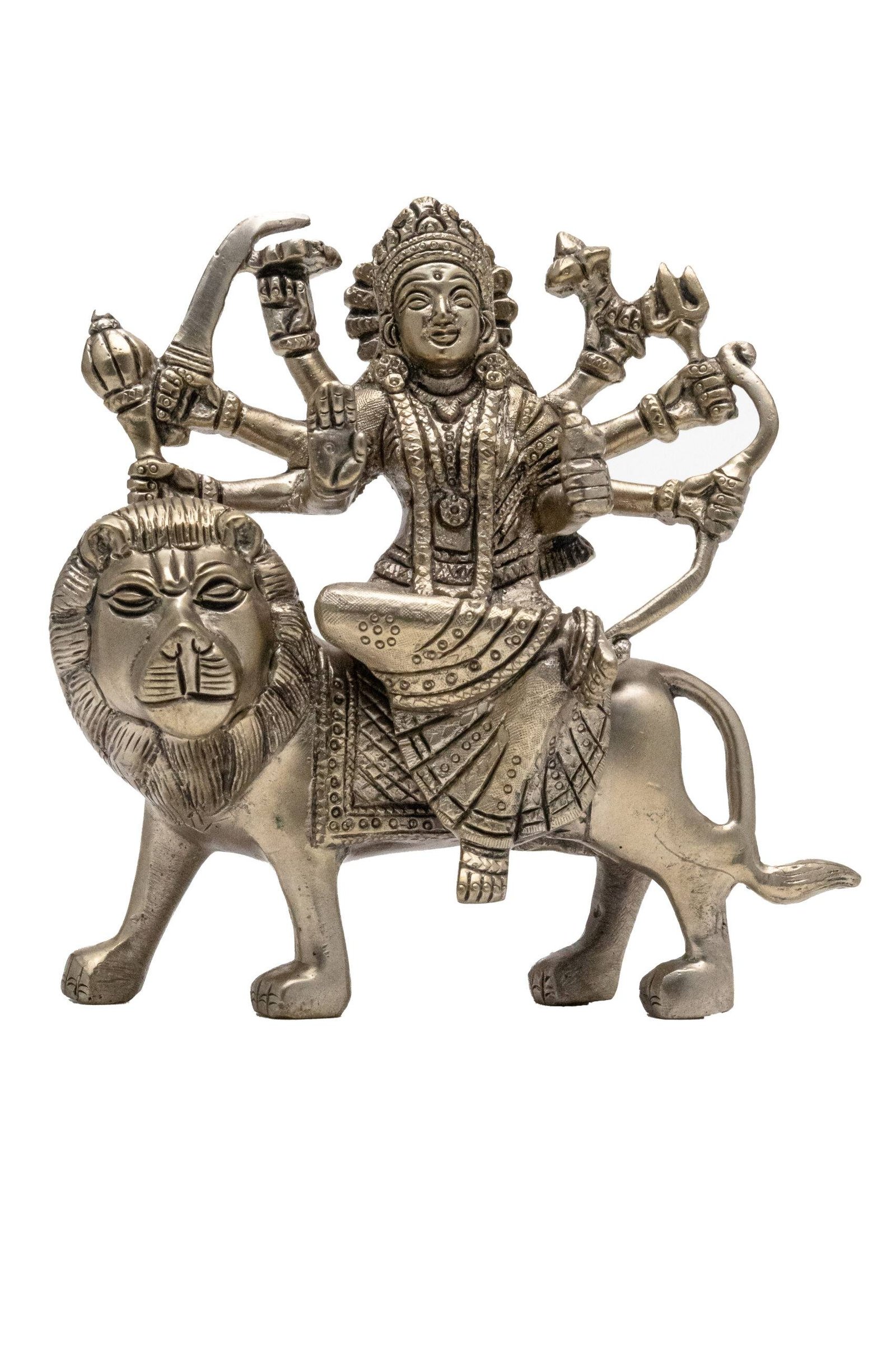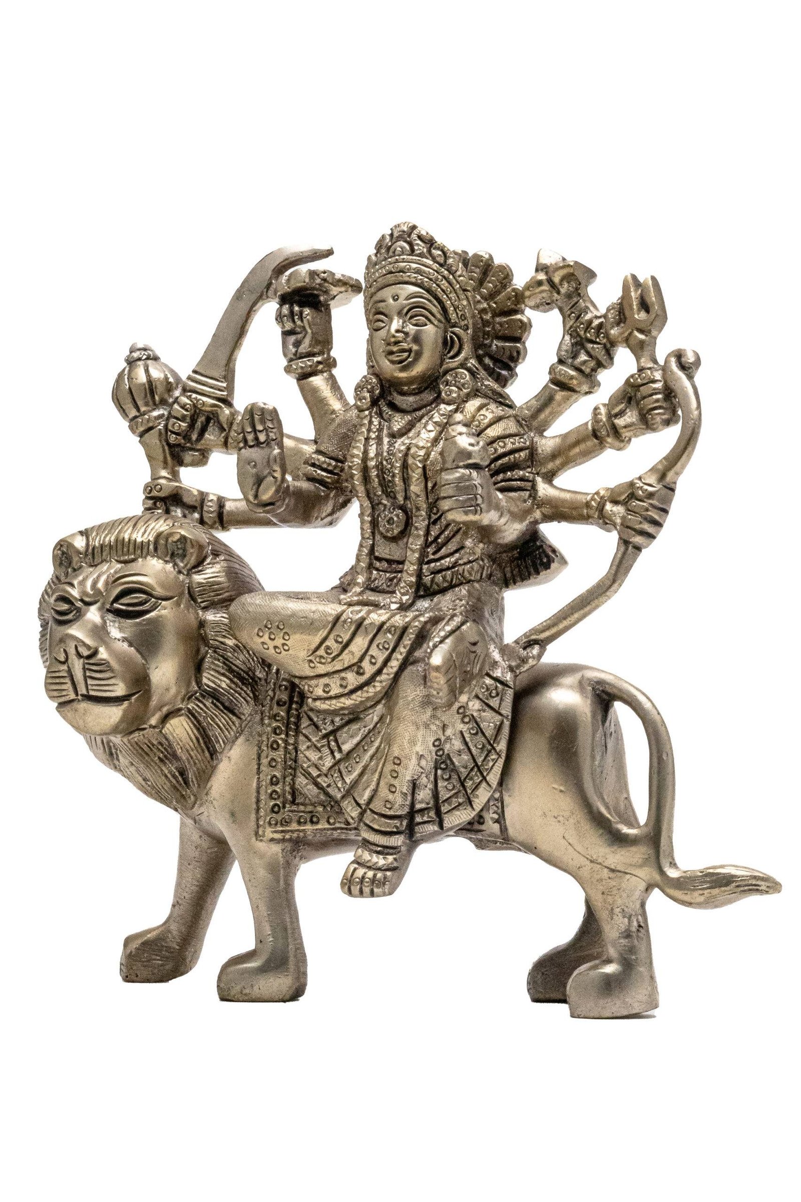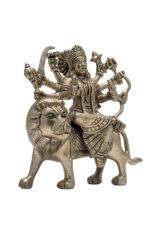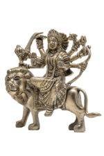 Brass Superfine Ma Durga Idol on Lion – Ashtabhuja – Silver Coated – 5.70 Inch