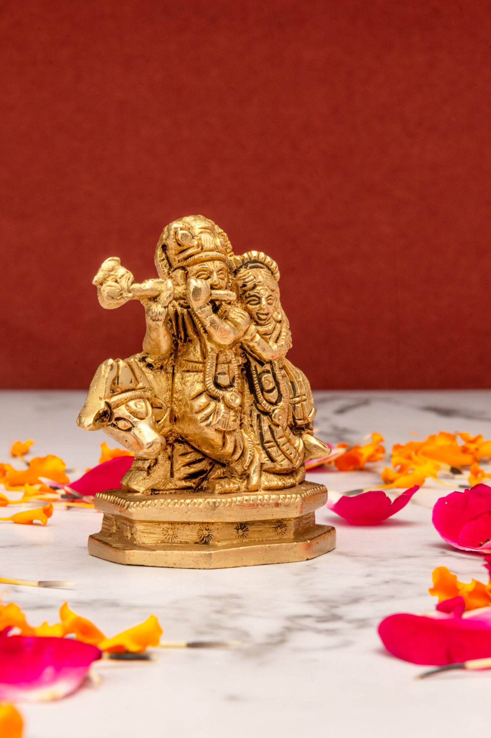 Whether in your home or workplace, the Brass Superfine Radha Krishna Idol with Cow is a perfect blend of aesthetics and spirituality, bringing divine blessings, harmony, and success to your surroundings.