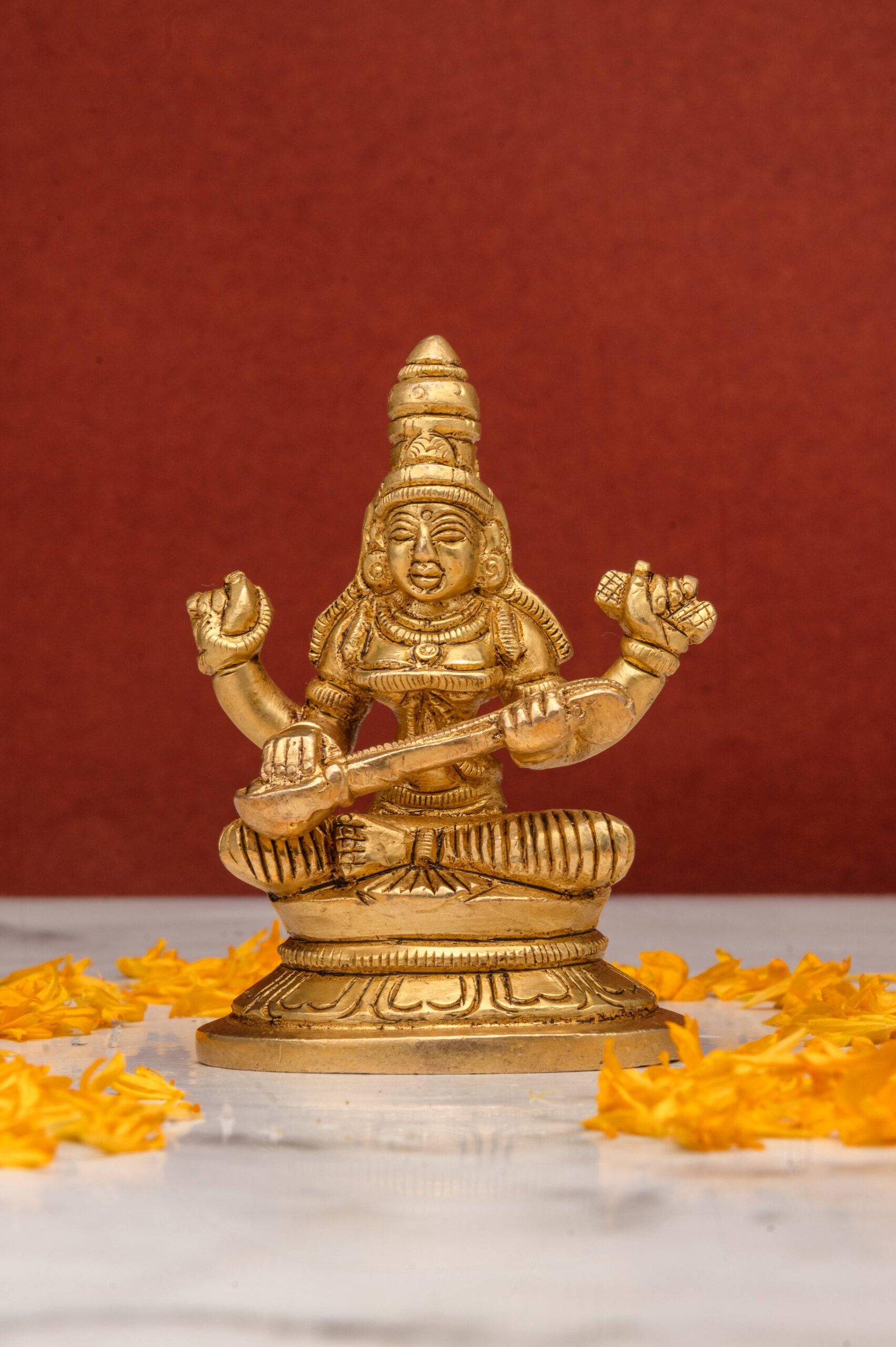 4. Purity and Focus: The goddess’s serene form radiates purity and encourages focus and discipline, making this idol perfect for study areas, workplaces, or meditation spaces.