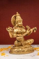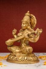 Brass Superfine Saraswati Idol – Detailed Carving – 10.5 Inch