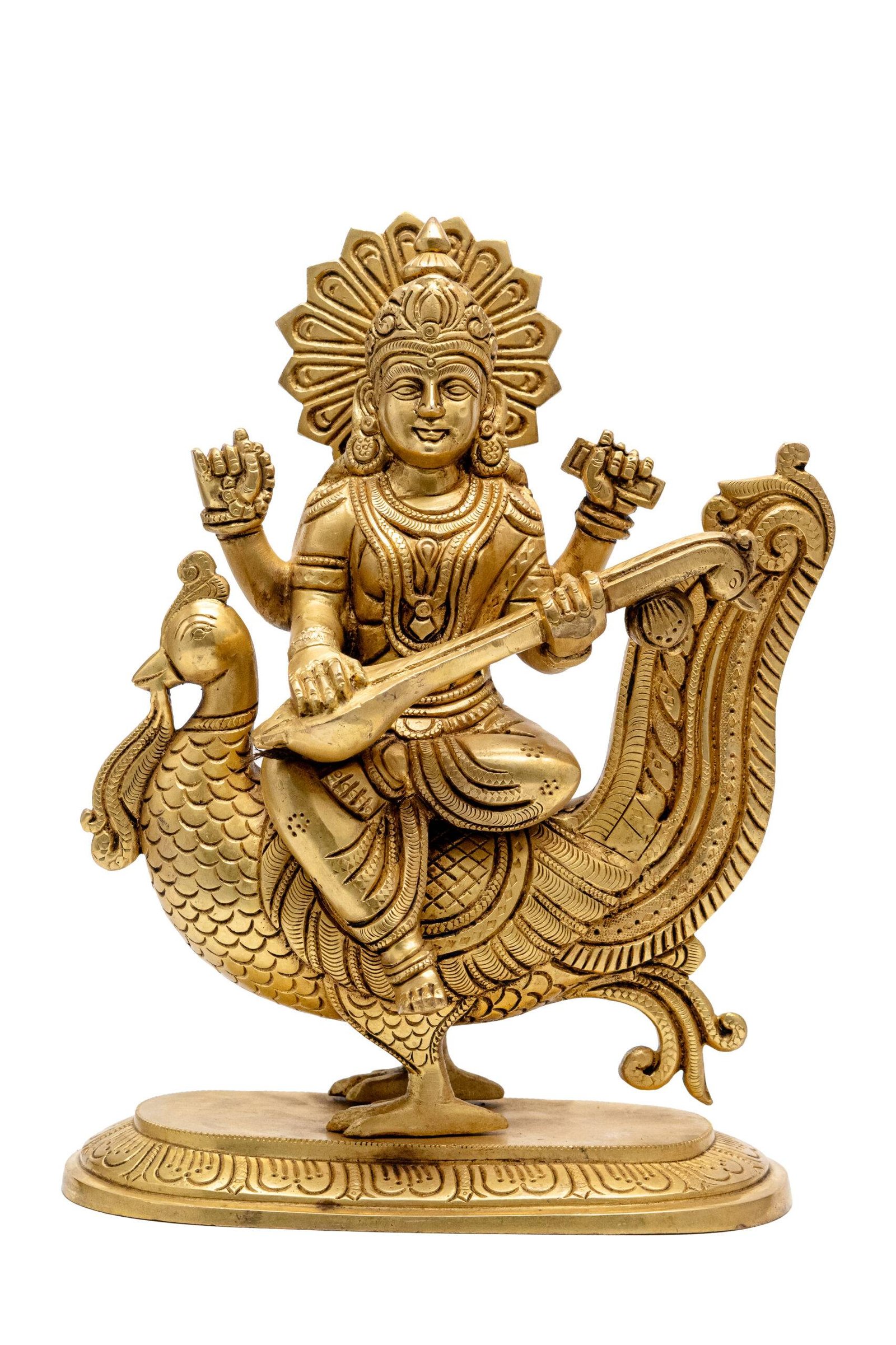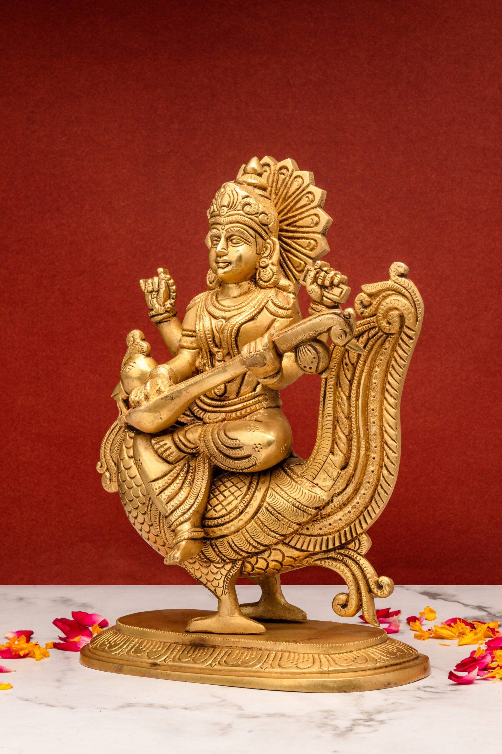 Significance of Keeping the Brass Superfine Saraswati Idol – On Swan