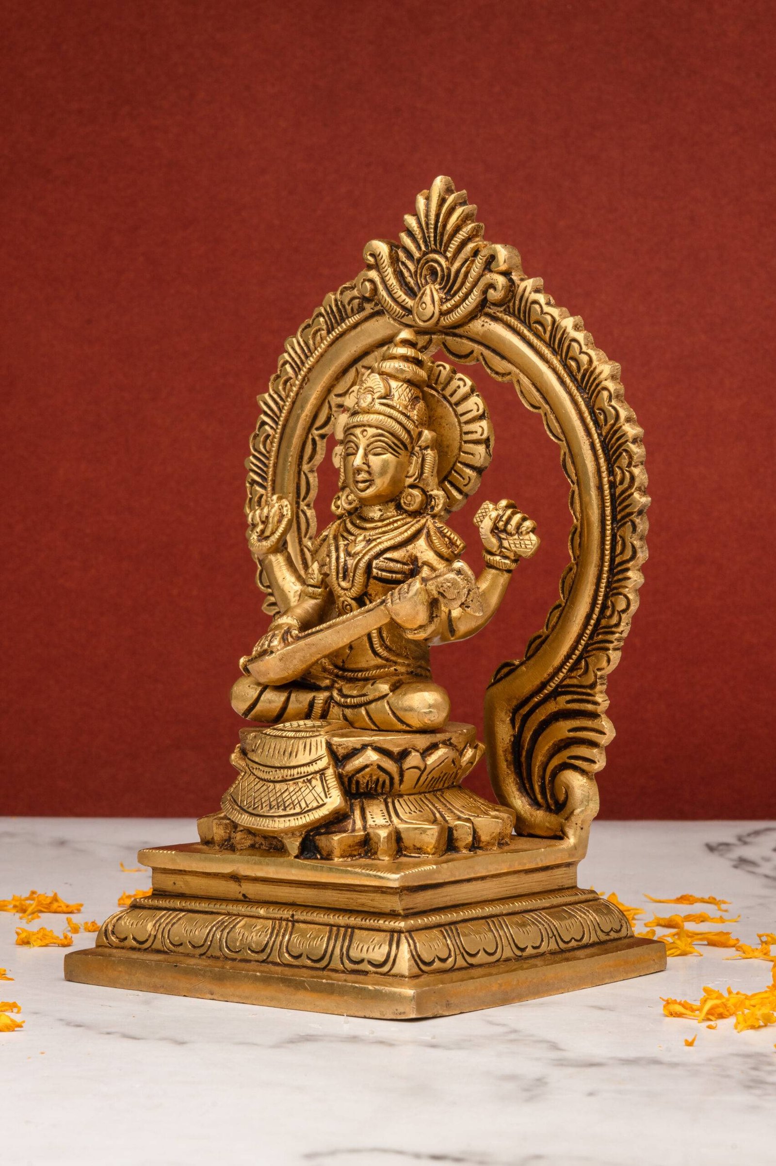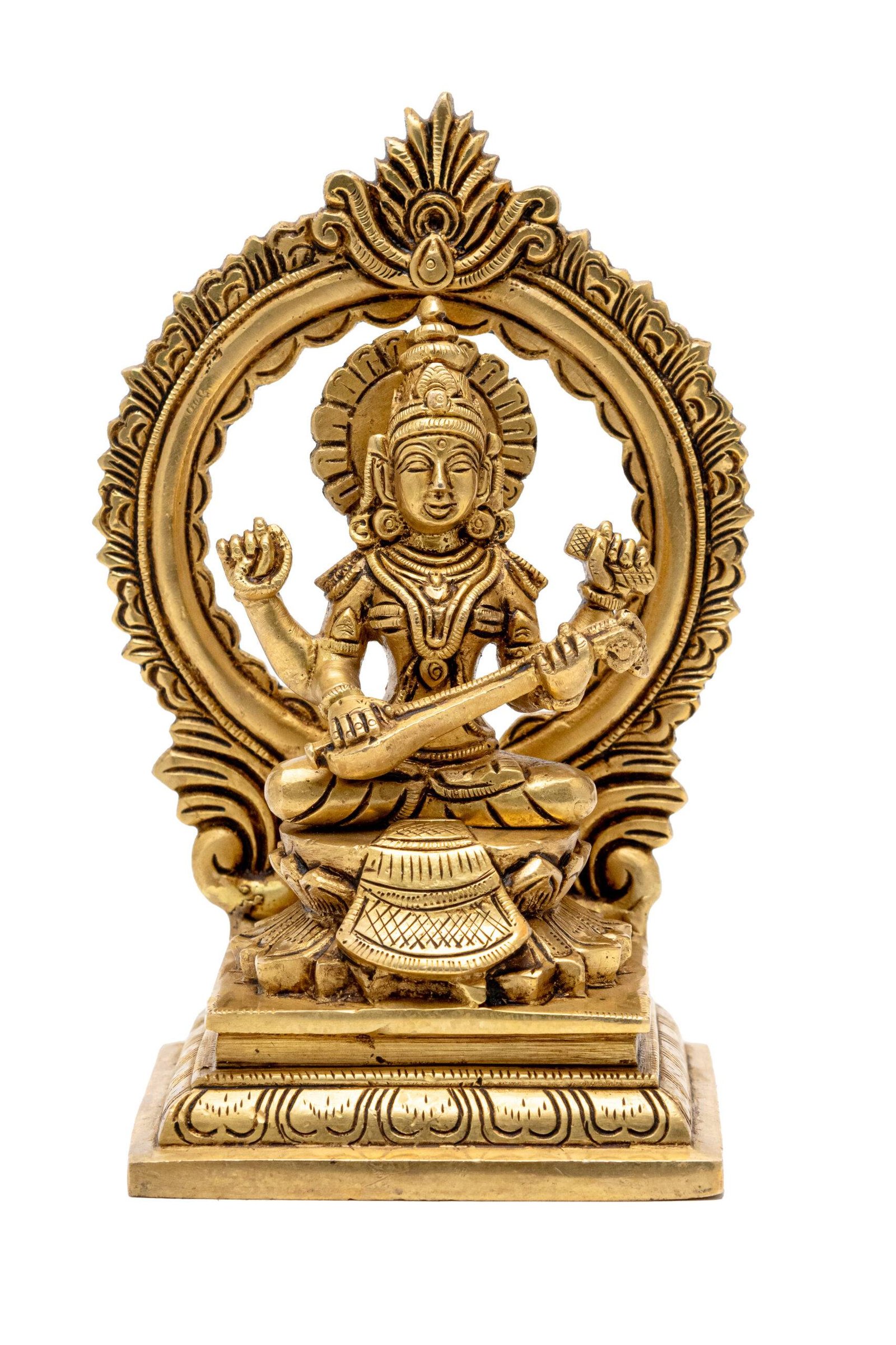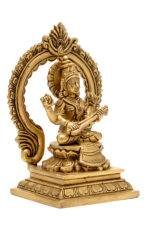 Brass Superfine Saraswati Idol – With Frame – 7 Inch
