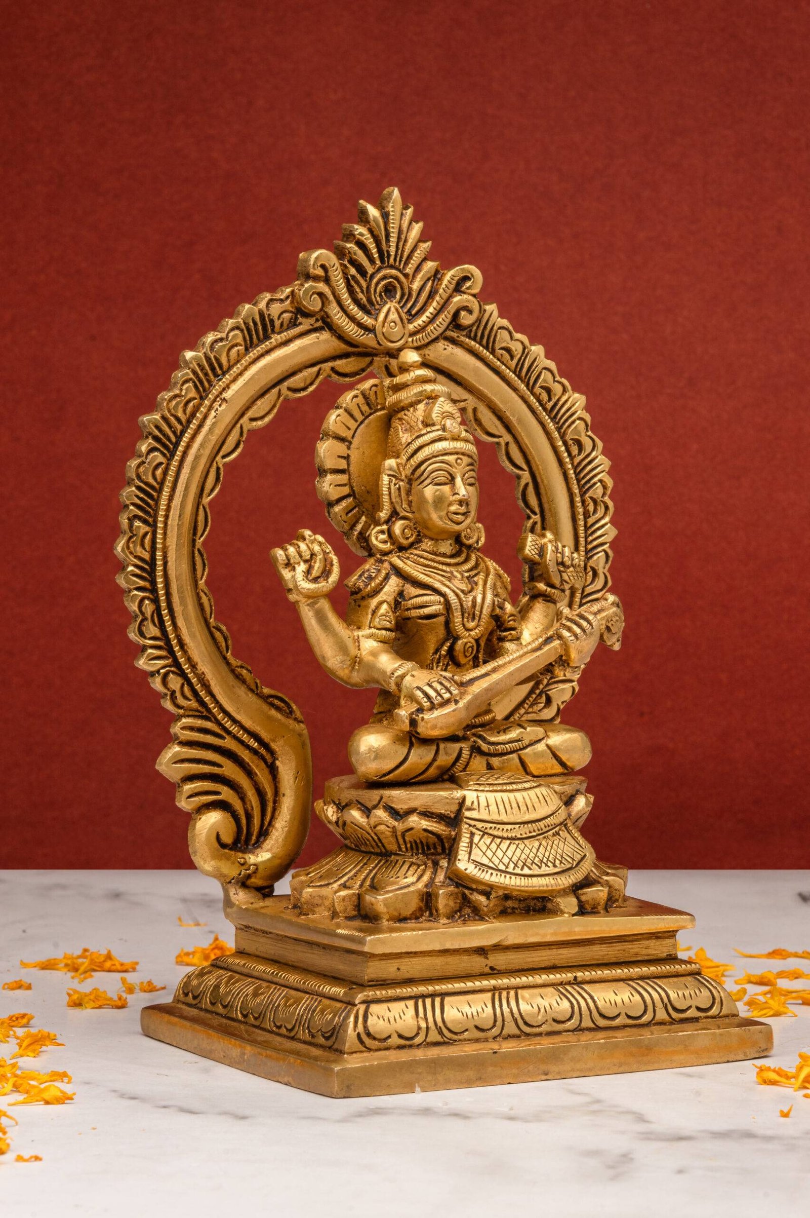 4. Purity and Focus: The goddess’s serene form radiates purity and encourages focus and discipline, making this idol perfect for study areas, workplaces, or meditation spaces.