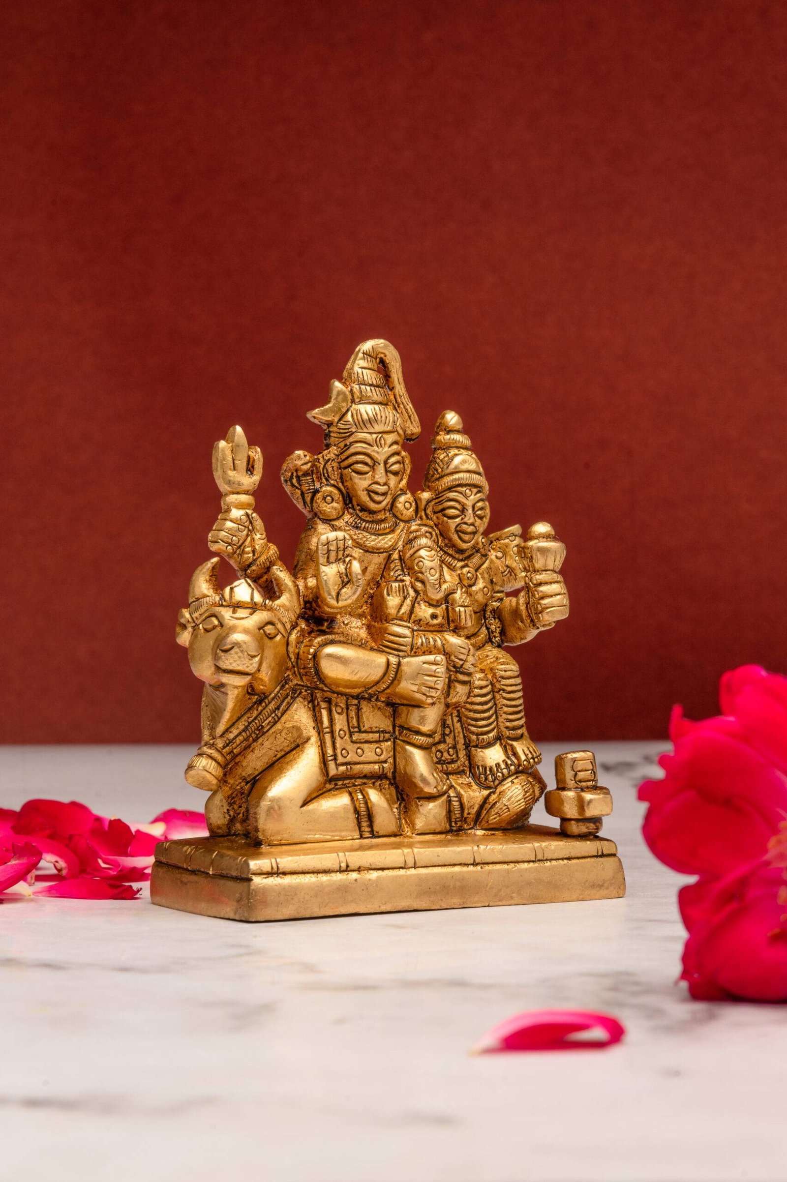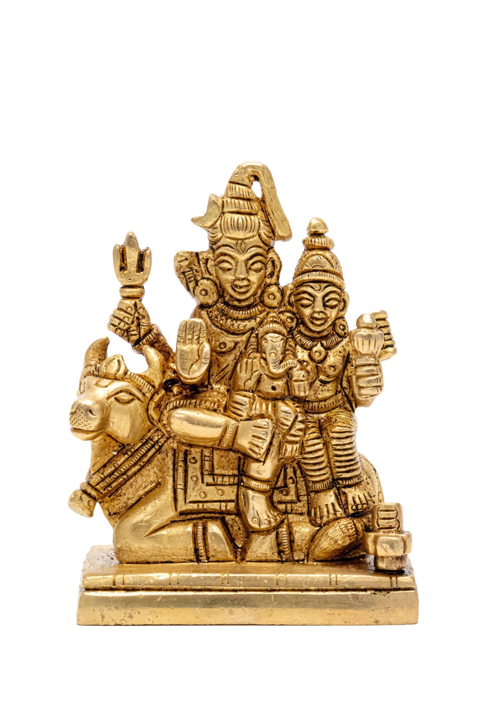 Superfine Brass Shiv Parivar Idol with Ganesha on Nandi – 3.5 Inch