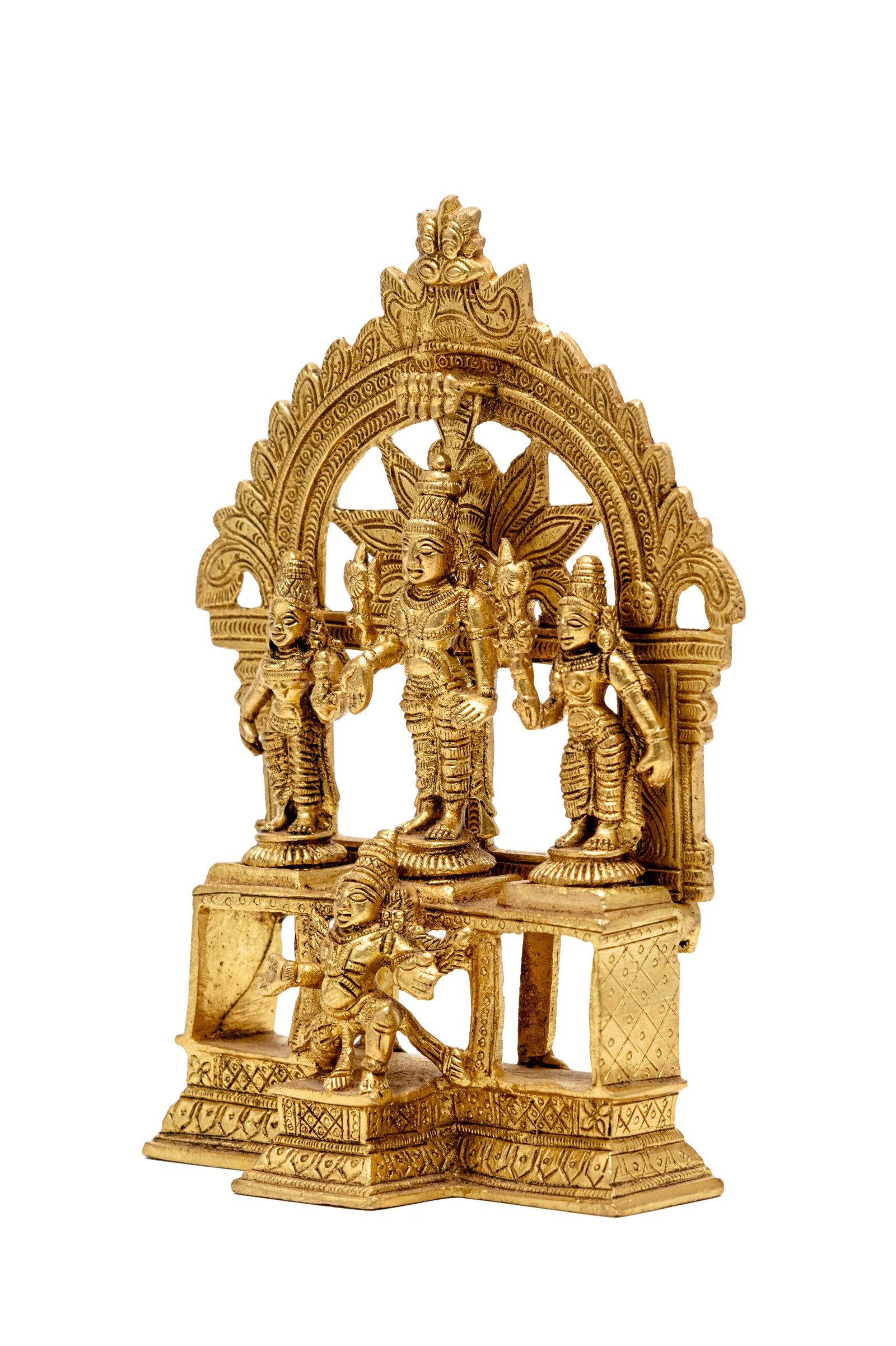 Placing the Brass Superfine Vishnu Idol with Sri Devi and Bhu Devi on Garuda in your home or office creates an aura of divine blessings, ensuring prosperity, protection, and spiritual enlightenment. It serves as a symbol of balance, devotion, and the triumph of good over evil.