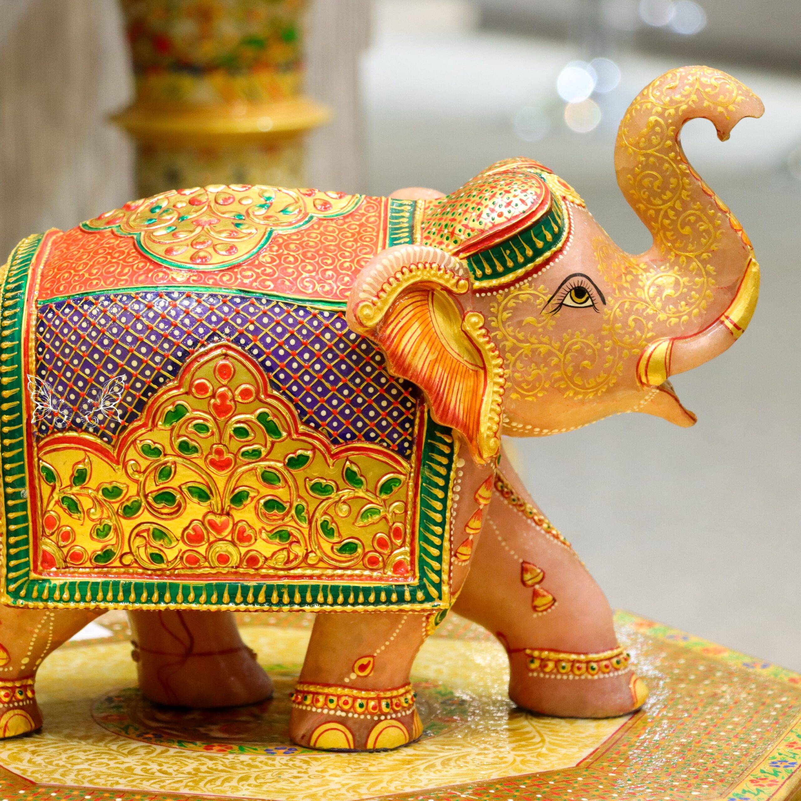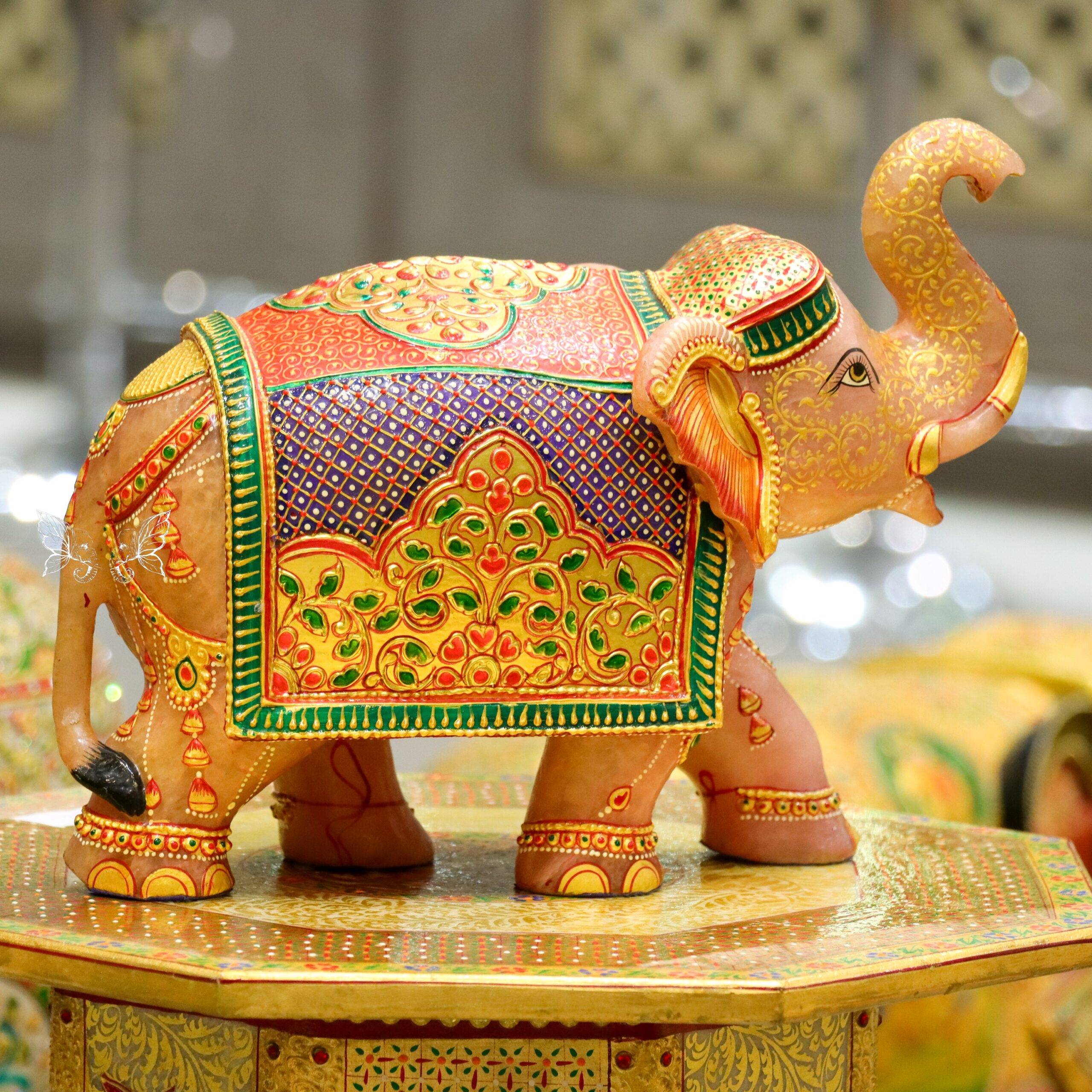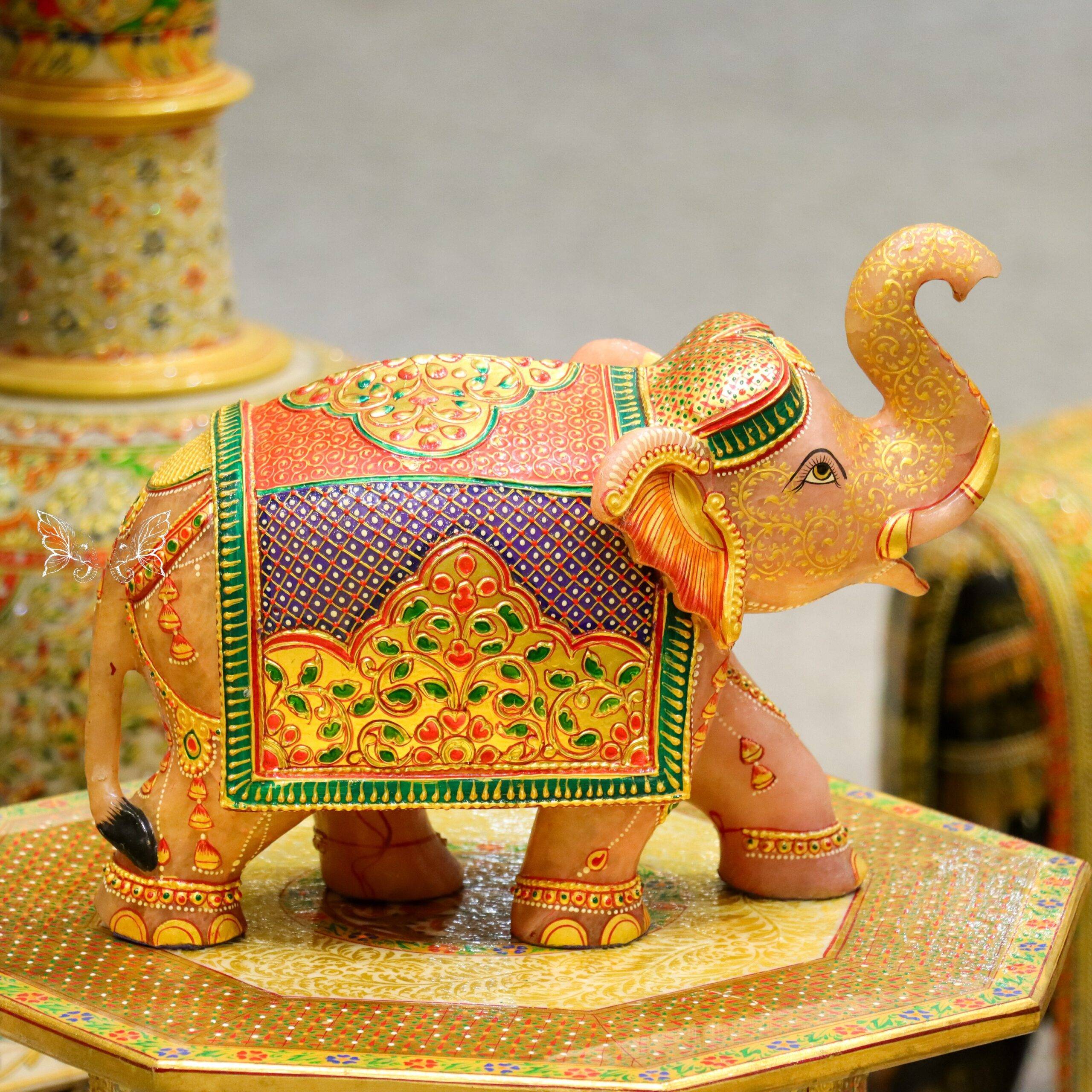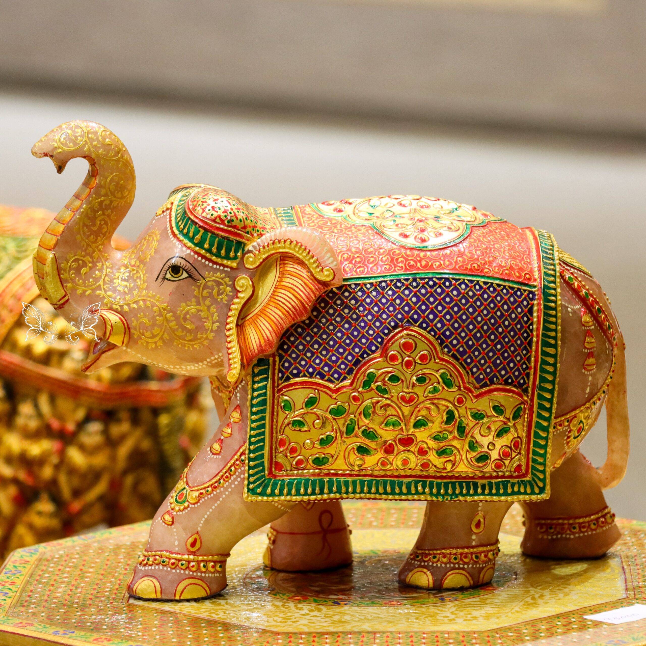 Nari Kunjar Elephant Sculpture – Marble Dust with Hand-Painted Miniature Art