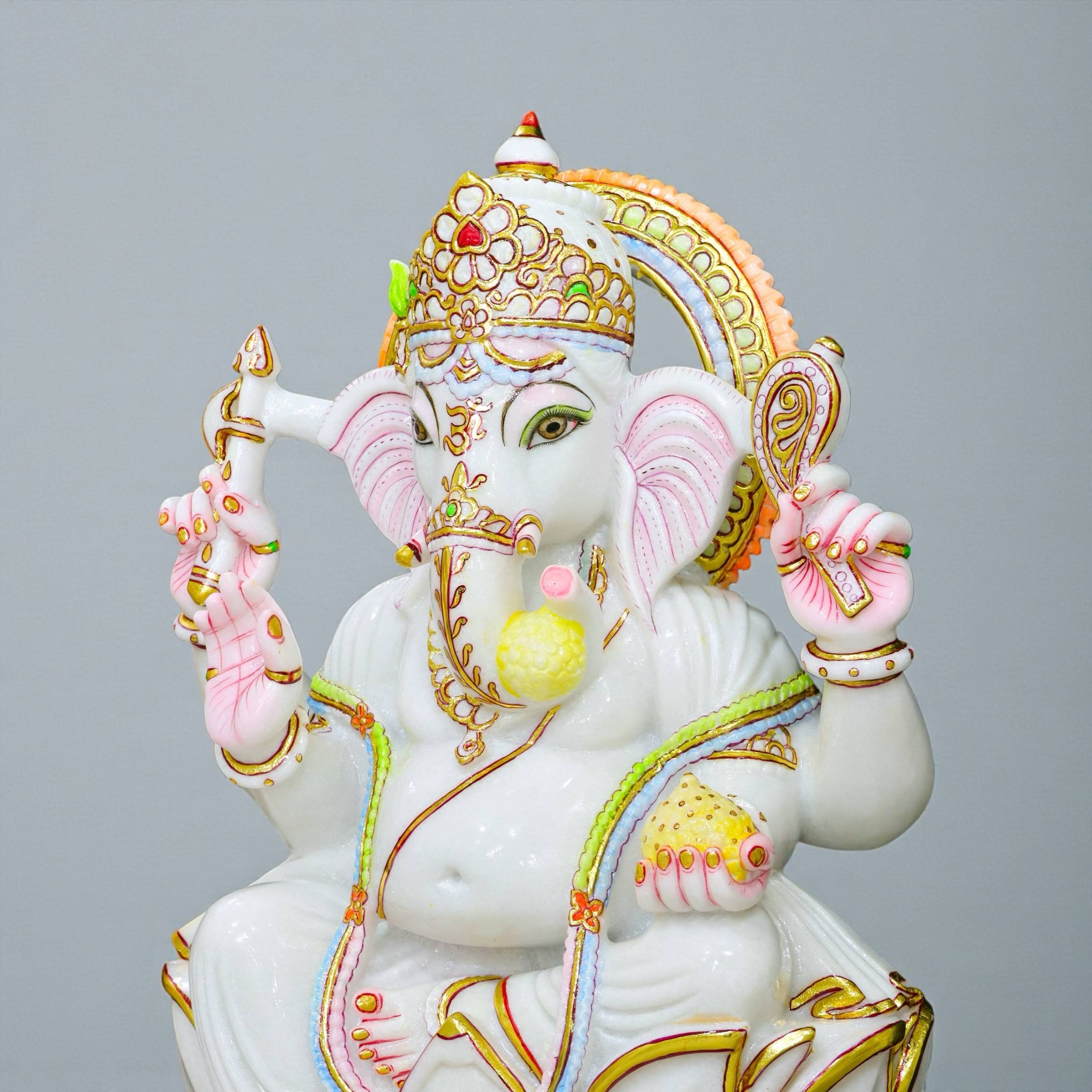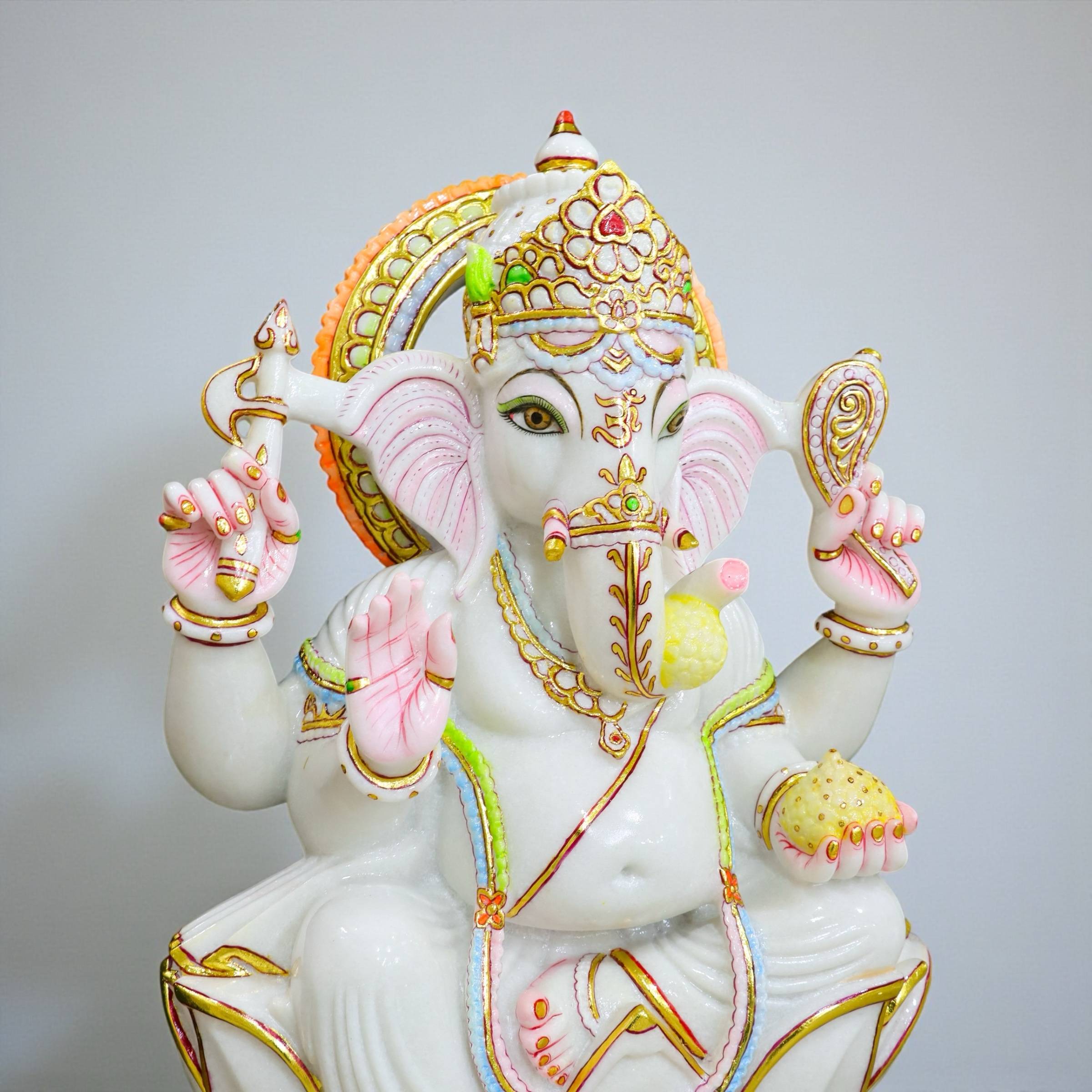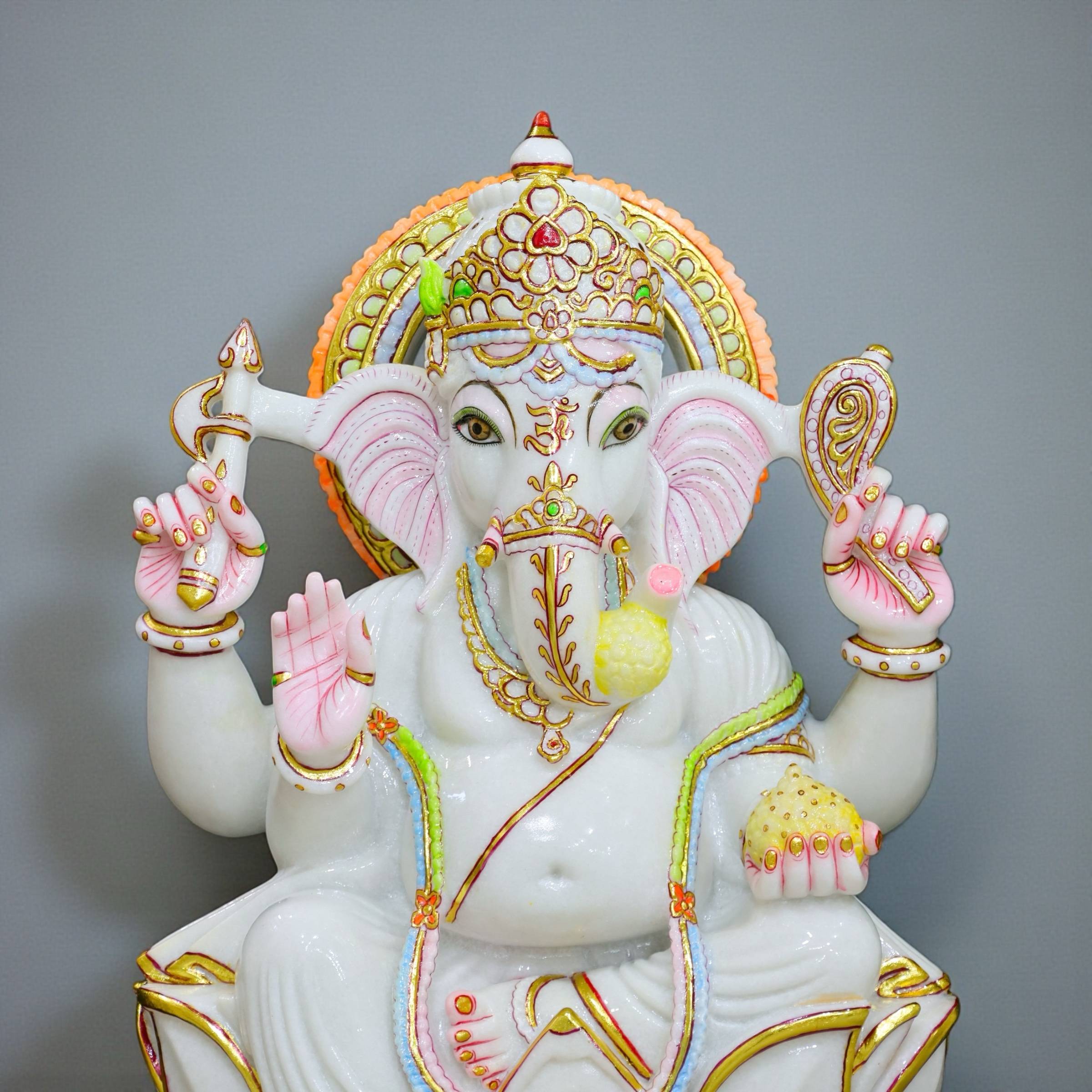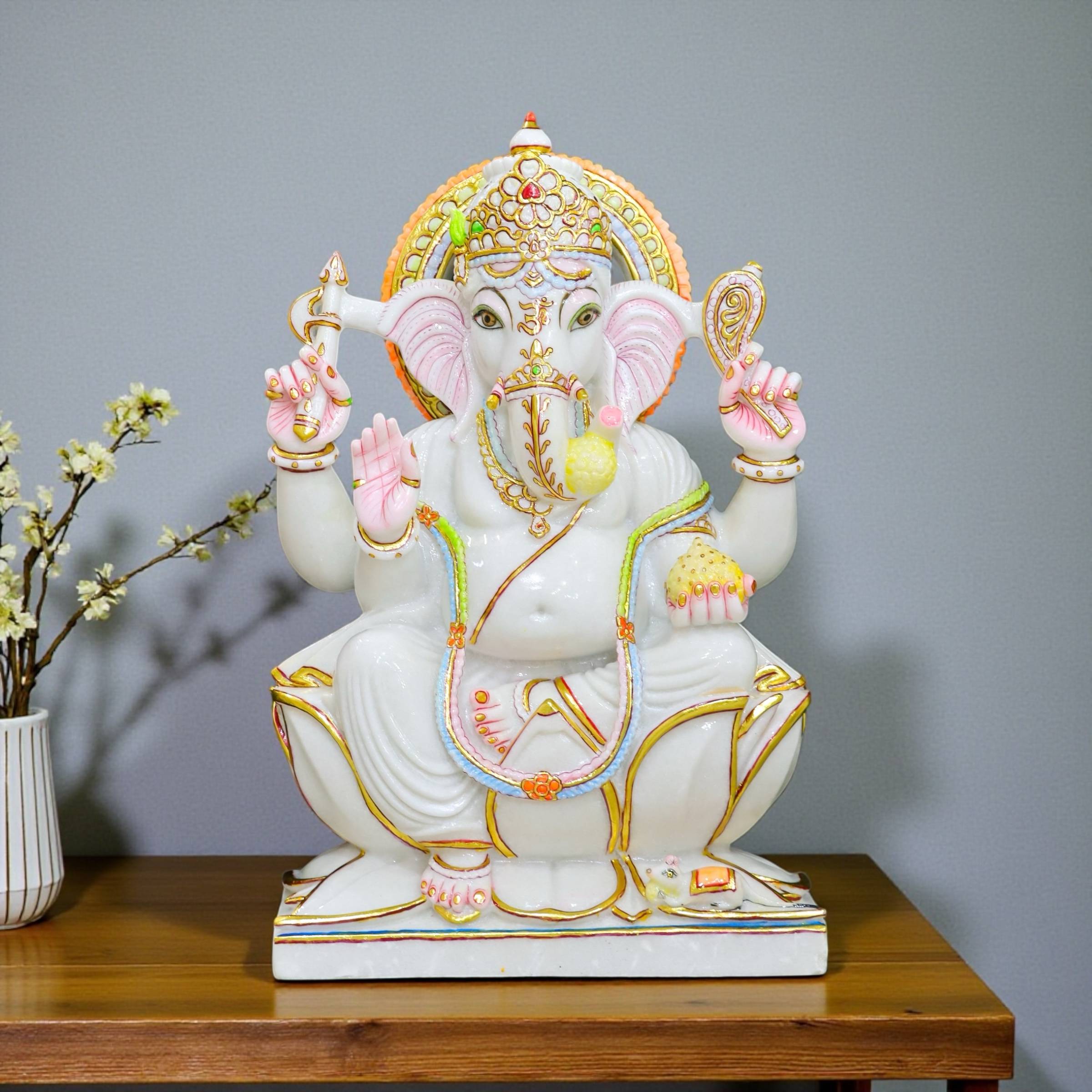 Pure White Marble Ganesha, Marble Ganesha Idol, White Marble Ganesh Murti, Ganesha Idol with Gold Work, Handmade Marble Ganesha, Indian Marble Ganesha Statue, 2.5 Feet Ganesha Idol, Luxury Marble Ganesha, Home Temple Ganesha Idol, Vastu Ganesha Idol