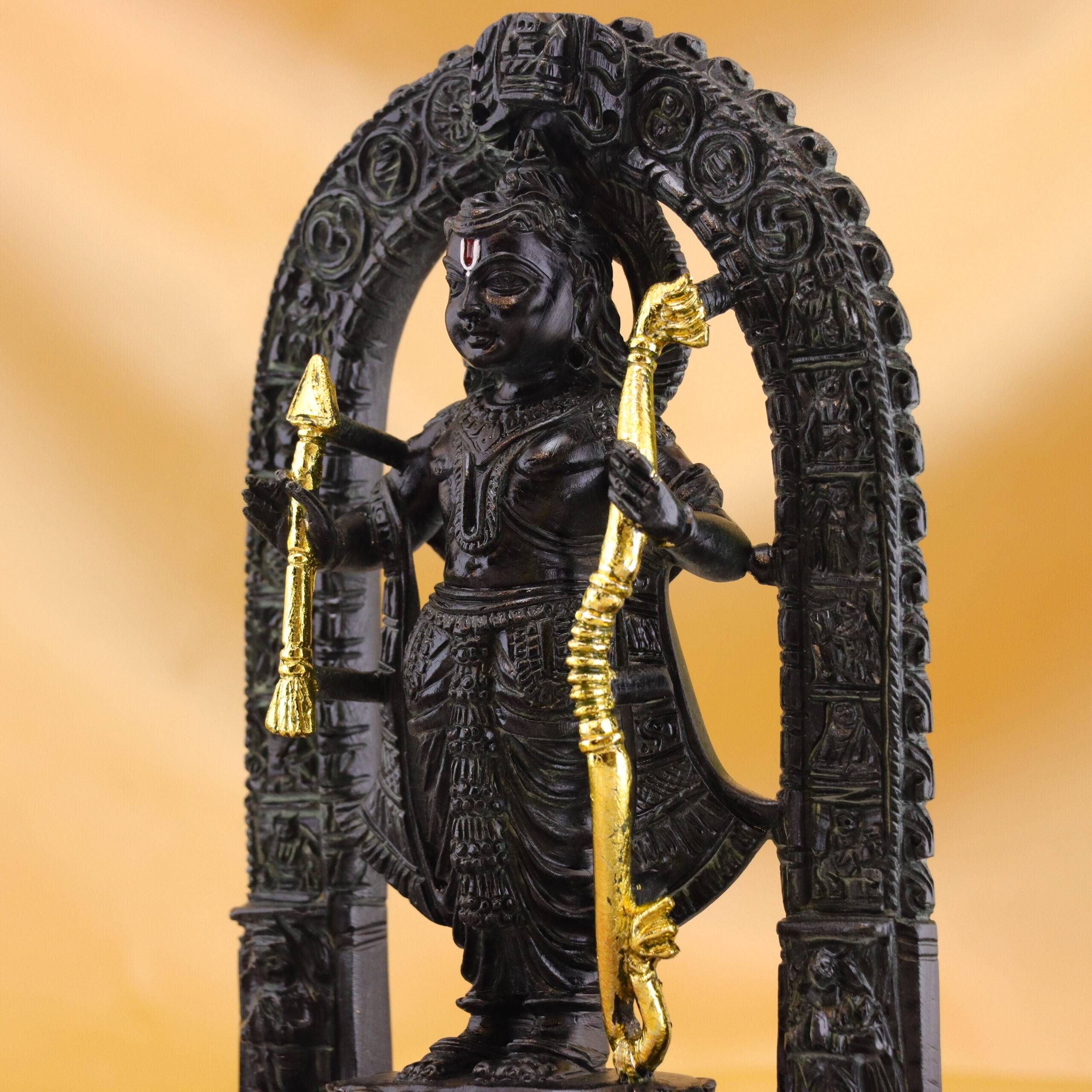 Expert artisans carefully sculpt this Ram Lalla statue with attention to every divine feature, ensuring perfection in every curve and expression. The deep black marble enhances the idol’s majestic presence while blending seamlessly with both traditional and modern interiors. Whether placed in your mandir, living area, meditation corner, or gifting it during religious festivals, weddings, griha pravesh, or special occasions—this luxurious Hindu God idol becomes the spiritual centerpiece of any space.